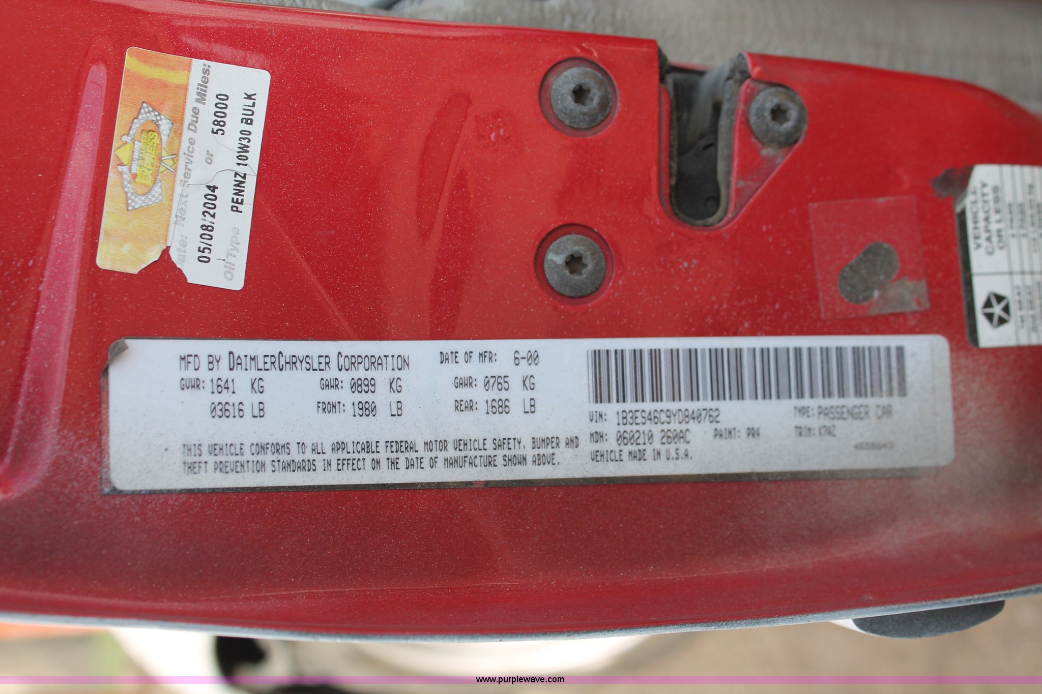 Purple Wave is selling a used Wrecked and Abandoned in Kansas. This item is a 2000 Dodge Neon with the following: Unknown miles on odometer, 2.0L L4 SOHC 16V gas engine, Automatic transmission, P185/65R14 tires, Burn damage, Windshield cracked, Case# 13C027999