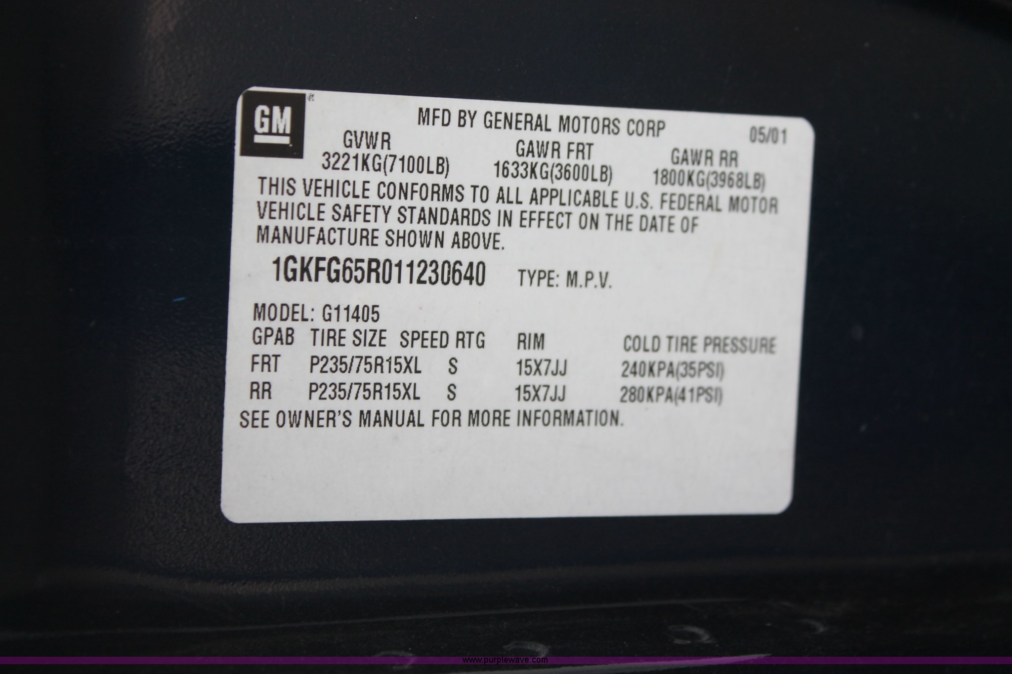 Purple Wave is selling a used Wrecked and Abandoned in Kansas. This item is a 2001 GMC Savana G1500 SLT van with the following: Unknown miles on odometer, 5.7L V8 OHV 16V gas engine, Automatic transmission, AM/FM/CD/cassette, Receiver hitch, Trailer wiring, Keys, LT235/75R15 tires, Dents and scratches, Paint damaged, Flat tire, Battery dead, Interior cosmetic damage, Case# 13C045186