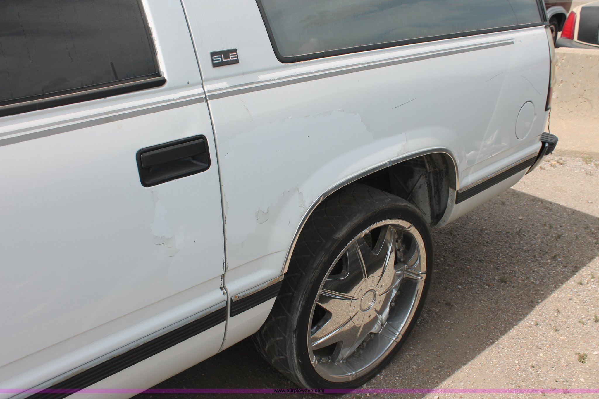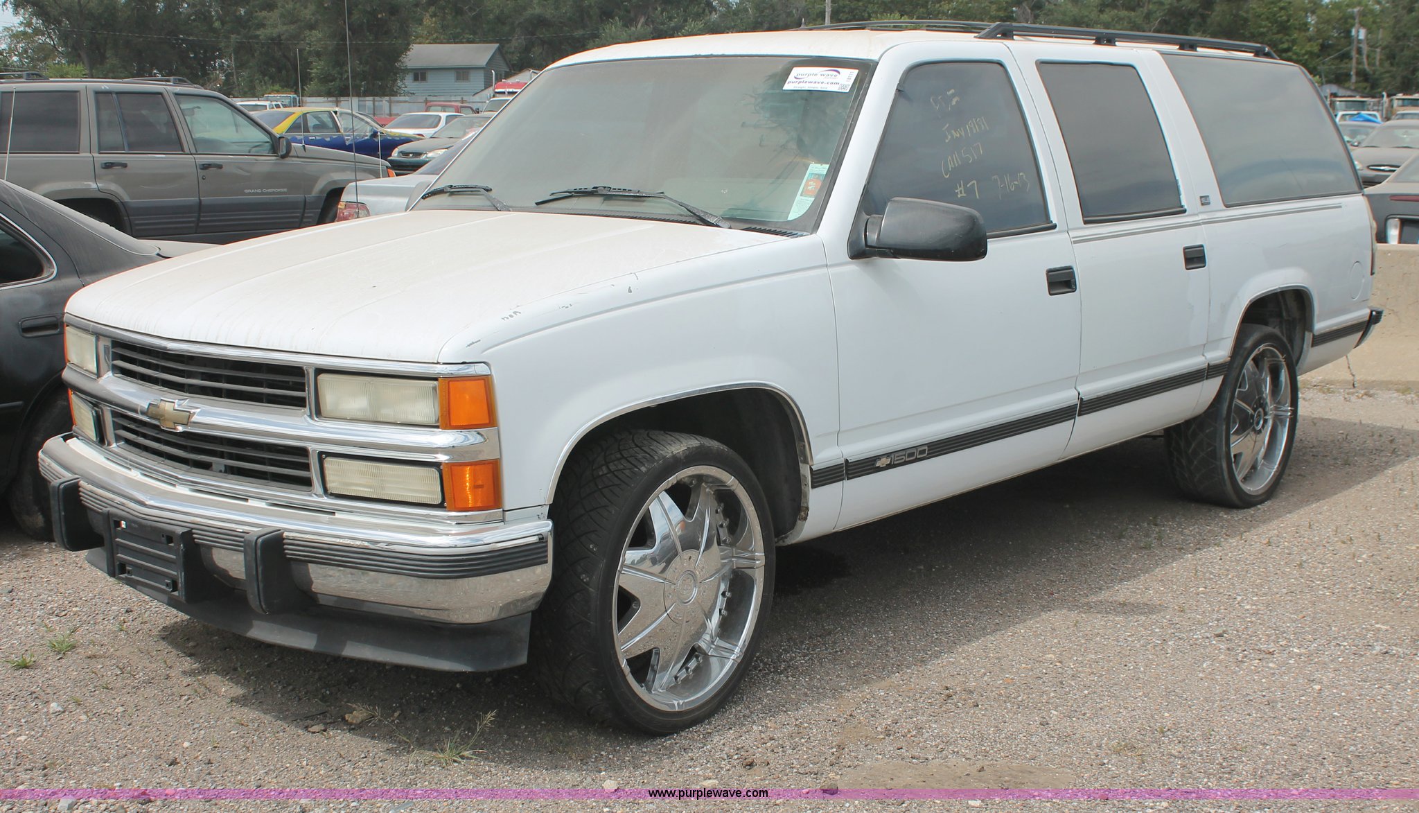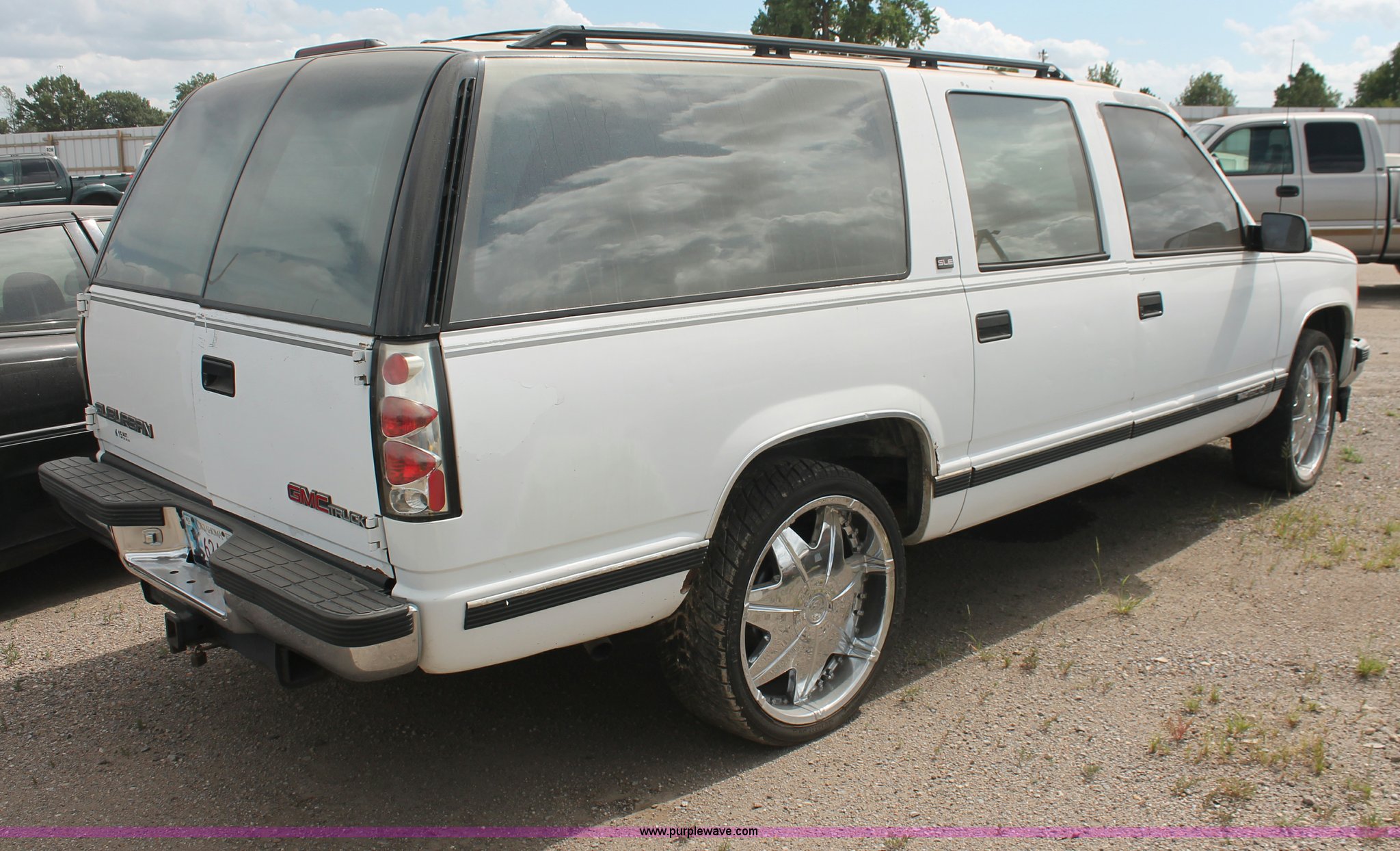 Purple Wave is selling a used Wrecked and Abandoned in Kansas. This item is a 1994 GMC Suburban 1500 SUV with the following: 239,939 miles on odometer, 5.7L V8 OHV 16V gas engine, Automatic transmission, Pioneer AM/FM/CD/audio input, Aftermarket taillights, Grant steering wheel, Receiver hitch, Trailer wiring, VCT 22" chrome wheels, Versatyre TRX5000 265/35R22 tires, Interior cosmetic damage, Paint peeling, Side mirror cracked, Case# 13C045519