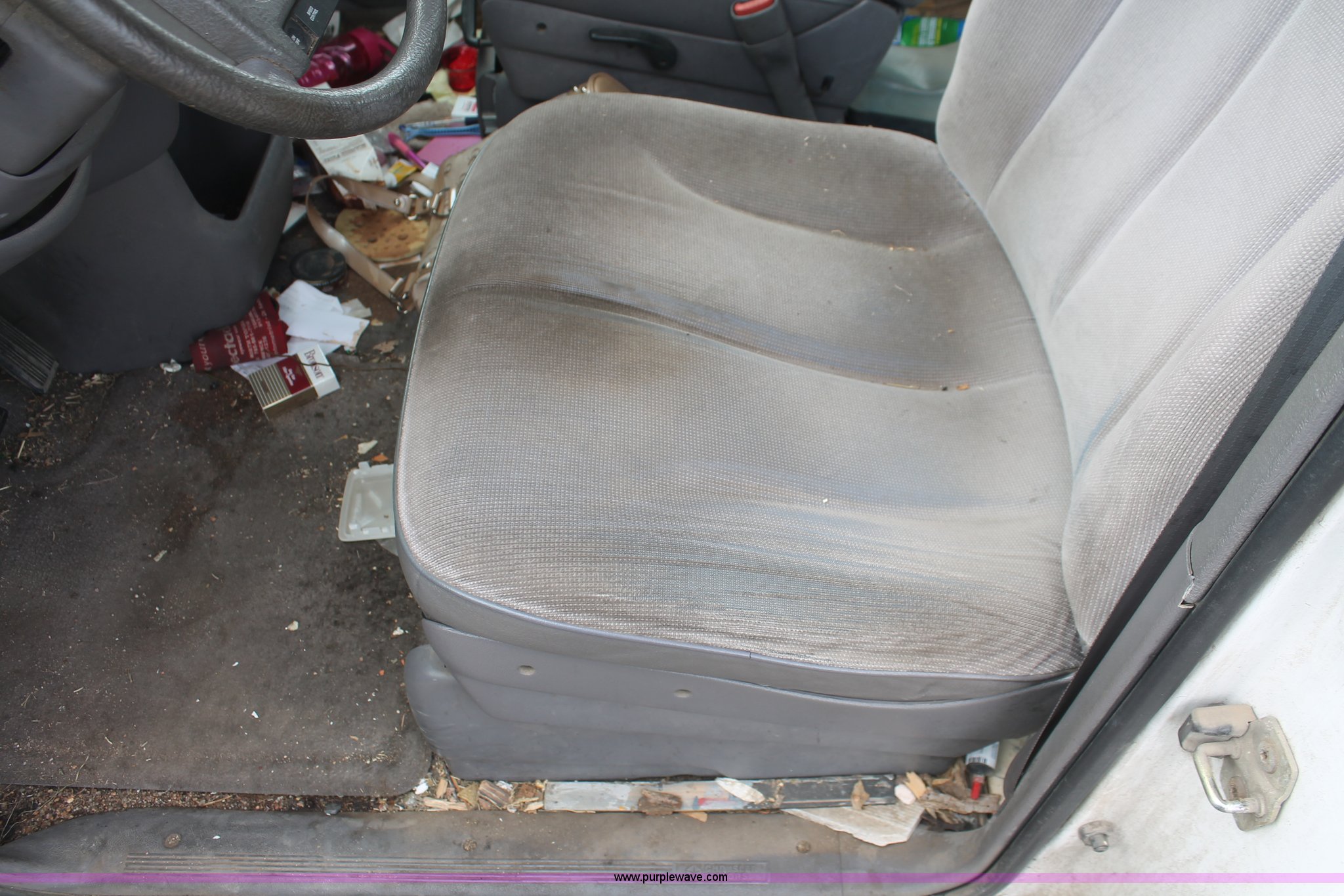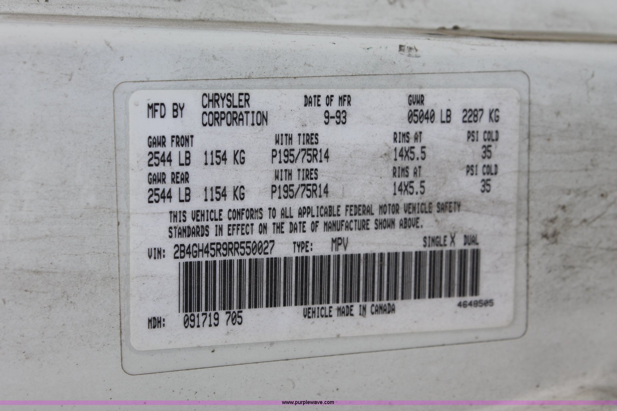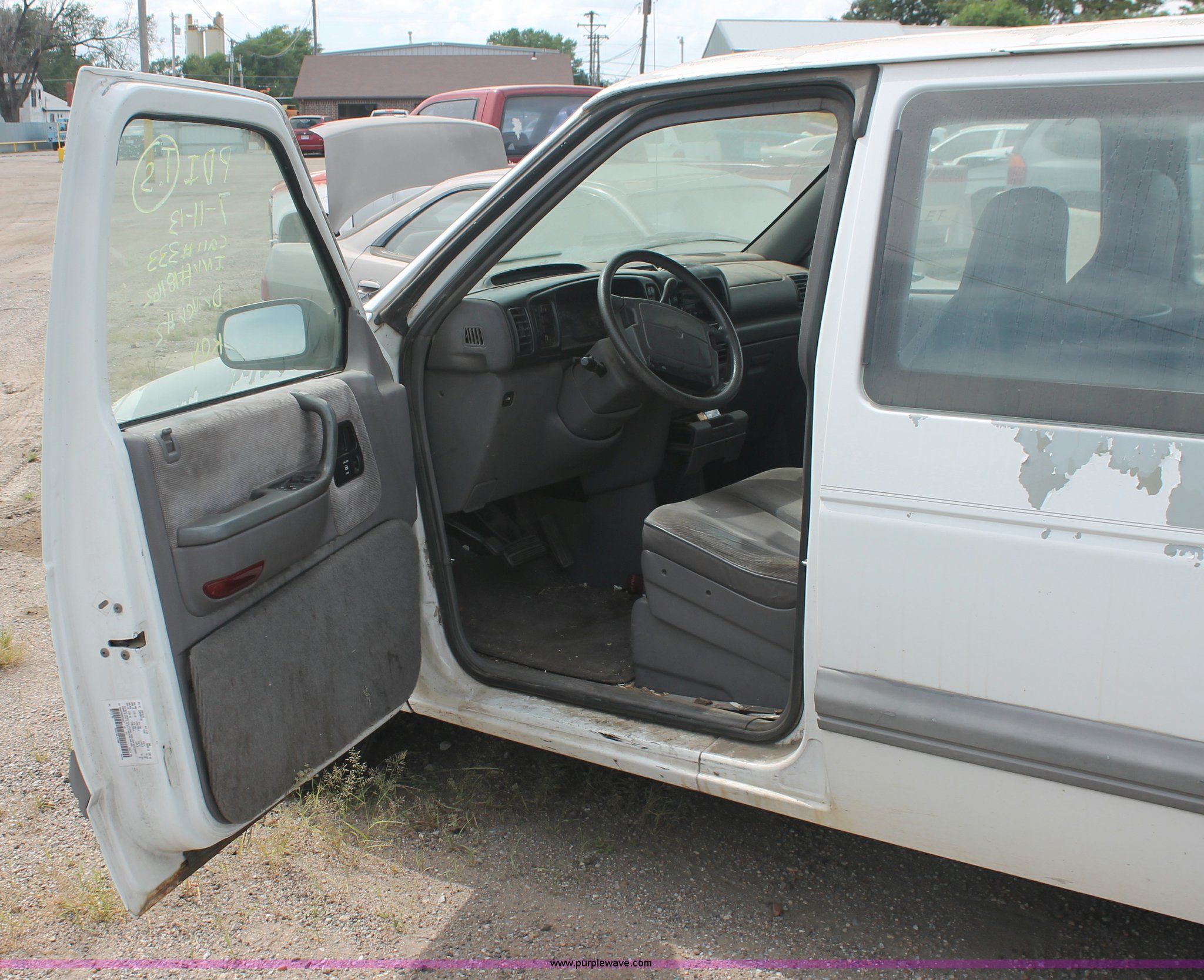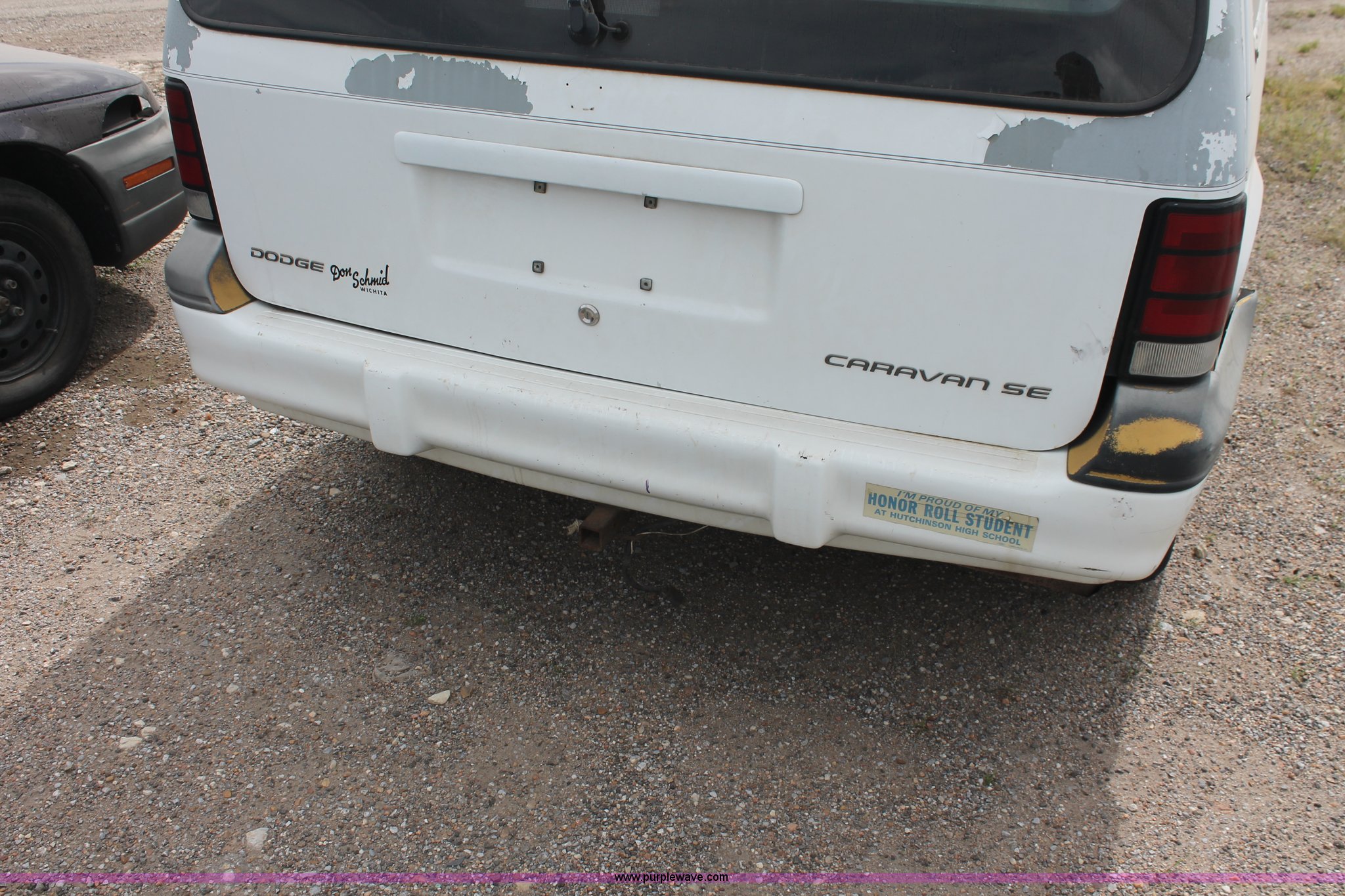 Purple Wave is selling a used Wrecked and Abandoned in Kansas. This item is a 1994 Dodge Caravan SE van with the following: 238,028 miles on odometer, 3.3L V6 OHV 12V gas engine, Automatic transmission, AC and heat, Tilt, Cruise, AM/FM/cassette, Power windows, locks, and mirrors, Cloth interior, Receiver hitch, Keys, Starts and idles, 185/70R14 tires, Paint peeling, Interior cosmetic damage, Windshield cracked, Rust, Case# 13C44827