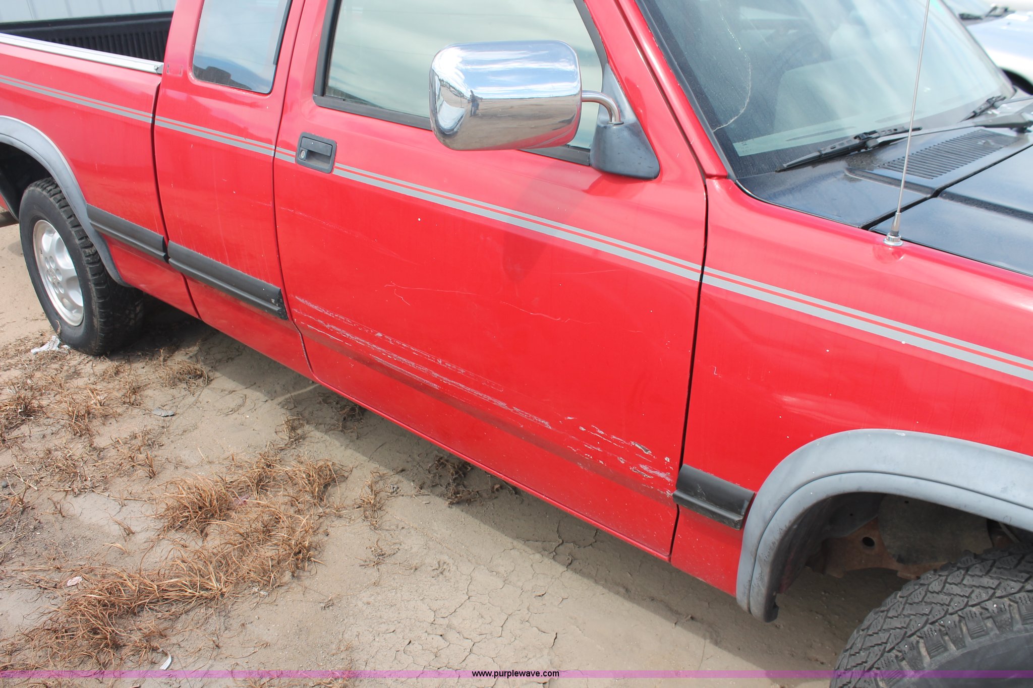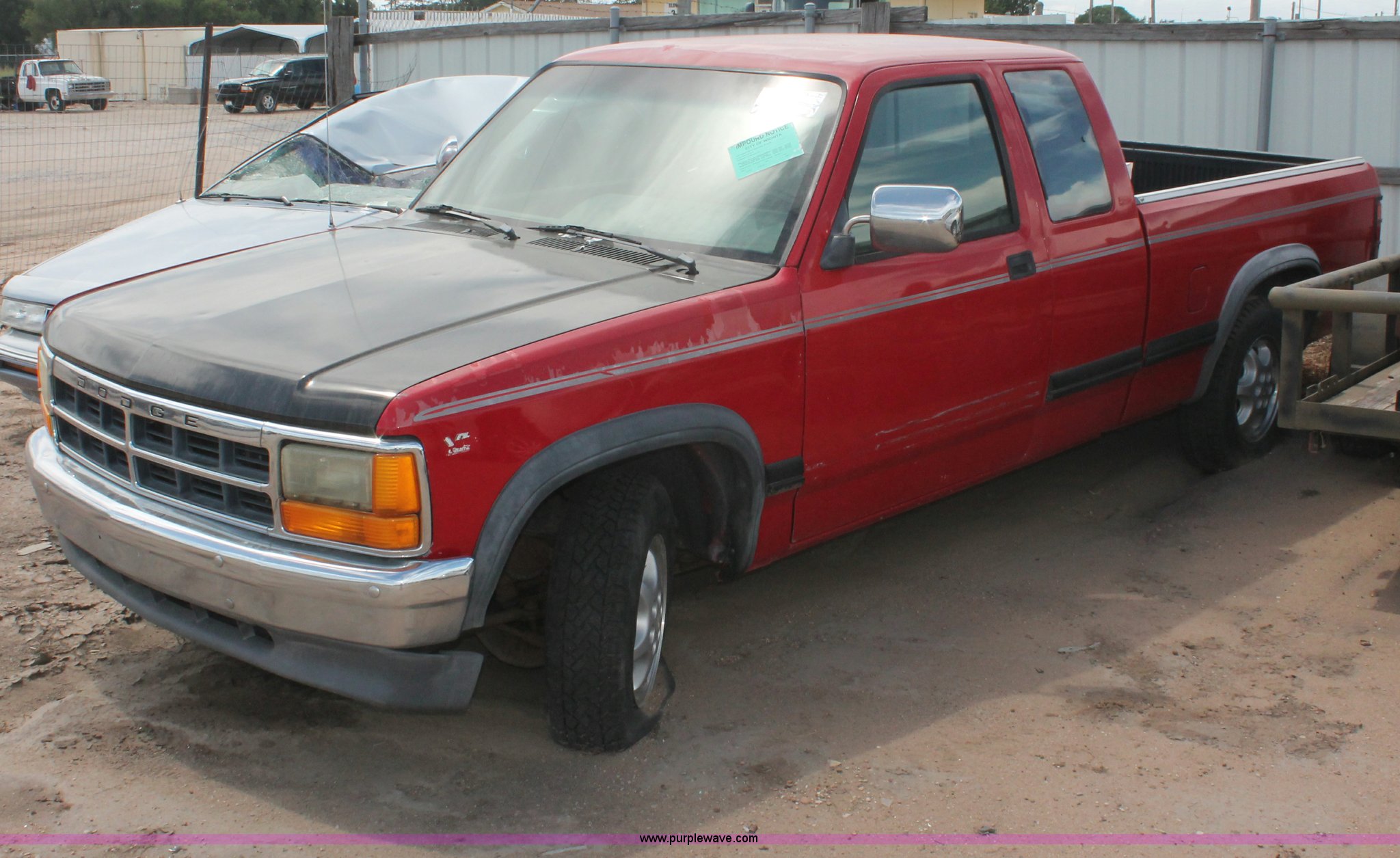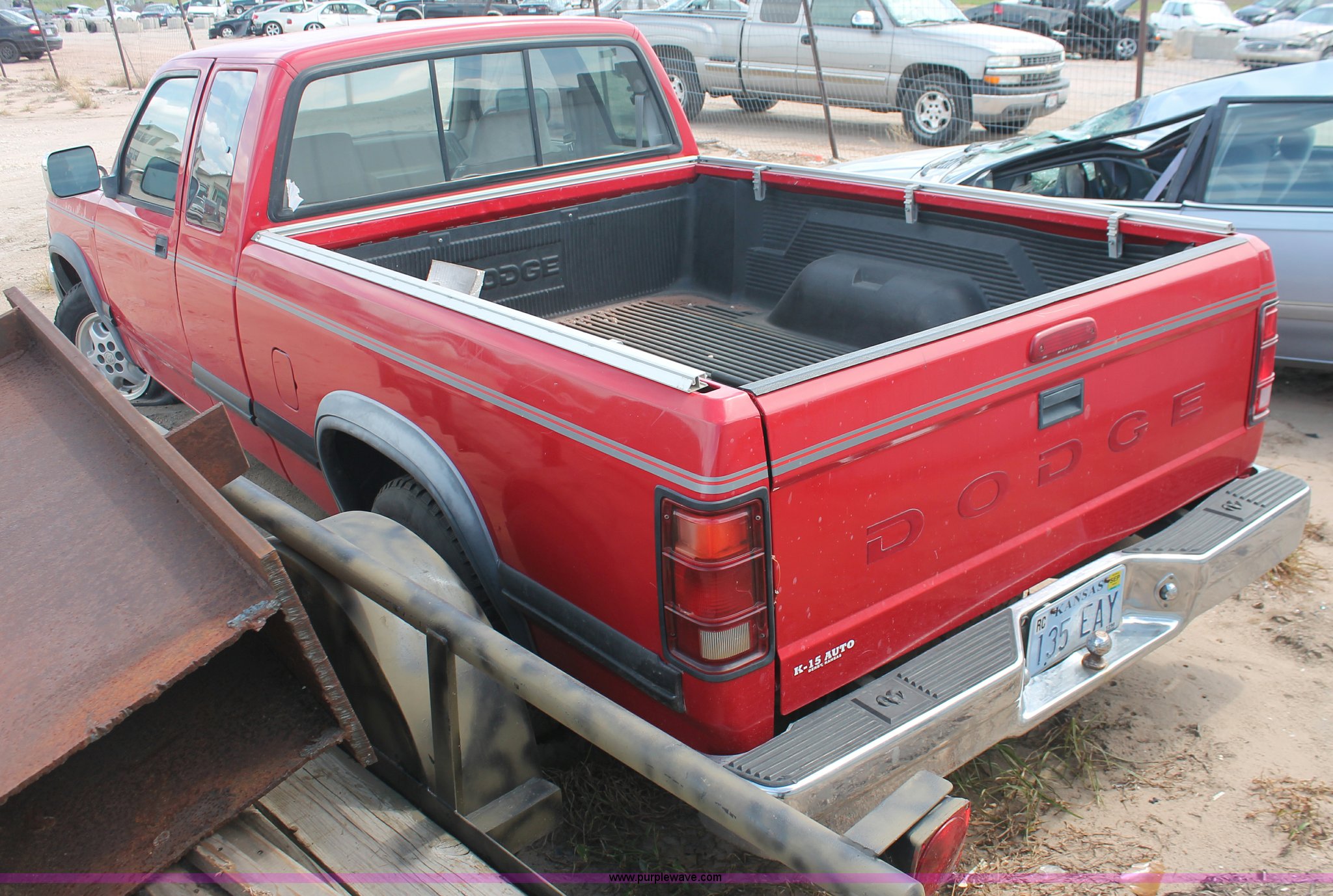 Purple Wave is selling a used Wrecked and Abandoned in Kansas. This item is a 1994 Dodge Dakota Club Cab pickup truck with the following: 148,208 miles on odometer, 3.9L V6 OHV 12V gas engine, Automatic transmission, JVC AM/FM/CD, 2" ball receiver, Rear sliding glass, Bed liner, P215/75R15 tires, Locked, Flat tire, Paint faded and peeling, Hail damage, Roof dented, Windshield cracked, Case# 13C46784