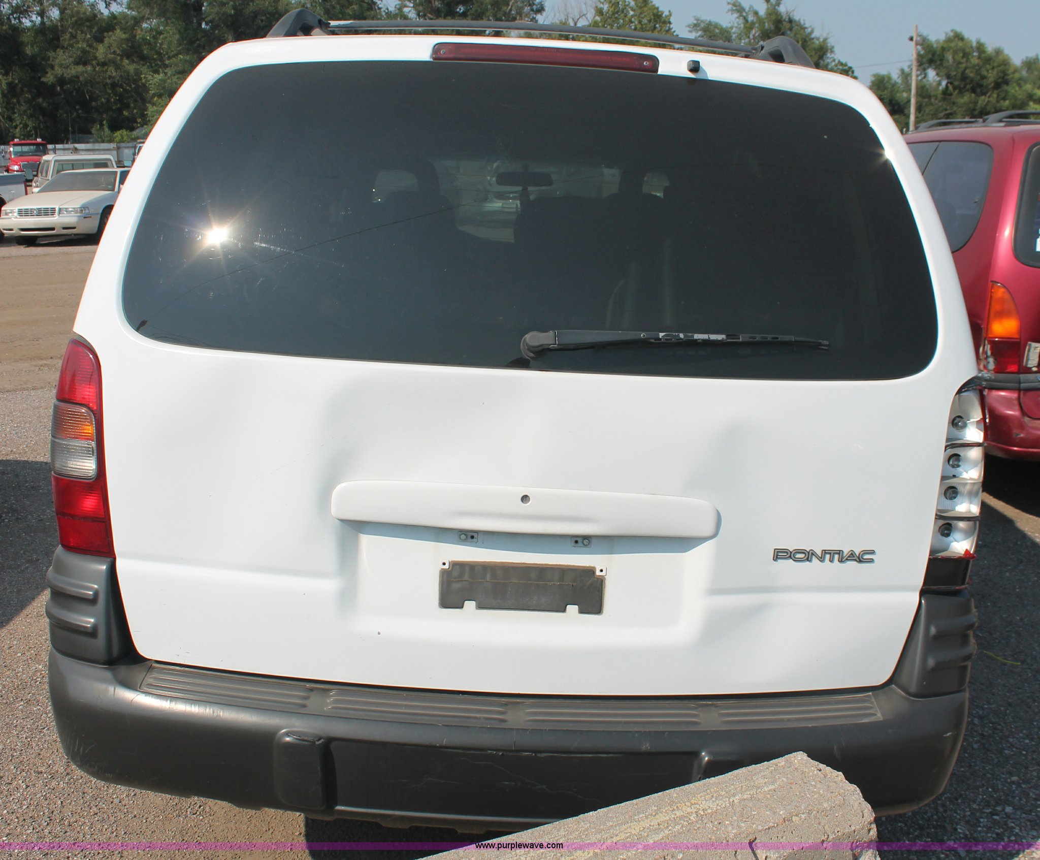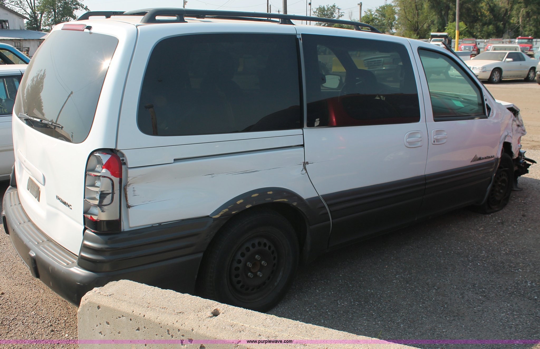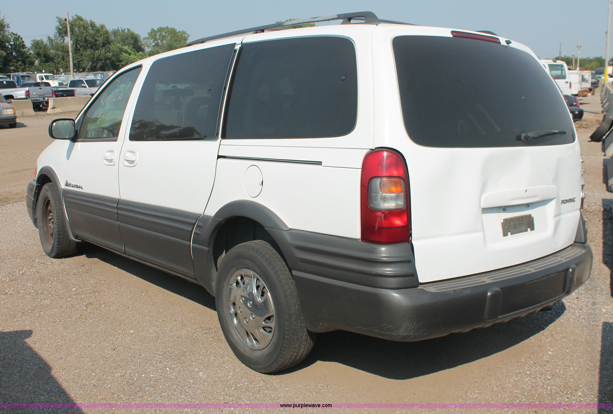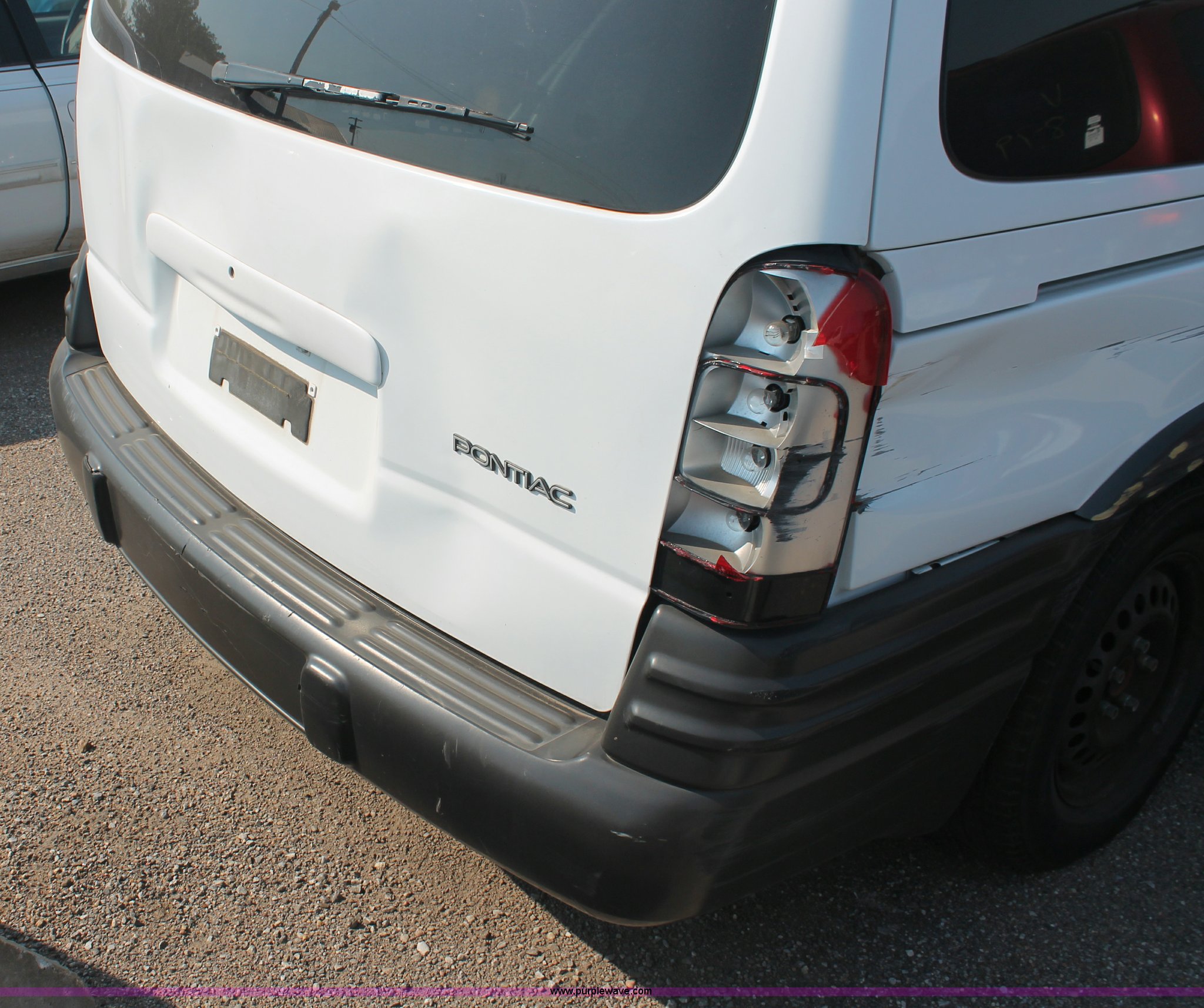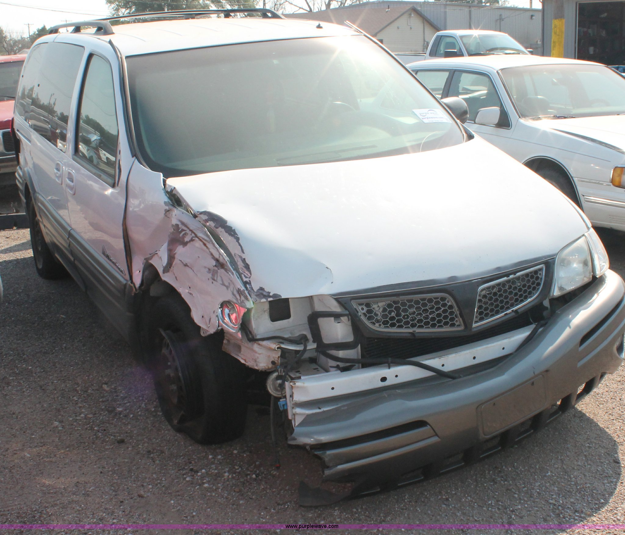 Purple Wave is selling a used Wrecked and Abandoned in Kansas. This item is a 2001 Pontiac Montana van with the following: Unknown miles on odometer, 3.4L V6 OHV 12V gas engine, Automatic transmission, AM/FM/CD/cassette, P245/70R15 tires, Front bumper damage, Passenger collision damage, Flat tire, Hail damage, Passenger side mirror missing, Rear hatch damage, Side swipe damage, Doors are locked, Case# 13C43668