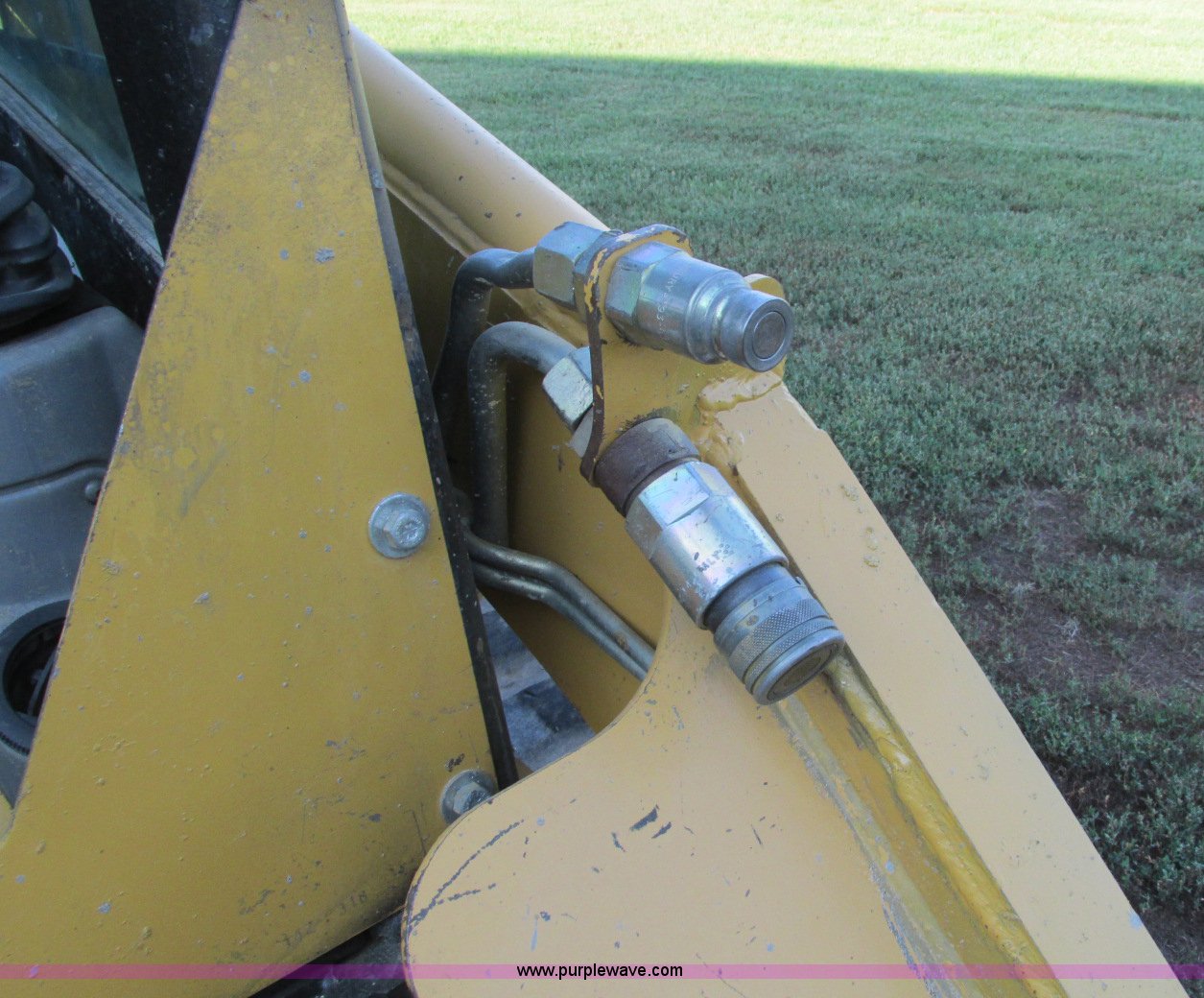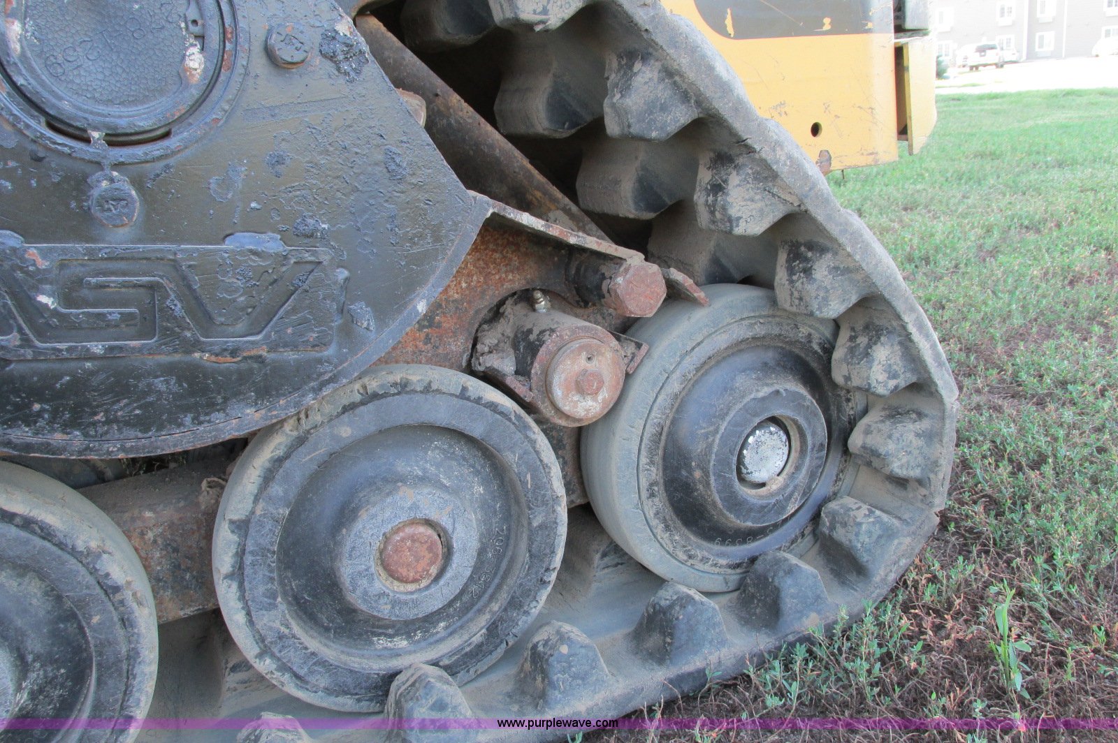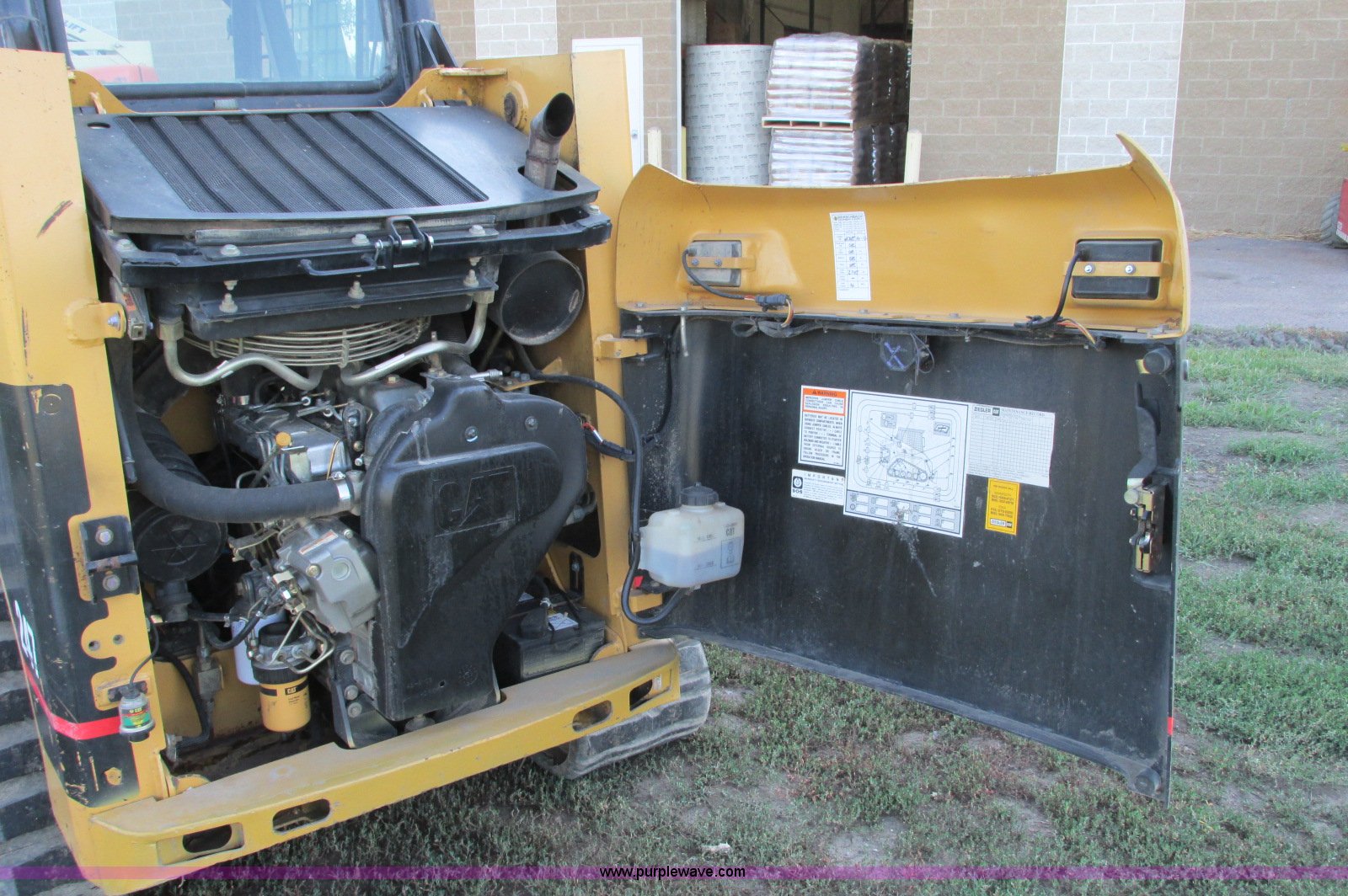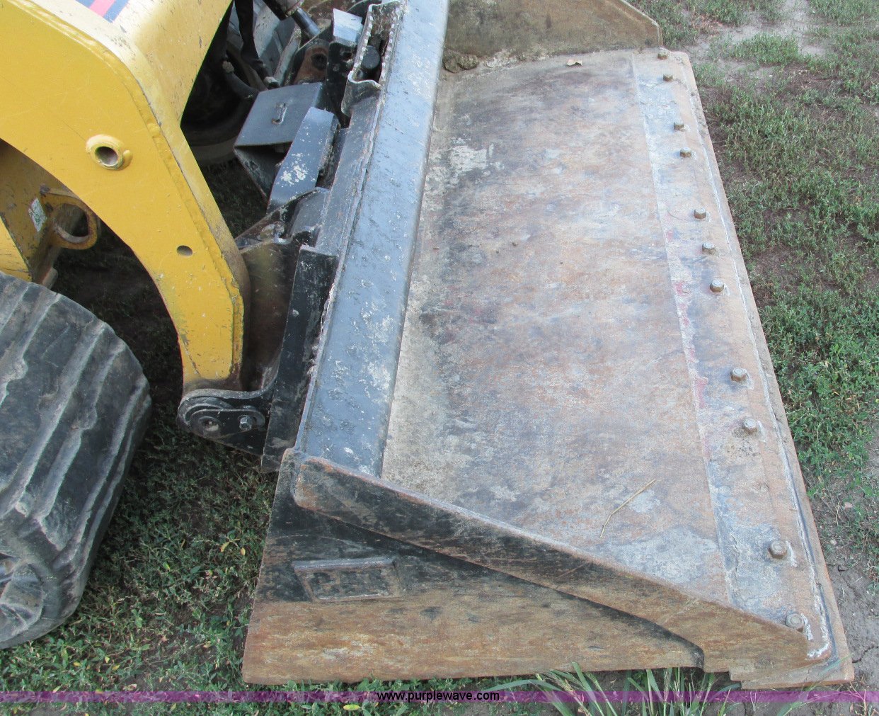Purple Wave is selling a used Tracked Skid Steer Loader in South Dakota. This item is a 2003 Caterpillar 247 track skid steer with the following: 2,856 hours on meter, Hours may vary, still in use, Caterpillar 3034 diesel engine, 54 HP, Enclosed cab, Heat, Front and rear work lights, Caterpillar hand controls, Front door missing, GP 73"W bucket, 0.048 cu. yd. capacity, 2,100 lbs operating load, Front auxiliary hydraulics, 15"W tracks, 6,629 lbs. base operating weight, Serial CAT00247JCMMLD1546