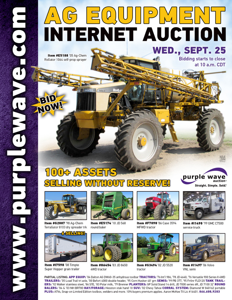 Bids over the amount of $10,000.00 are subject to Purple Wave's qualification process. Verification may include, but is not limited to, providing a bank letter of guarantee, credit references or credit card pre-authorization. Purple Wave may take any or all of these measures at any point during the auction. Purple Wave reserves the right to strike any Internet bid if the bidder refuses or fails to timely cooperate with Purple Wave's efforts to verify the bidder's qualification to bid. By registering to bid in this auction, you authorize all credit references, banks and credit reporting agencies to provide complete information about your credit to Purple Wave. For questions regarding Purple Wave's bid qualification process, please contact Amanda Hawk, Credit Specialist, at [email protected] or call 785.246.5718.