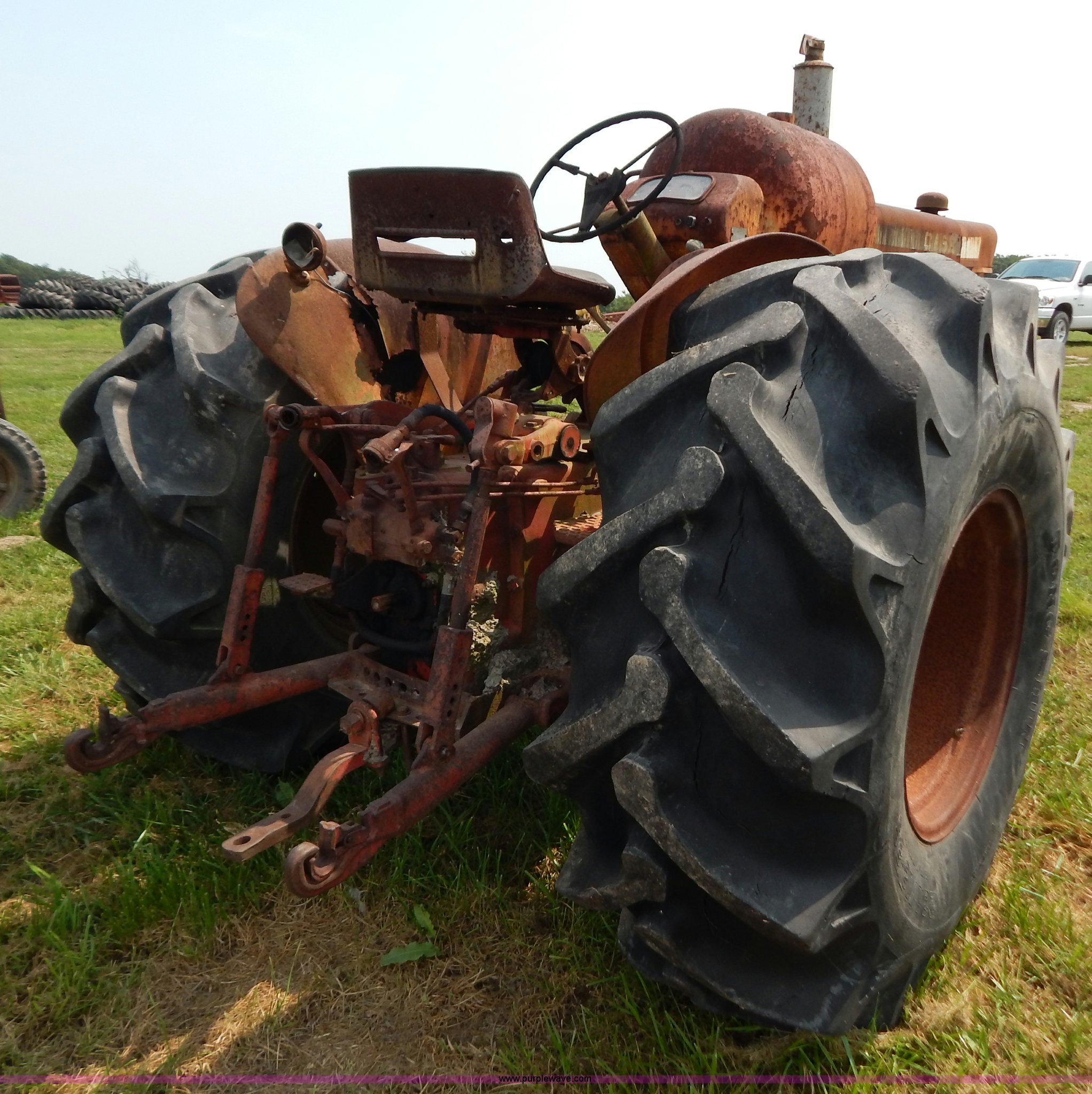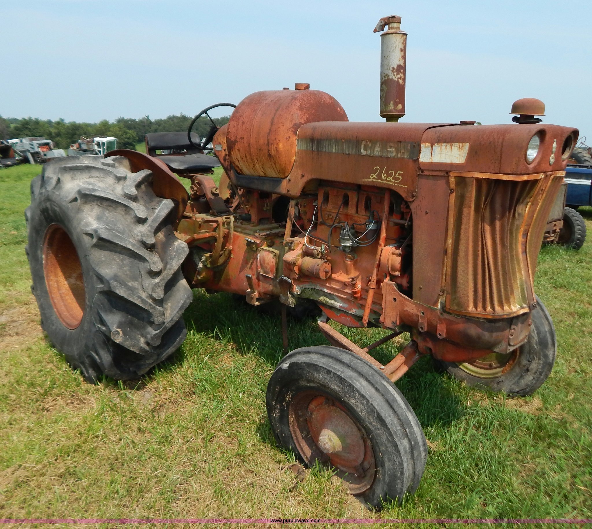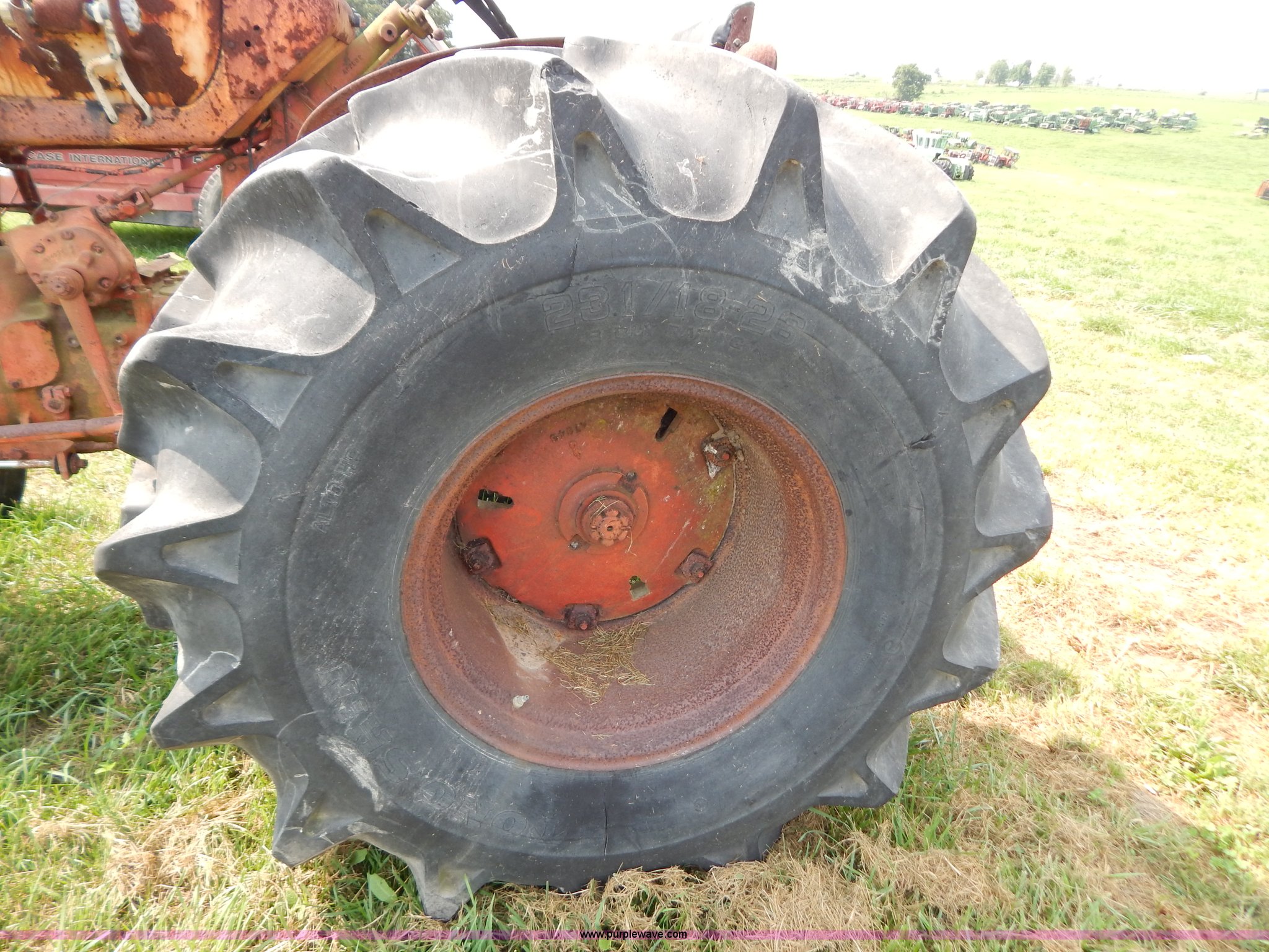 Purple Wave is selling a used Tractor in Missouri. This item is a Case 740 tractor with the following: Four cylinder propane engine, Three point, PTO, Draw bar, One rear hydraulic remote, 7.50-18 front tires, Front right tire is bad, 23.1-18-26 rear tires, Serial 8202707