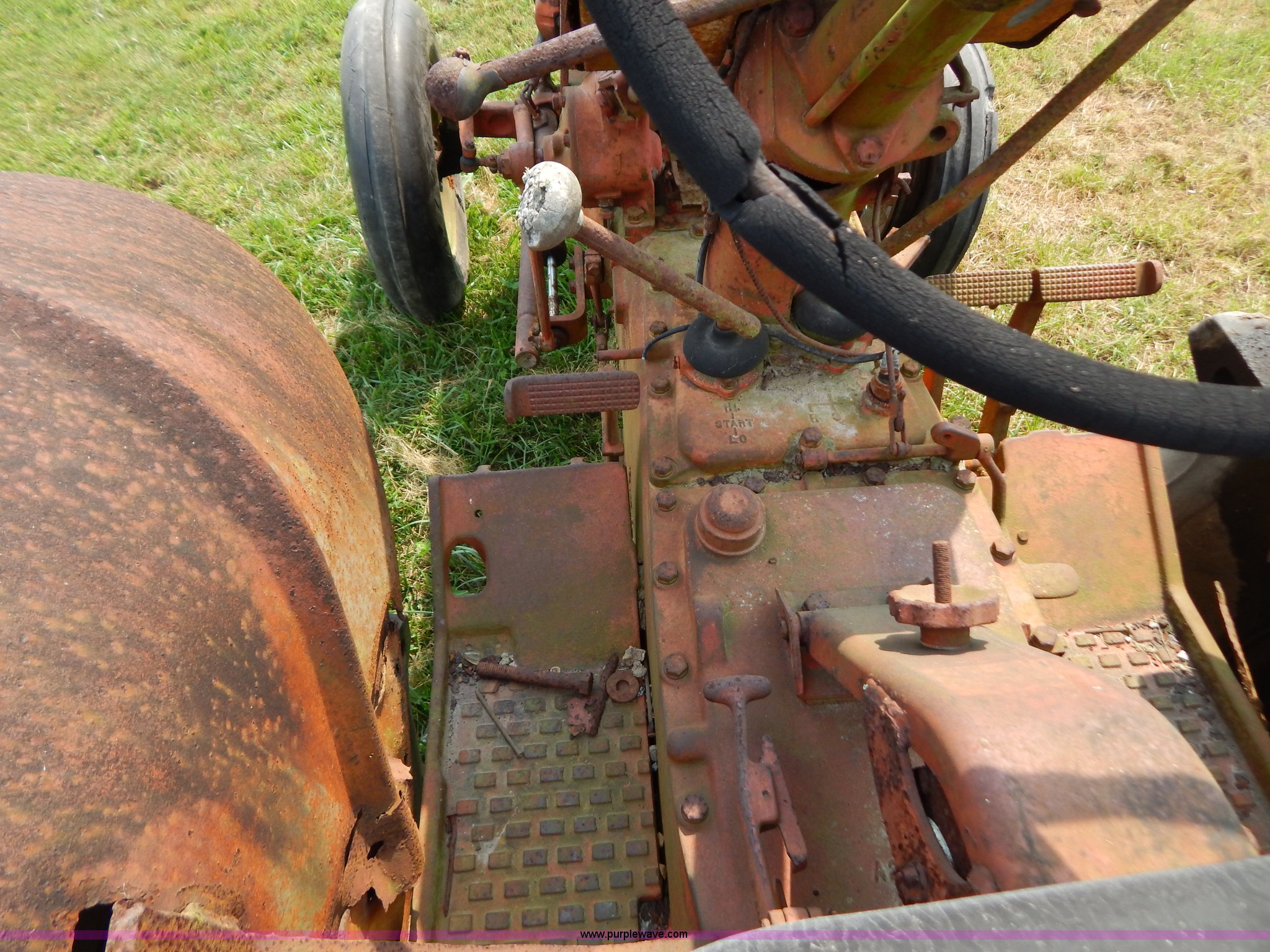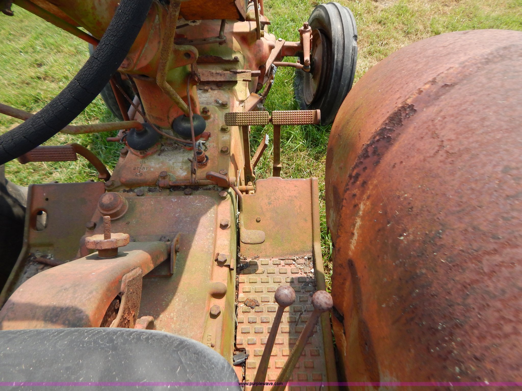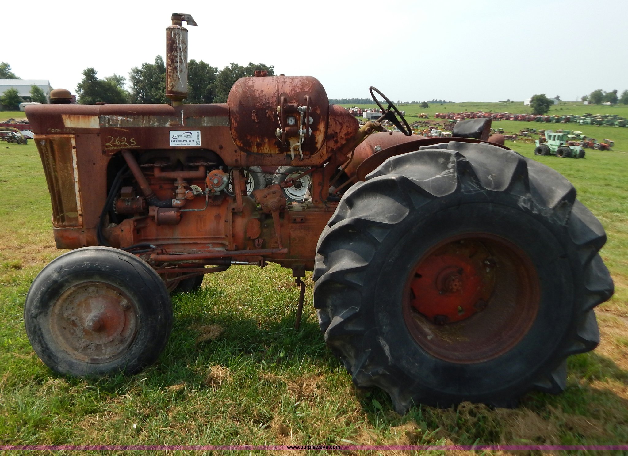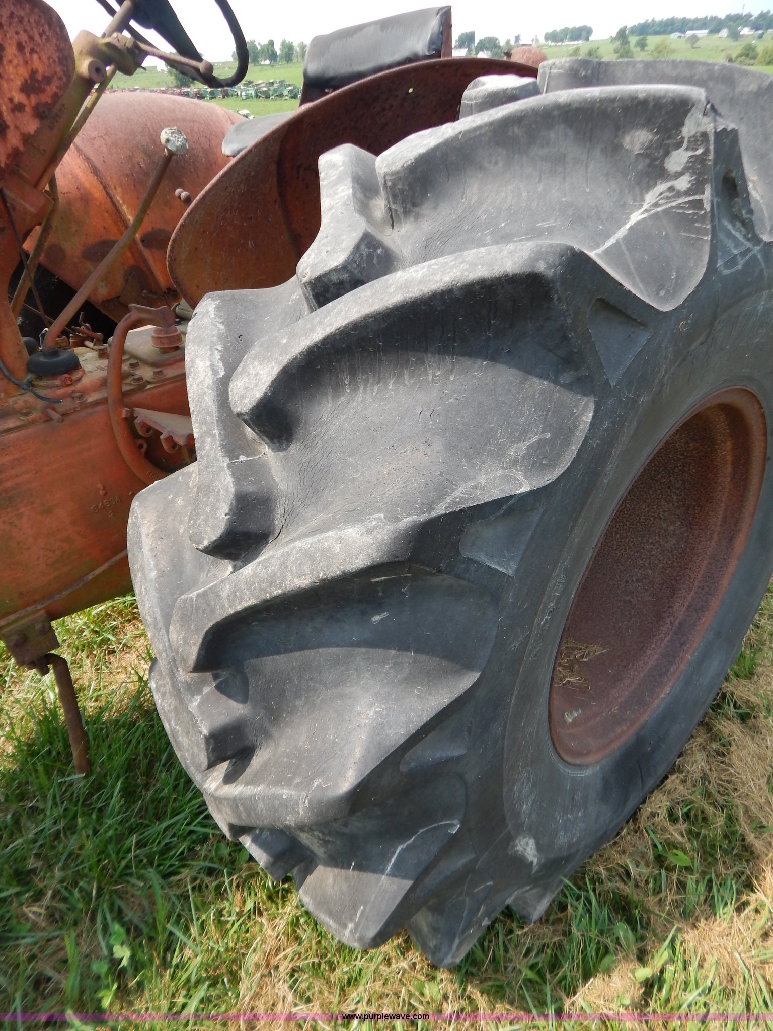 Purple Wave is selling a used Tractor in Missouri. This item is a Case 740 tractor with the following: Four cylinder propane engine, Three point, PTO, Draw bar, One rear hydraulic remote, 7.50-18 front tires, Front right tire is bad, 23.1-18-26 rear tires, Serial 8202707