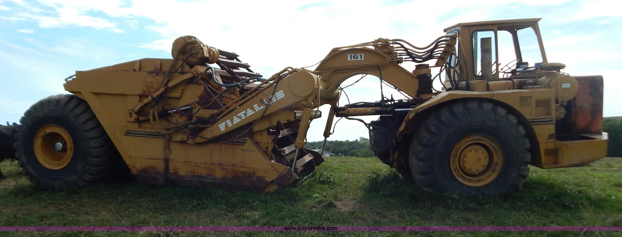 Purple Wave is selling a used Elevating Scraper in Missouri. This item is a 1978 Fiat-Allis 161 elevating scraper with the following: 9,446 hours on meter, Eight cylinder diesel engine, 6F-1R gears, OROPS, Smooth cutting edge, 29.5-25 tires, 46,610 lbs. base operating weight, Fire damage around engine compartment, Non-operational, Serial 13S00124