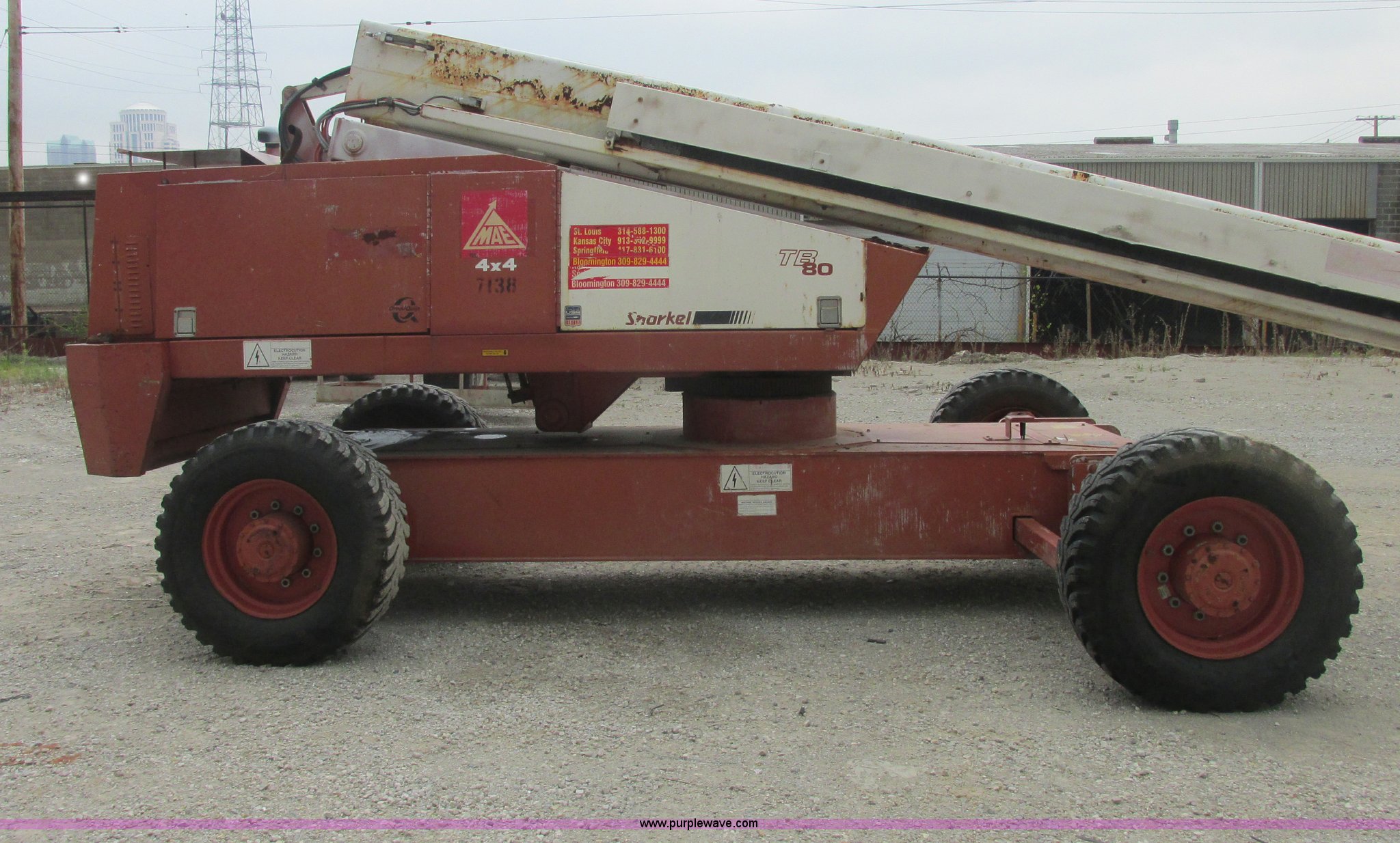 2001 Snorkel TB80RD24X4 boom lift has sold in St. Louis, Missouri for $7920. Item E7335 sold on September 26th, 2013.
