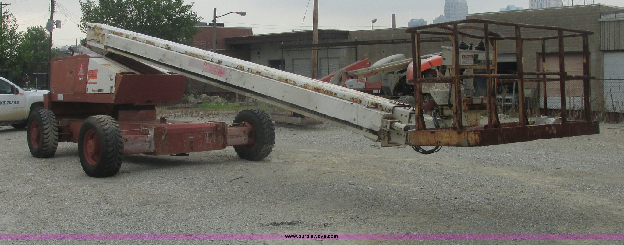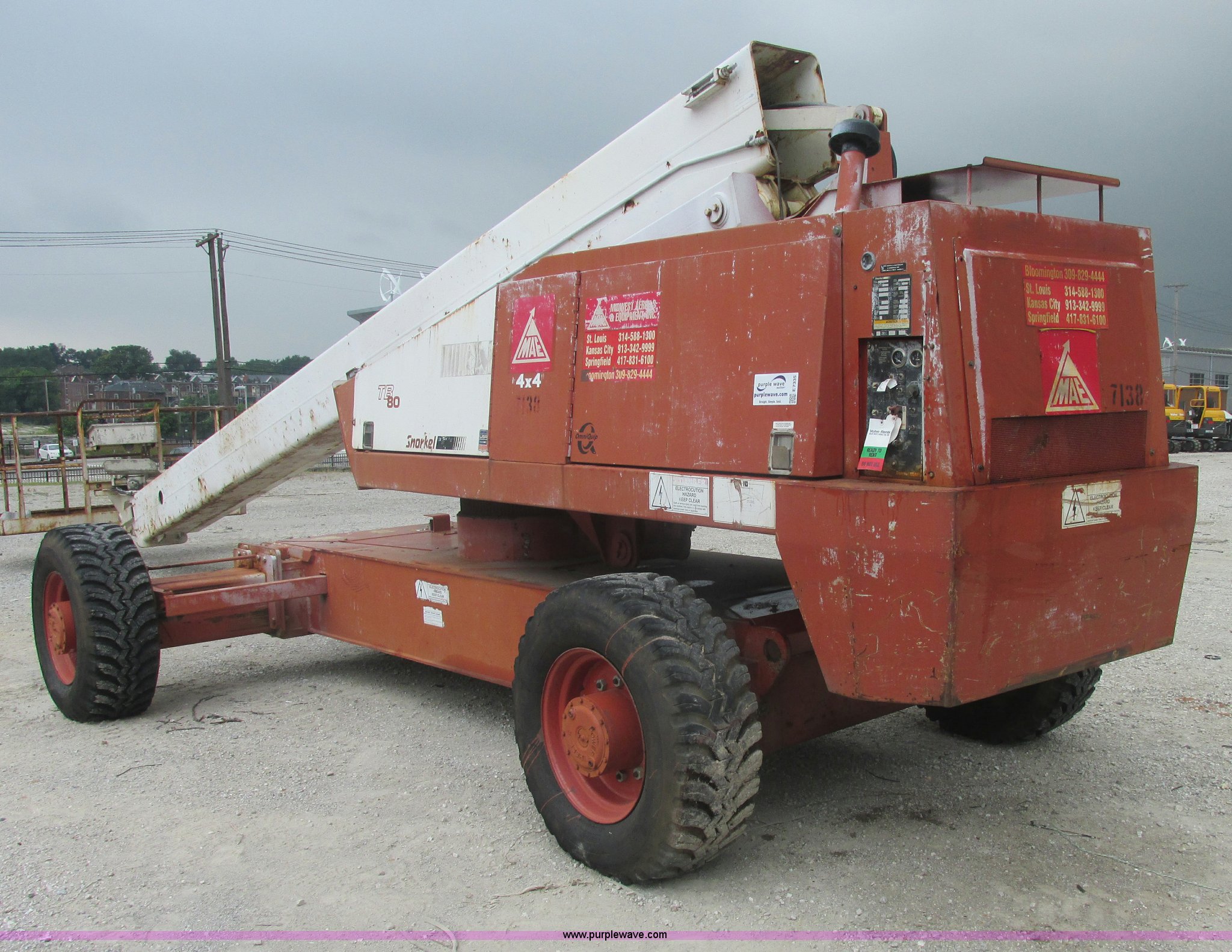 Purple Wave is selling a used Boom Lift in Missouri. This item is a 2001 Snorkel TB80RD24X4 boom lift with the following: 4,280 hours on meter, Deutz four cylinder air cooled diesel engine, 30" x 92" platform, Ground and platform controls, Rotary platform, 80' maximum reach, Adjustable boom, Front axles extend, 15 x 22.5 foam filled tires, PWM control module will be replaced prior to auction, Serial JA01045, Unit# 7138