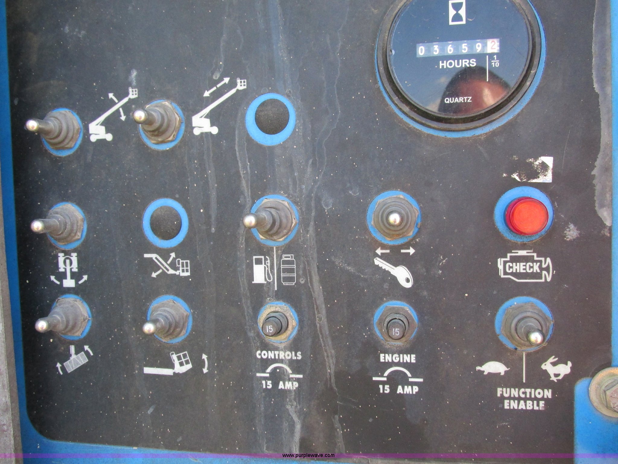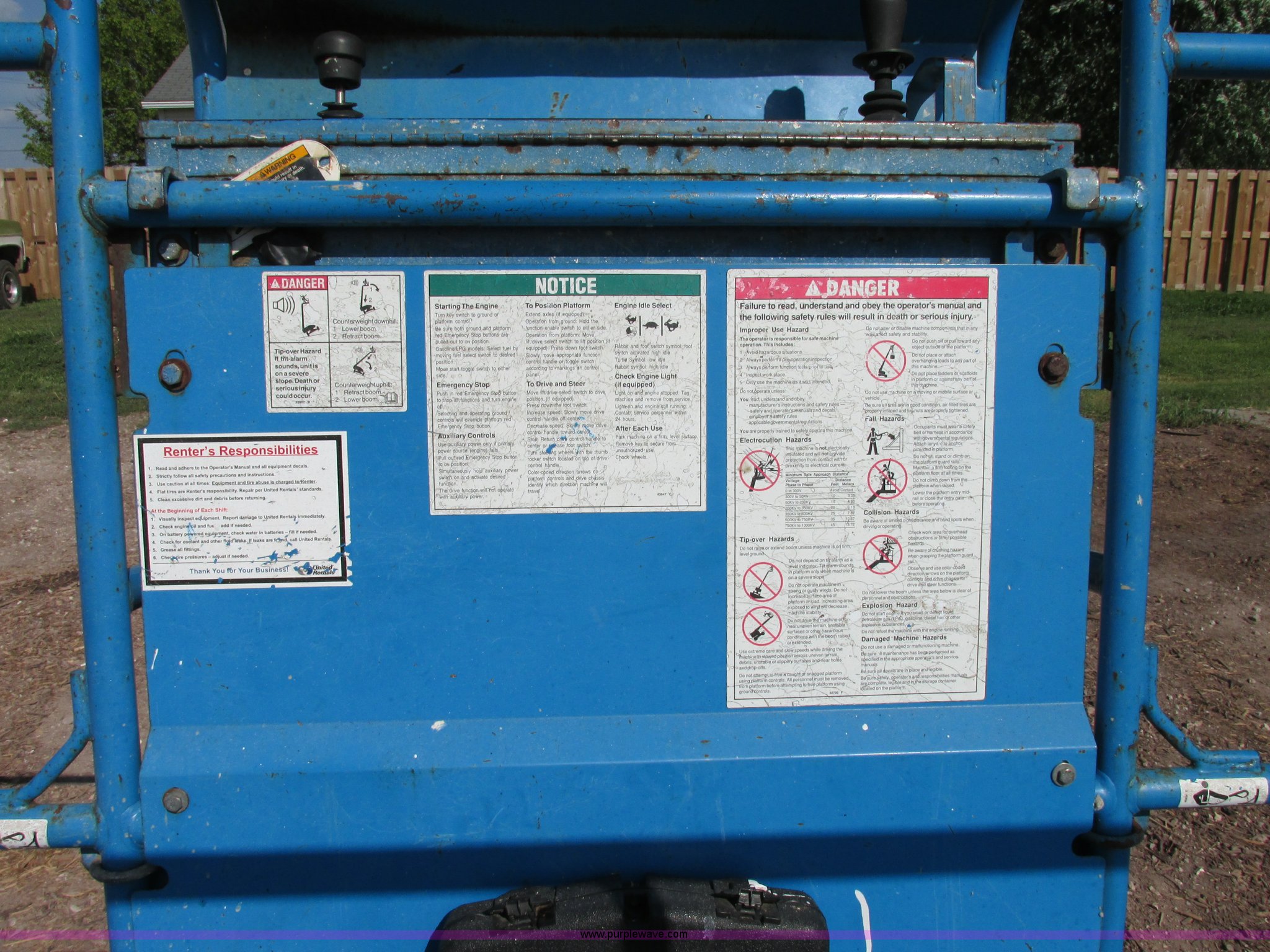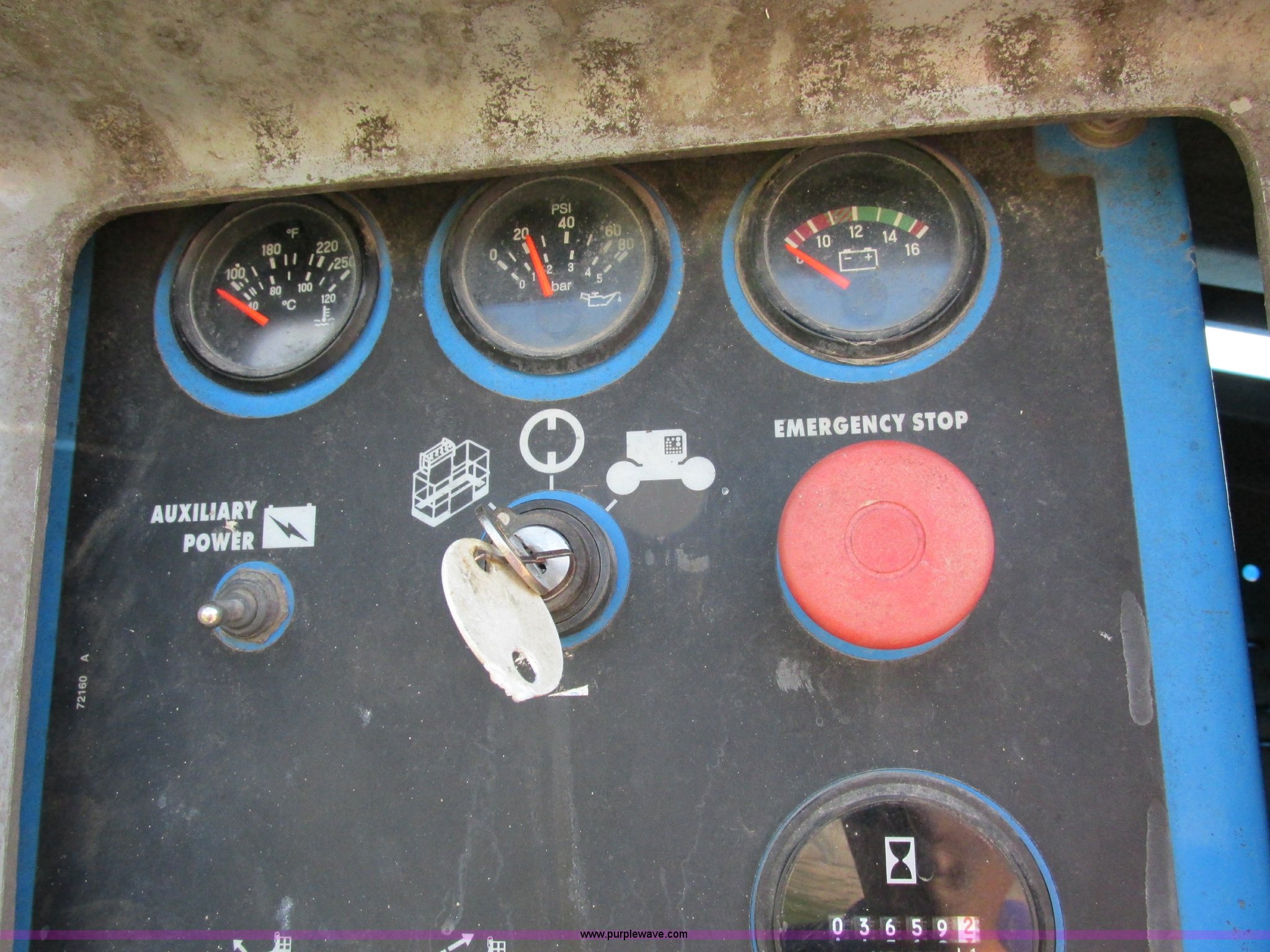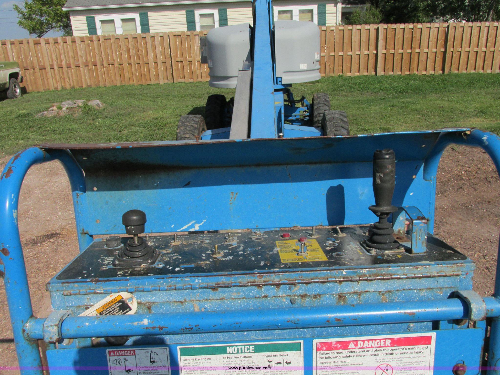 Purple Wave is selling a used Boom Lift in Missouri. This item is a 2000 Genie S40 boom lift with the following: 3,659 hours on meter, Ford four cylinder dual fuel engine, Gas or LP, Four wheel drive, Upper and lower controls, 500 lbs lift capacity, Power to the platform, 12-16.5 foam-filled tires, 11,650 lbs. base operating weight, Serial S40-4887