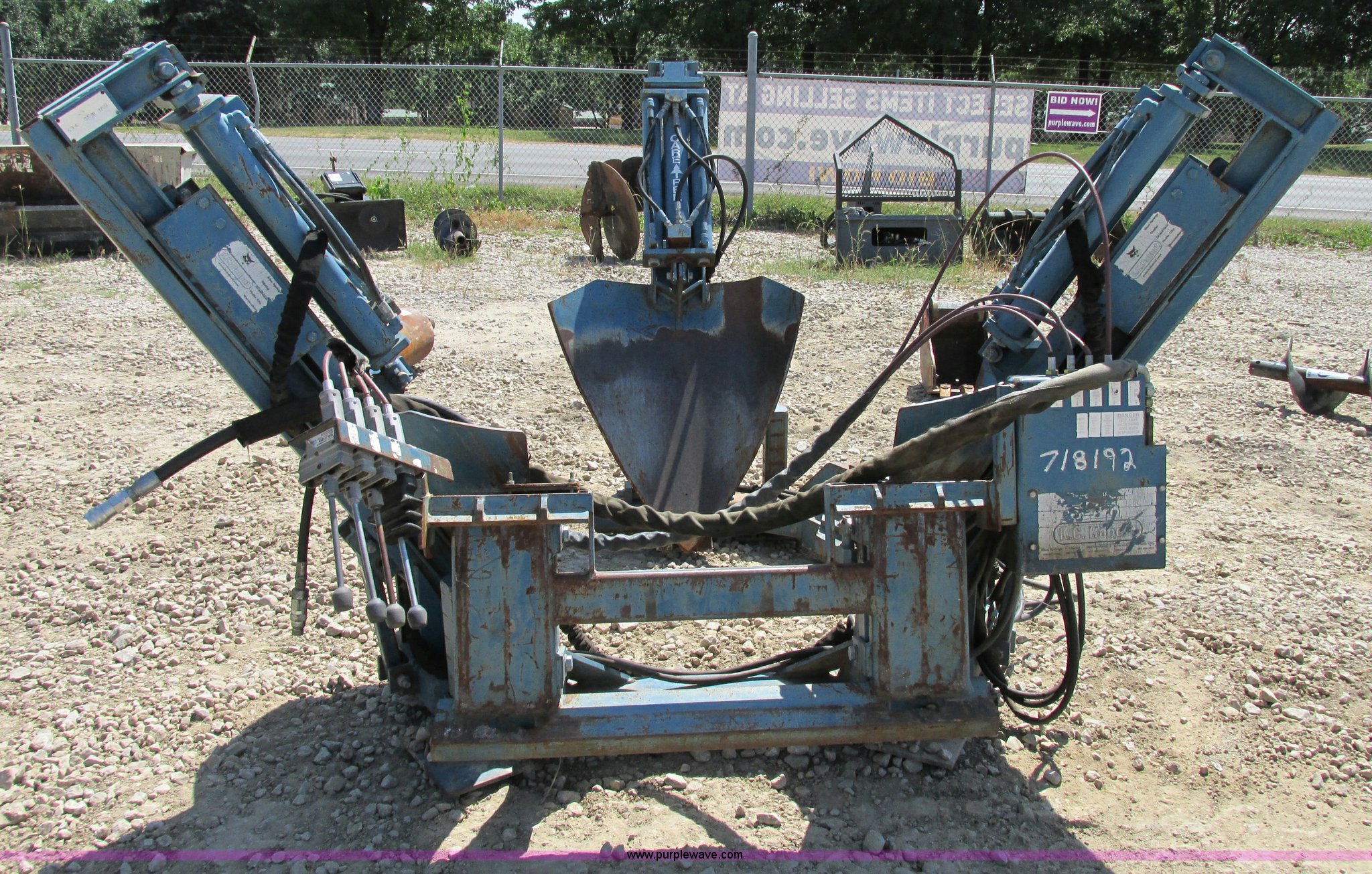 Purple Wave is selling a used Skid Steer Attach. in Missouri. This item is a Care Tree 636 36" skid steer tree spade with the following: (3) spade, 28" to 36" root ball capacity, Cable stick lever, Flat faced hydraulic couplers, Serial 07098