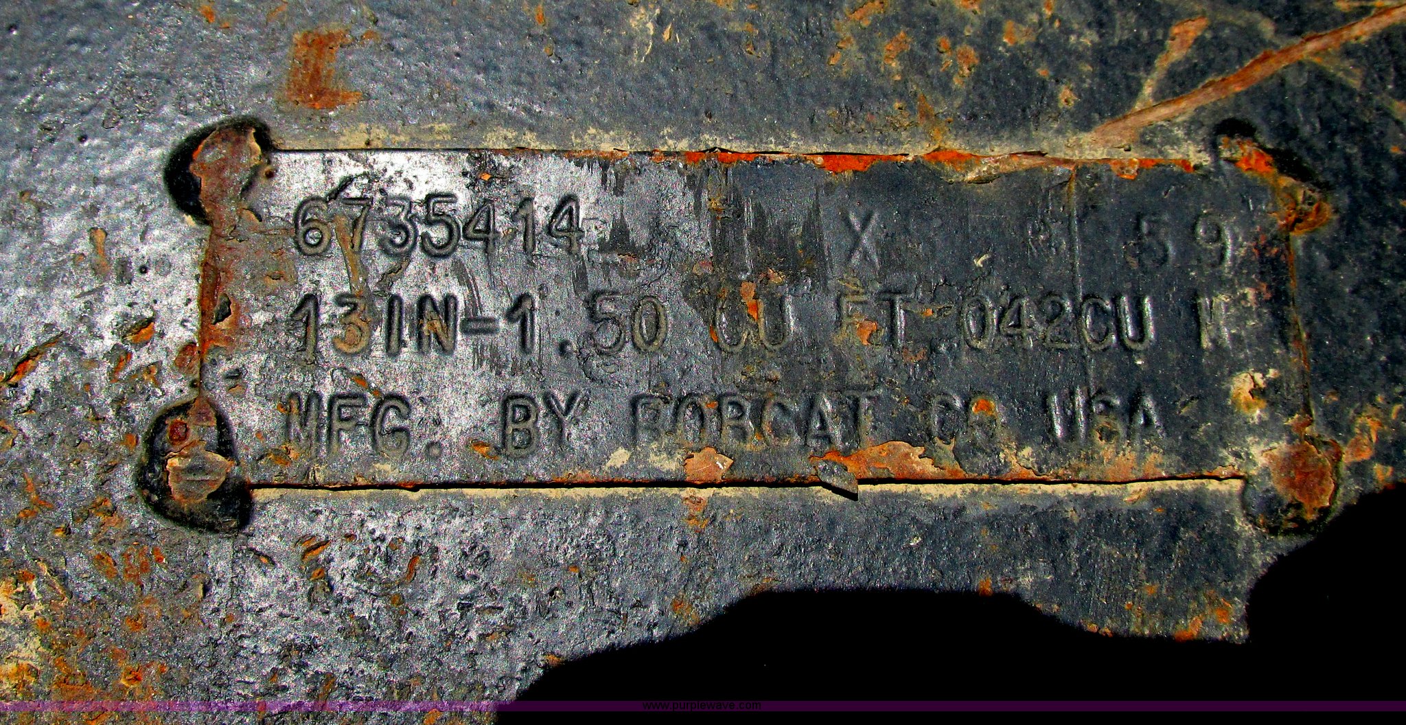 Purple Wave is selling a used Excavator Attach. in Missouri. This item is a 13" excavator bucket with the following: 1.5 cu. ft. capacity, Three tooth, Side cutters, Bobcat quick attach, Fits Bobcat 331, 430, 334, E32, E35, Serial 6735414, Unit# 708741