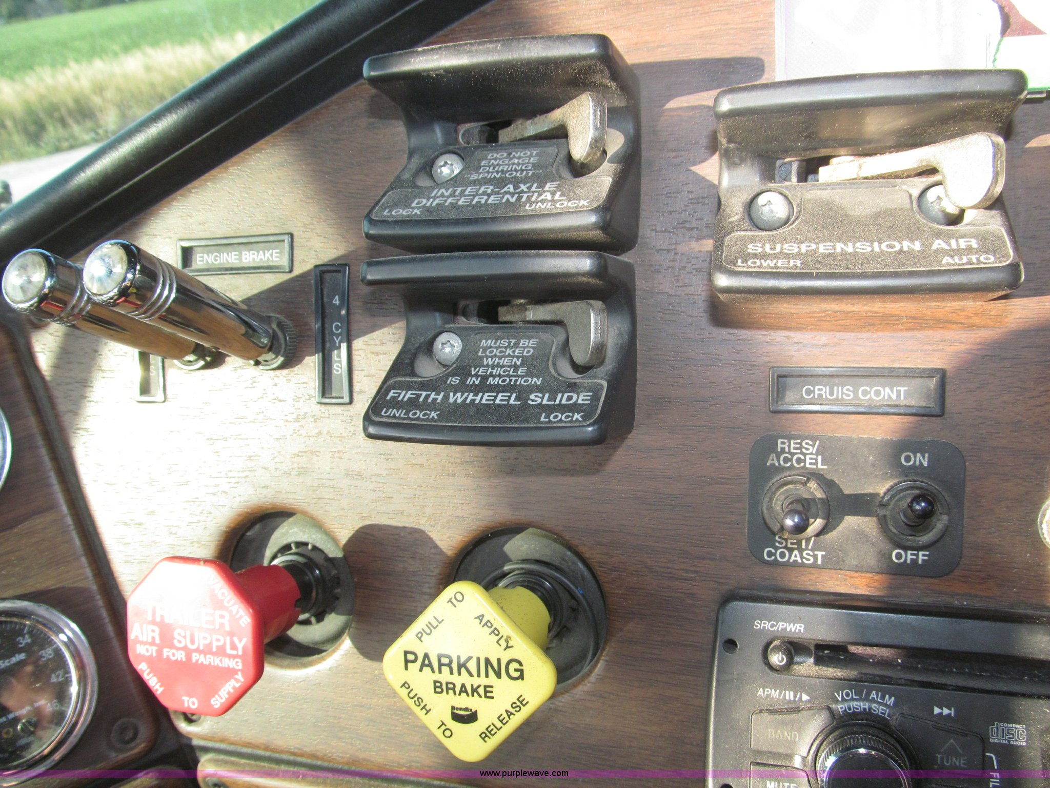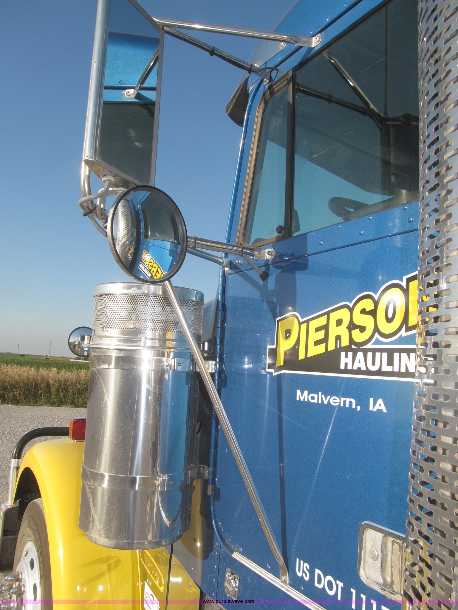 Purple Wave is selling a used Truck Tractor in Iowa. This item is a 2007 Freightliner FLD132 XL Classic tri axle semi truck with the following: 630,758 actual miles, Caterpillar C15 15.2L L6 diesel engine, 550 HP, Serial MXS53906, Eaton Fuller RTLOC-16909A-T2 13 speed manual transmission, Serial P0242562, Twin screw, AC and heat, Tilt, Cruise, Panasonic AM/FM/CD, Model CQ-5109U, Passenger daylight door, Telescoping steering wheel, Air suspension seat, Power windows and mirrors, Heated mirrors, Air ride cab, 12 gauge instrument panel, Exterior visor, Block heater, Fontaine No Slack II fifth wheel plate, Model SL6ATB675016, Air slide, Dual fuel tanks, 80 and 100 gallon capacity, Stainless steel quarter fenders, Dual rear exhaust stacks, Aluminum deck plate, Wet kit, Dump valves, Muncie 27 gpm hydraulic dump pump, Load scale display, Ali Arc aluminum grill, Stainless steel air breathers, 50 gallon hydraulic reservoir, Tow pin, Serves as grill removal tool, Highway triangles, Air suspension, Jake brake, 260" wheelbase, Dana Spicer front axle, 15,000 lbs steerable pusher axle, Model ASC1500S, Serial 012103, Dana Spicer DS404RSPS drive axles, Hubcaps, One missing, 275/80R22.5 steer tires, 295/75R22.5 drive tires, 255/70R22.5 pusher tires, Aluminum wheels, Clutch replaced 2013, Radiator replace 03/2013, Unit# 60A