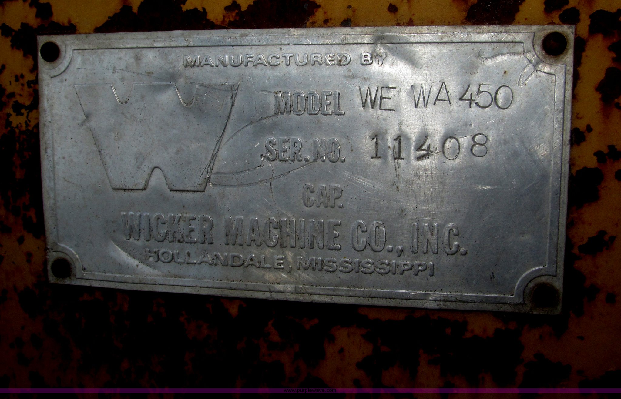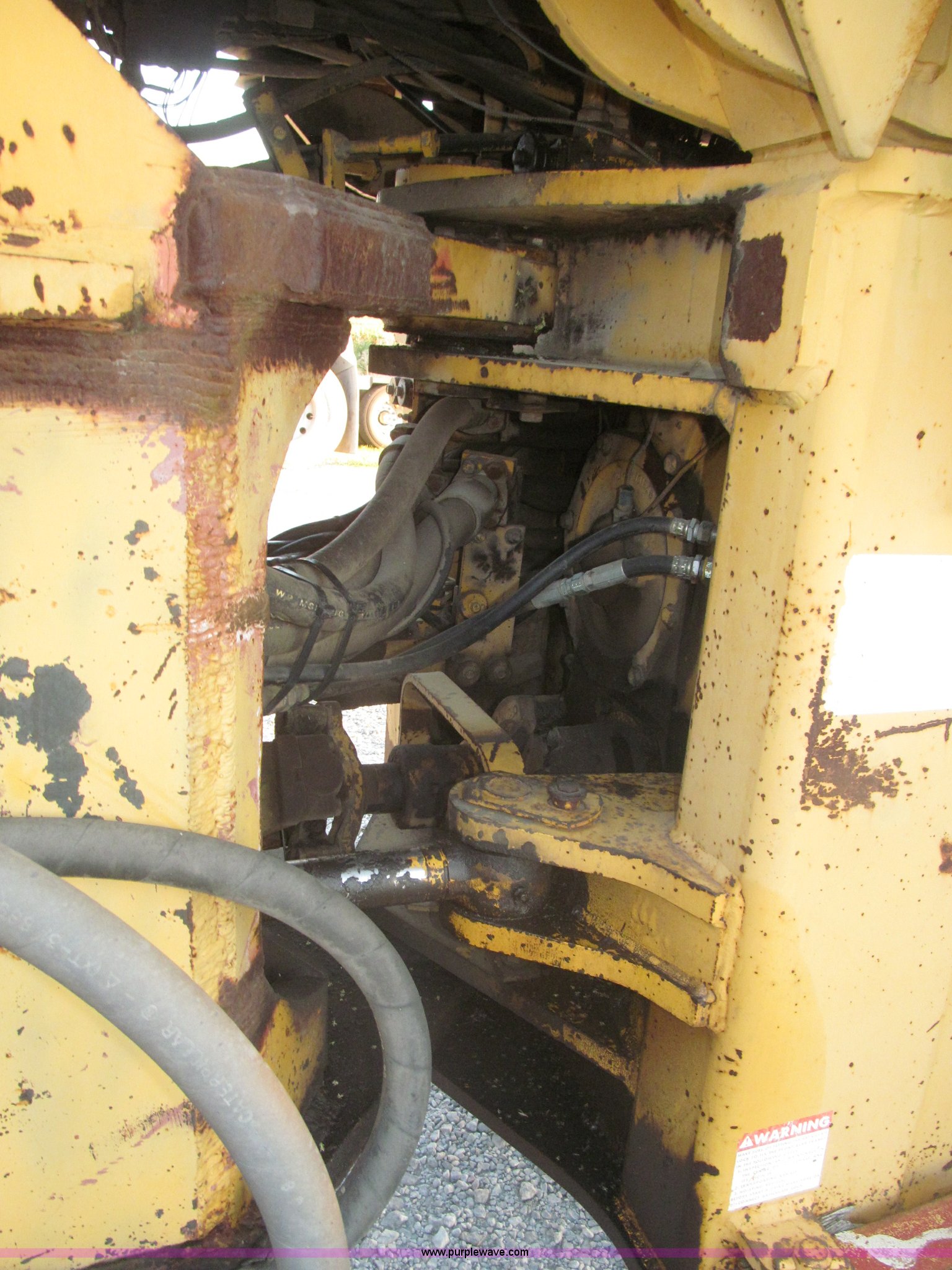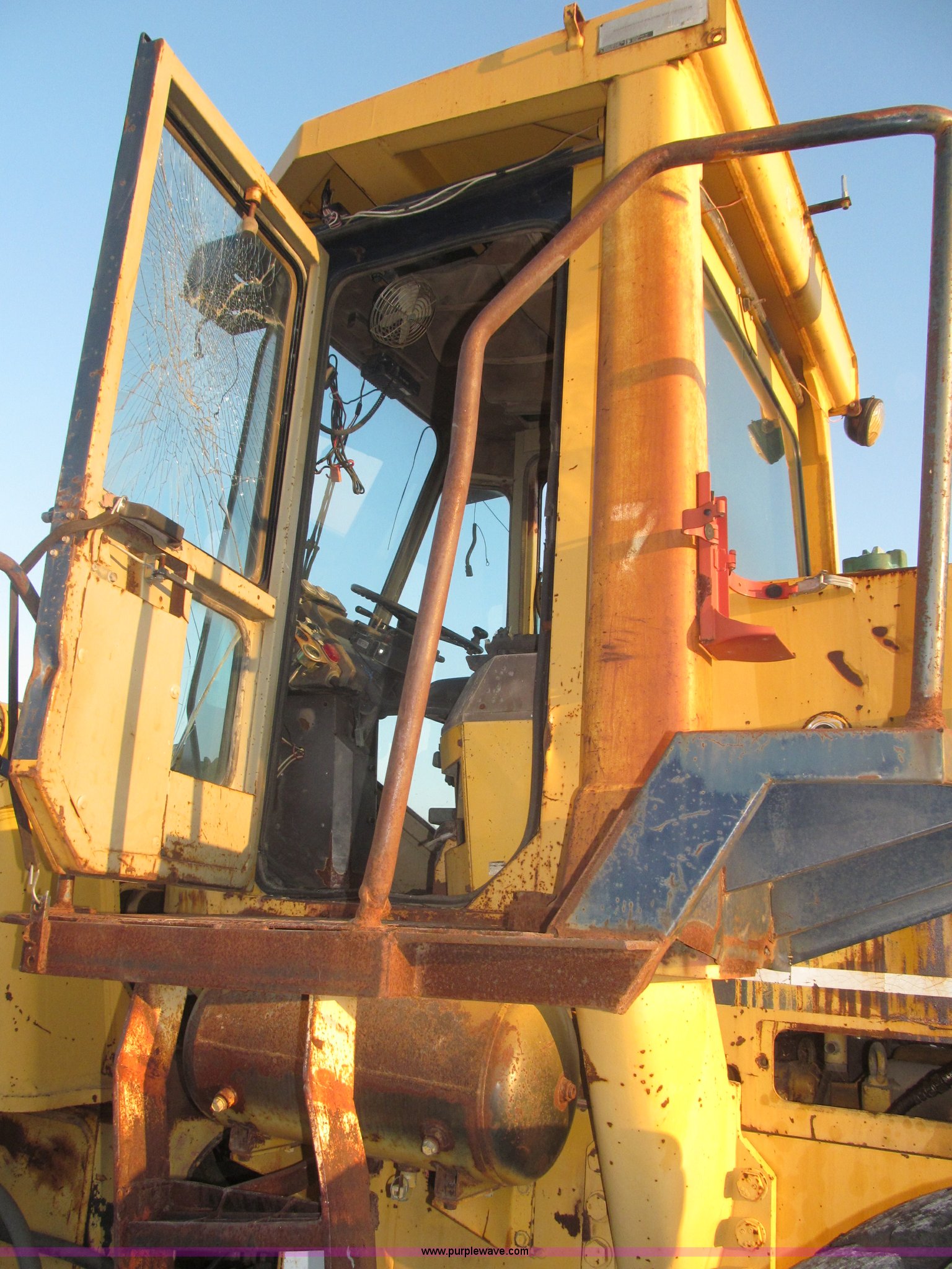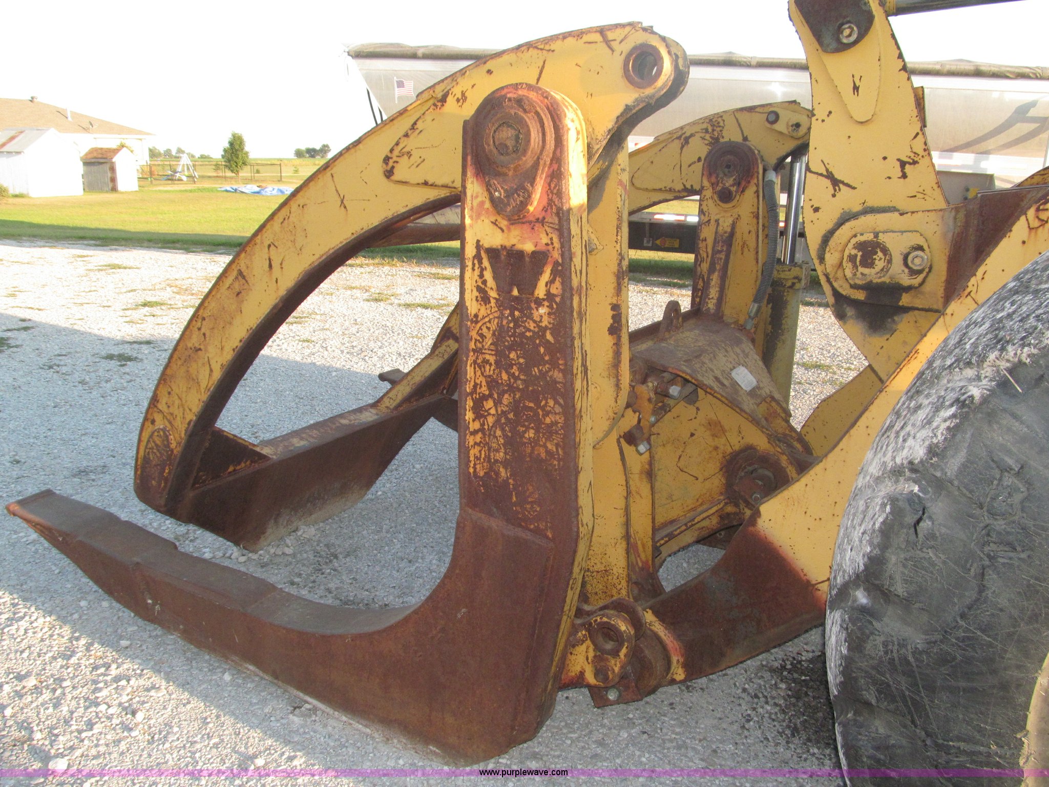 Purple Wave is selling a used Wheel Loader in Iowa. This item is a Komatsu WA450 articulated wheel loader with the following: Komatsu six cylinder turbo diesel engine, 273 HP, Model SAA6D123E-5, Powershift transmission, 4F-4R gears, ROPS, Serial M73478-70E0189, Spring suspension seat, Wicker Machine WEWA450 grapple forks, Bucket pins missing, One cylinder missing, Serial 11408, Main disconnect, 26.5-25 tires, 49,780 lbs. base operating weight, Cab door glass broken