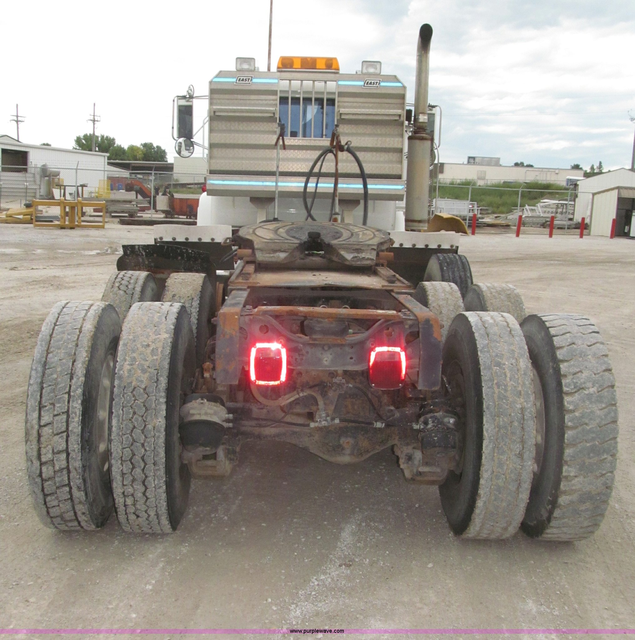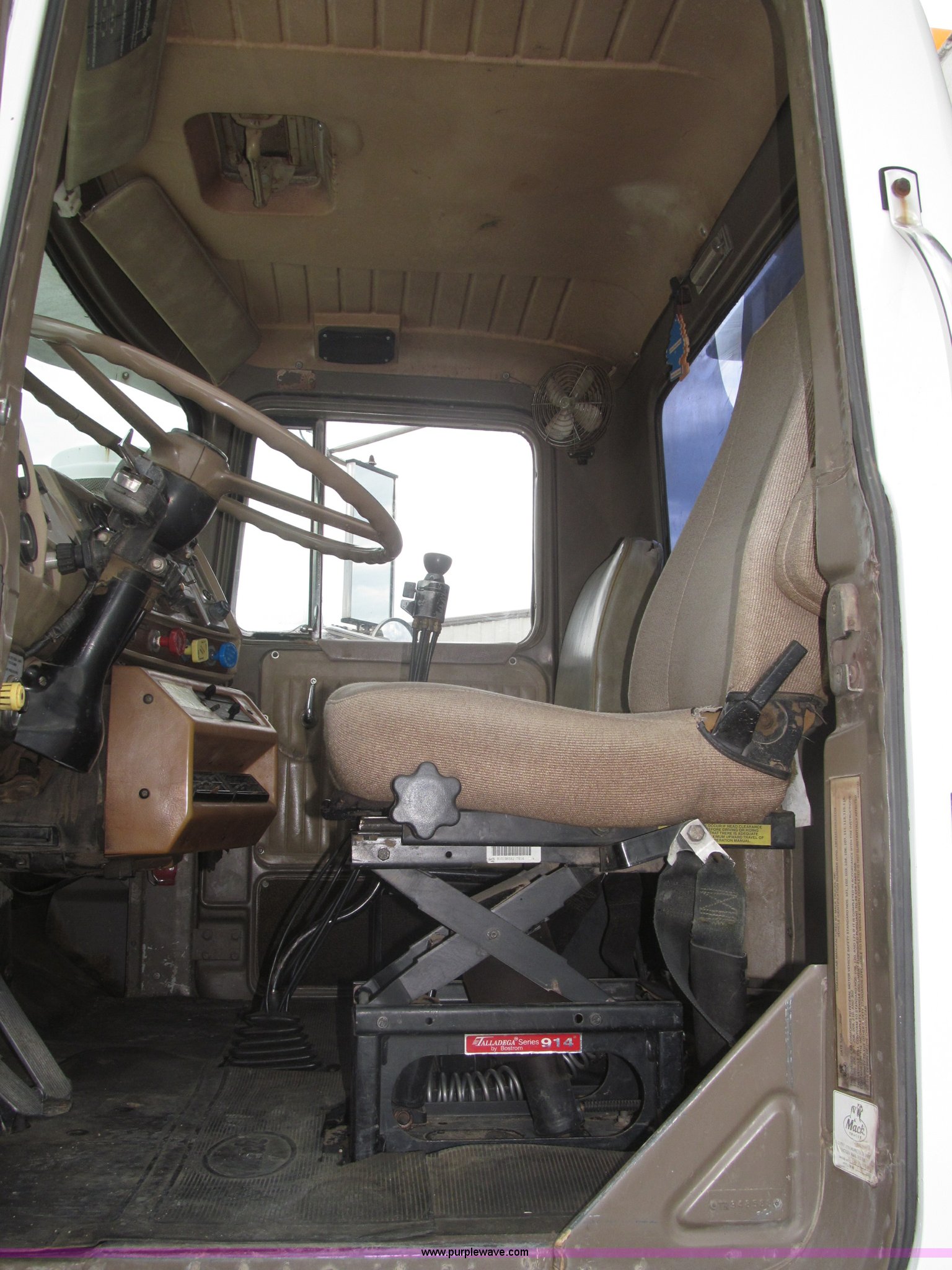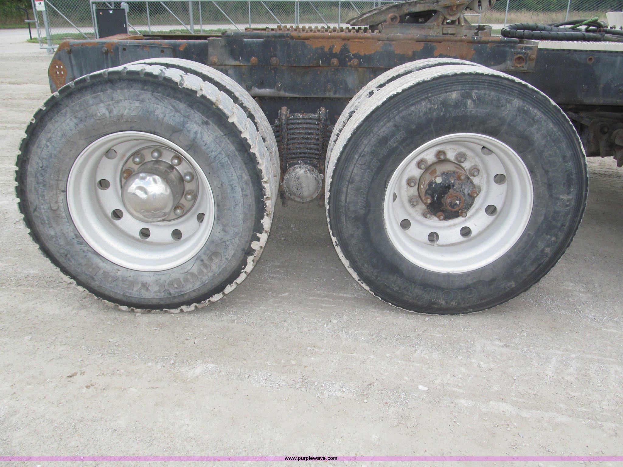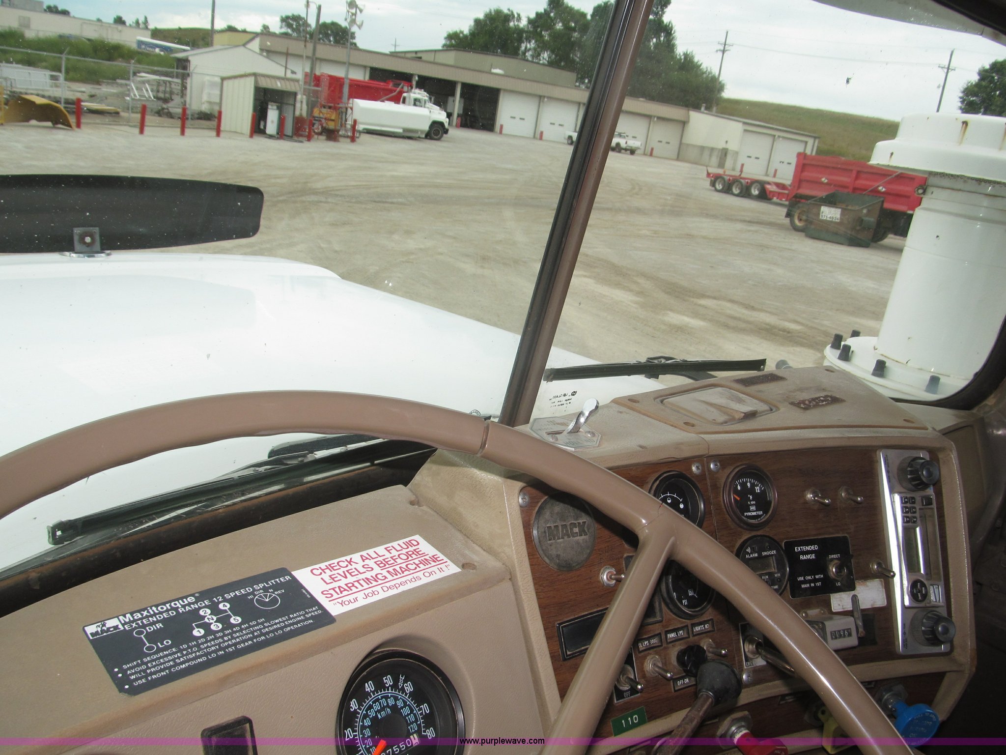 Purple Wave is selling a used Truck Tractor in Nebraska. This item is a 1985 Mack RD688S Econodyne triple axle semi truck with the following: 27,550 miles on odometer, 9,842 hours on meter, Mack E6-350 11.0L L6 turbo diesel engine, 350 HP, Maxitorque Extended Range 12 speed manual transmission, Twin screw, AC and heat, Jensen CR225X night glow AM/FM/cassette, Bostrom Talladega air suspension seat, Heated mirrors, Air ride cab, Silent drive pusher axle control, Bug deflector, East headache rack, Window, Storage, Chain hanger, Rear lights and strobe, 10 gauge instrument cluster, Merritt saddle box, Visor, Bumper, Block heater, Holland air slide fifth wheel, 48" air powered, Dual fuel tanks, 75 and 45 gallon capacities, Single rear exhaust stacks, Aluminum deck plate, Front tow hooks, One missing, 50 gallon hydraulic tank, Stainless steel quarter fenders, PTO, Wet kit, Spring suspension, Air brakes, Jake brake, Nut wheel covers, Camelback rear spring suspension, 252" wheelbase, Aluminum wheels, Non-steerbale pusher axles, 275/80R22.5 pusher tires, 11R22.5 tires, 44,000 lbs rear driver axles, Clutch and air compressor replaced in 2006, Fewer than 20,000 miles since being replaced, Interior/exterior cosmetic damage, Rust, Unit# 06-110