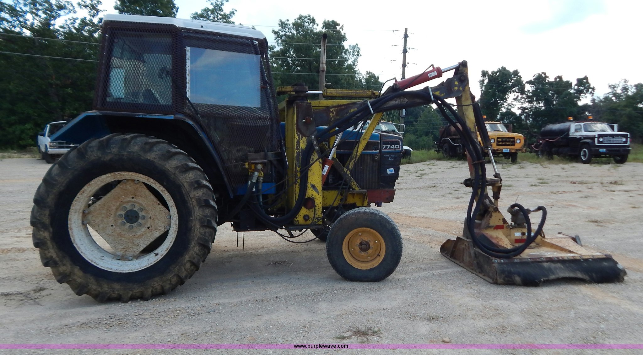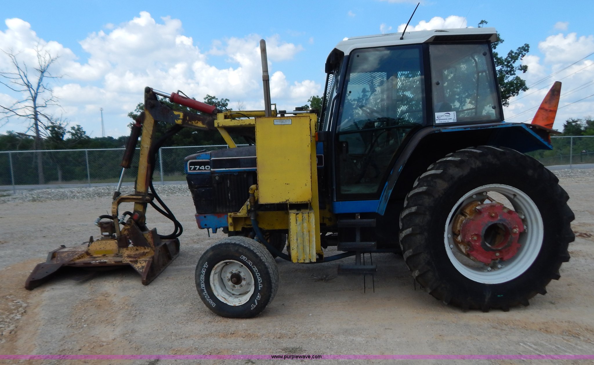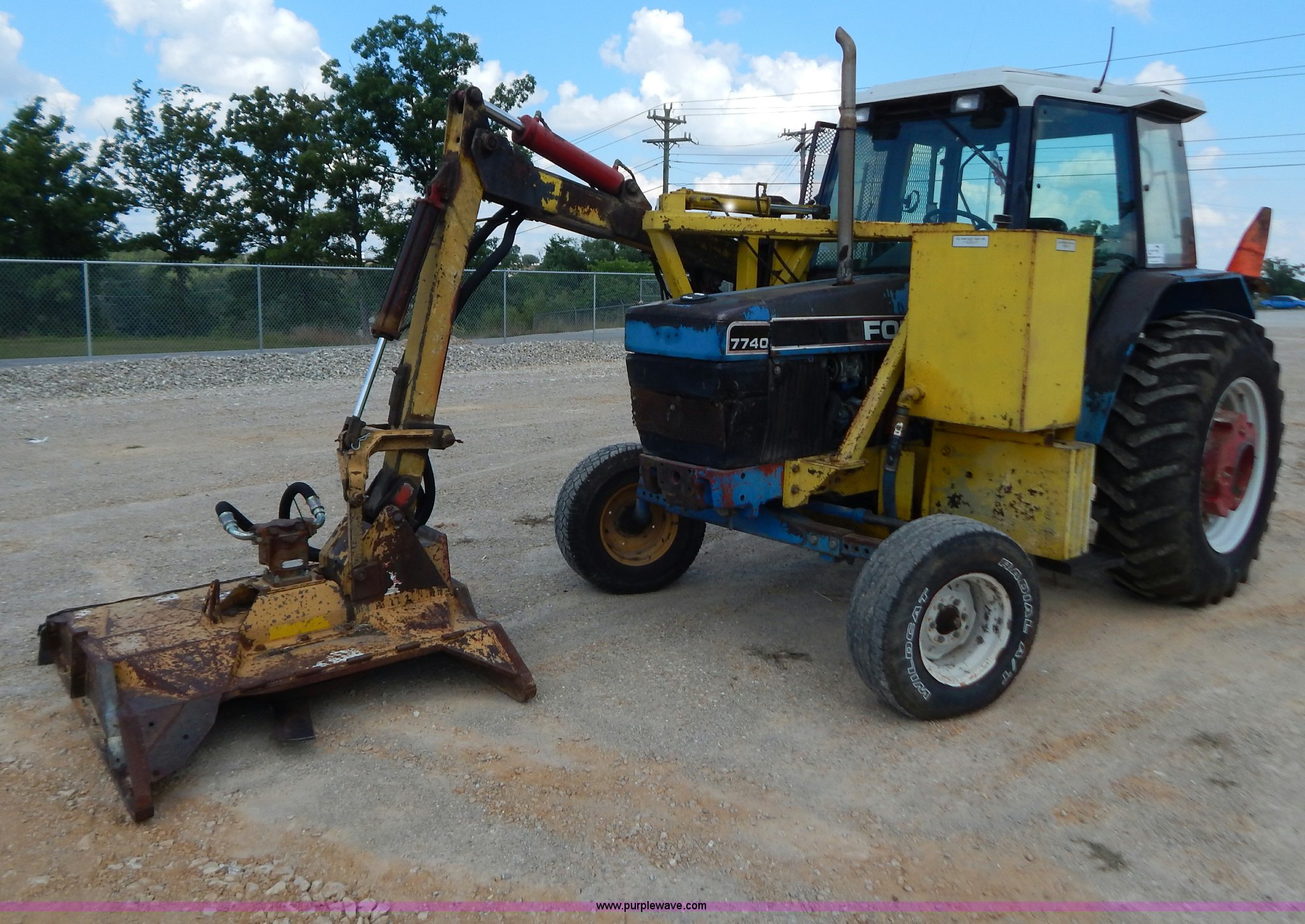 Purple Wave is selling a used Tractor in Missouri. This item is a 1993 Ford 7740 PowerStar SL tractor with the following: 4,819 hours on meter, Four cylinder diesel engine, 12F-12R gears, AC and heat, AM/FM, Mo-Tran hydraulic arm, Tiger hydraulic driven mower, 50" deck, PTO driven, 265/75R16 front tires, 18.4-34 rear tires, Serial BD50173