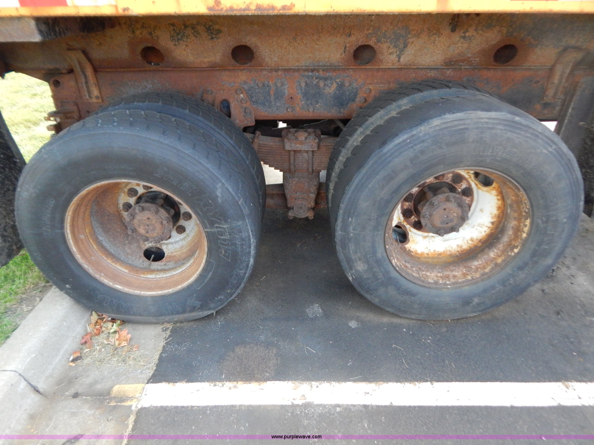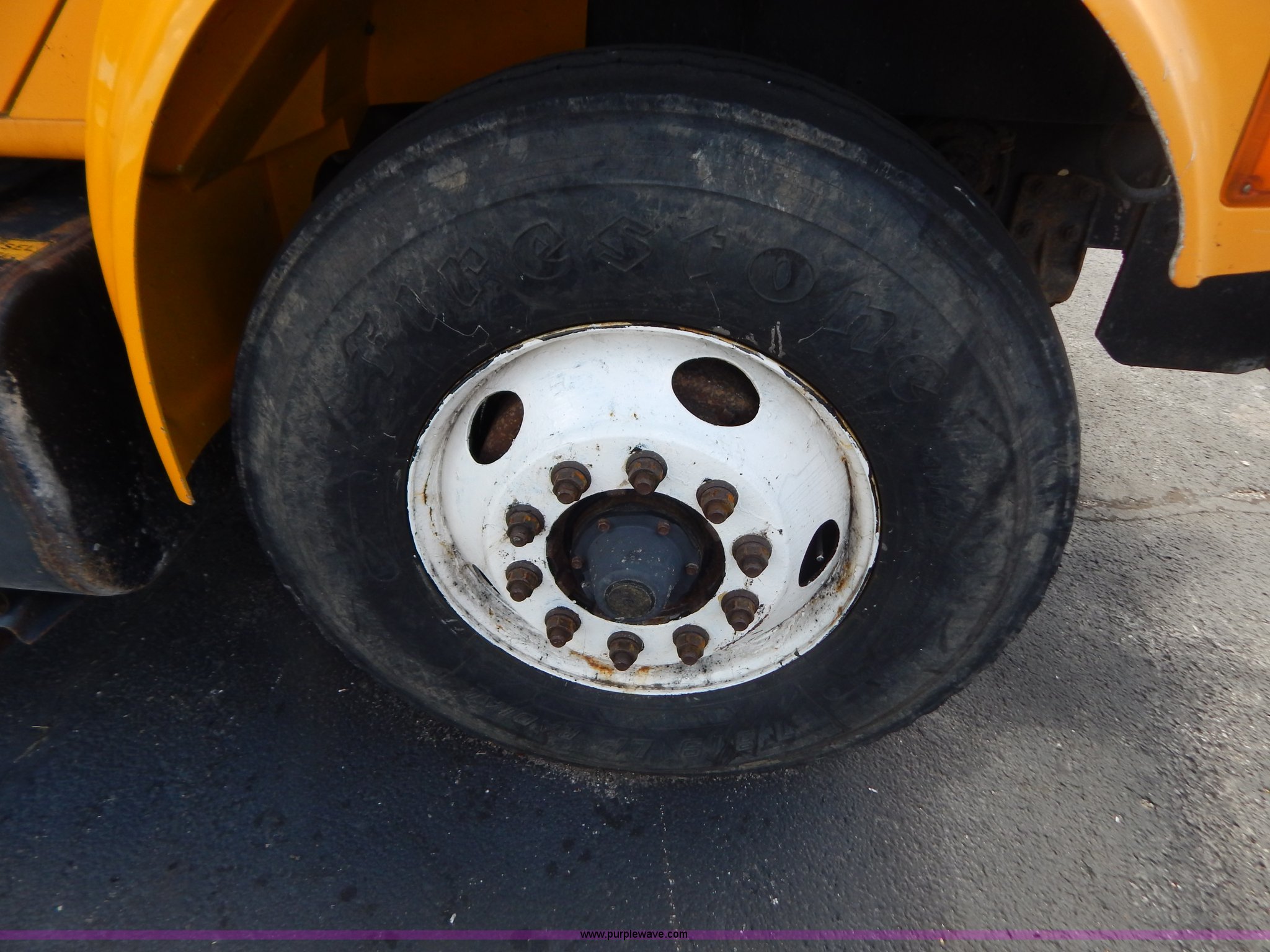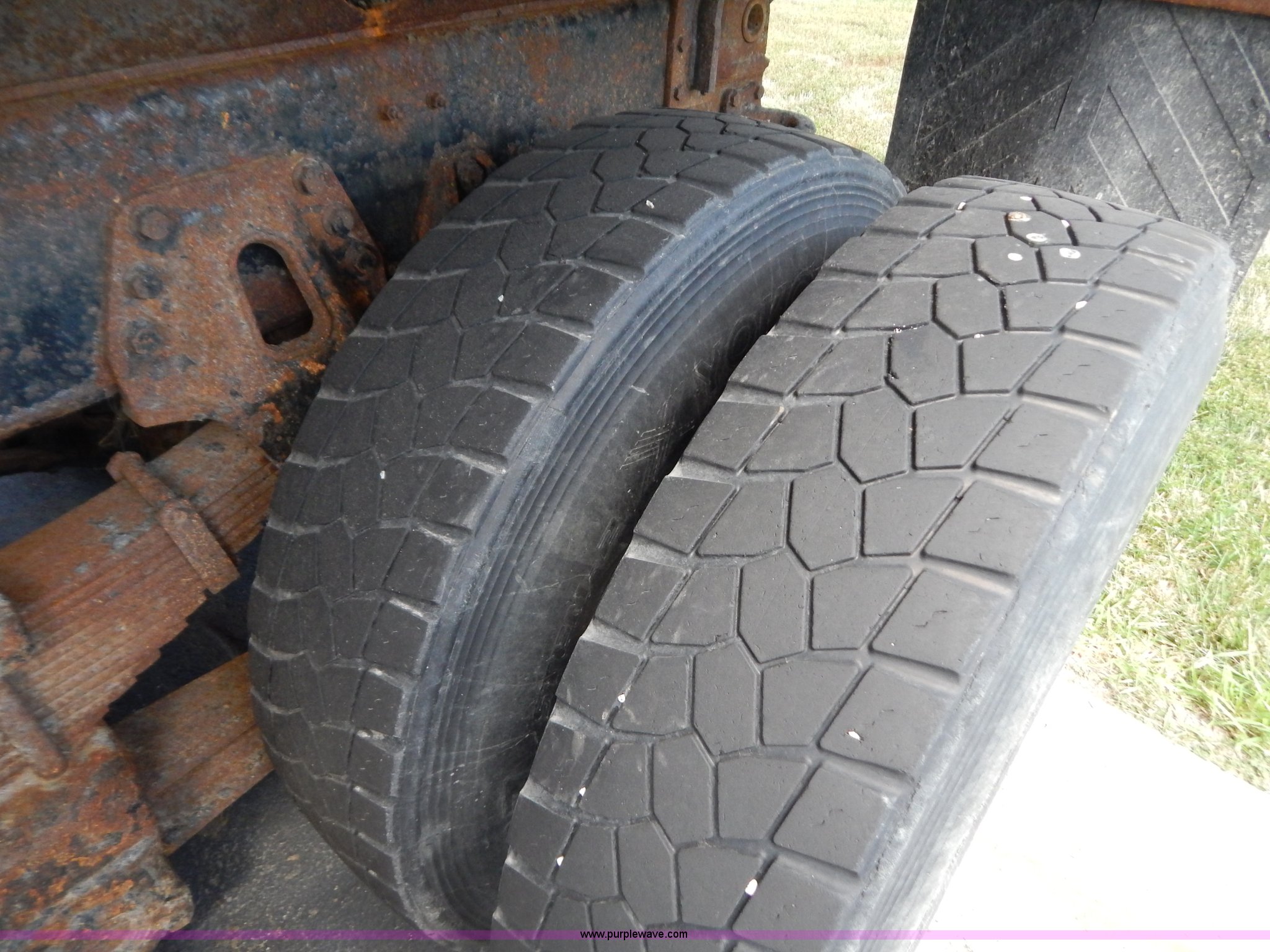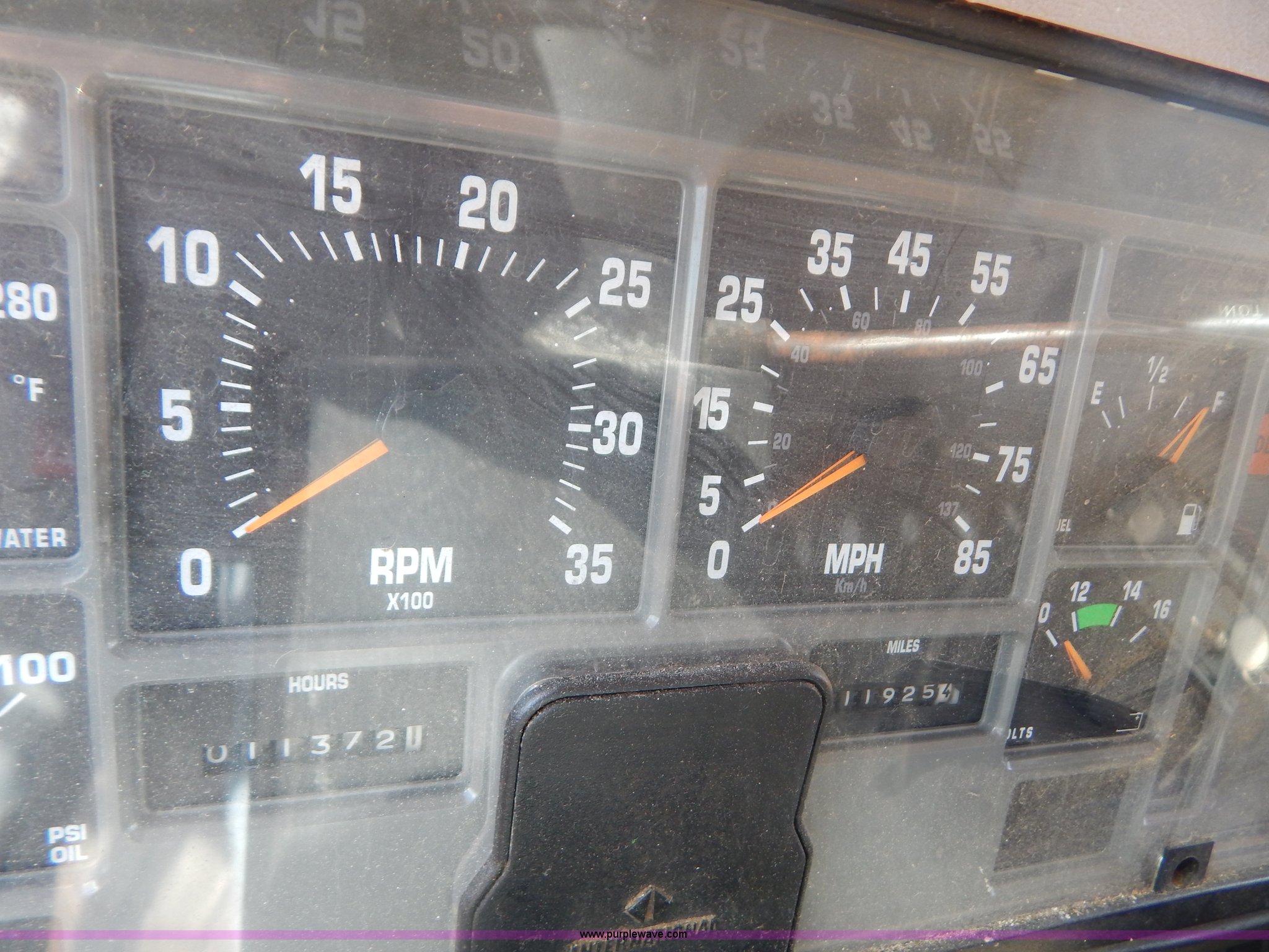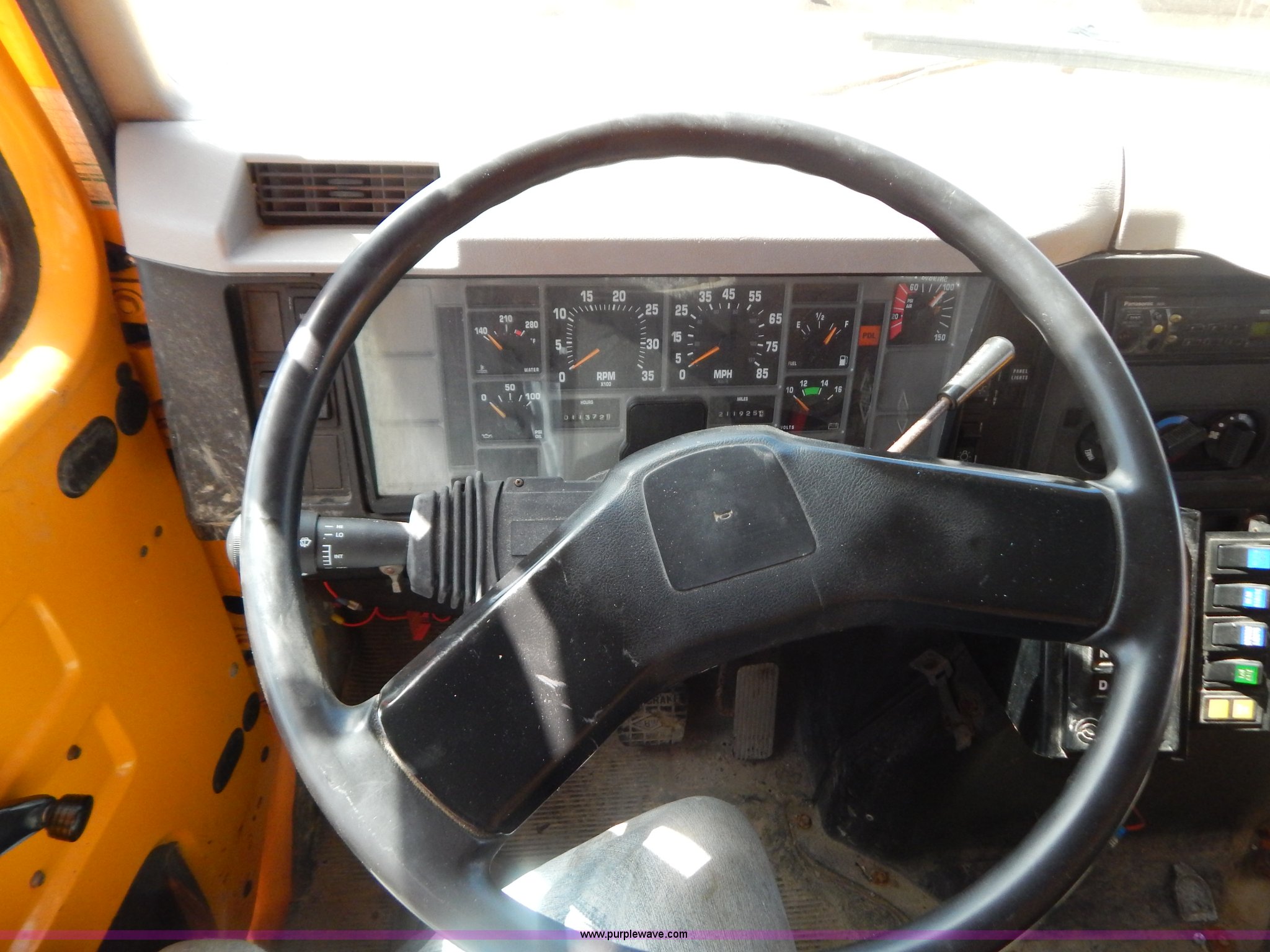 Purple Wave is selling a used Construction Dump Truck in Missouri. This item is a 1999 International 4900 tandem axle dump truck with the following: 211,925 miles on odometer, 11,371 hours on meter, International DT530 8.7L L6 diesel engine, Allison automatic transmission, Heat, Cruise, AM/FM, Heated mirrors, Manual windows and locks, Front mounted PTO, 16'L x 8'W x 32"H dump bed, Trailer air brake hook ups, Spreader and plow controls, Front mounted plow lights, Pintle hitch, Air brakes, 206" wheelbase, 315/80R22.5 tires, Battery dead, Interior/exterior cosmetic damage, Engine oil leaks, Walking beam bushings need replaced, MoDOT ID 6065