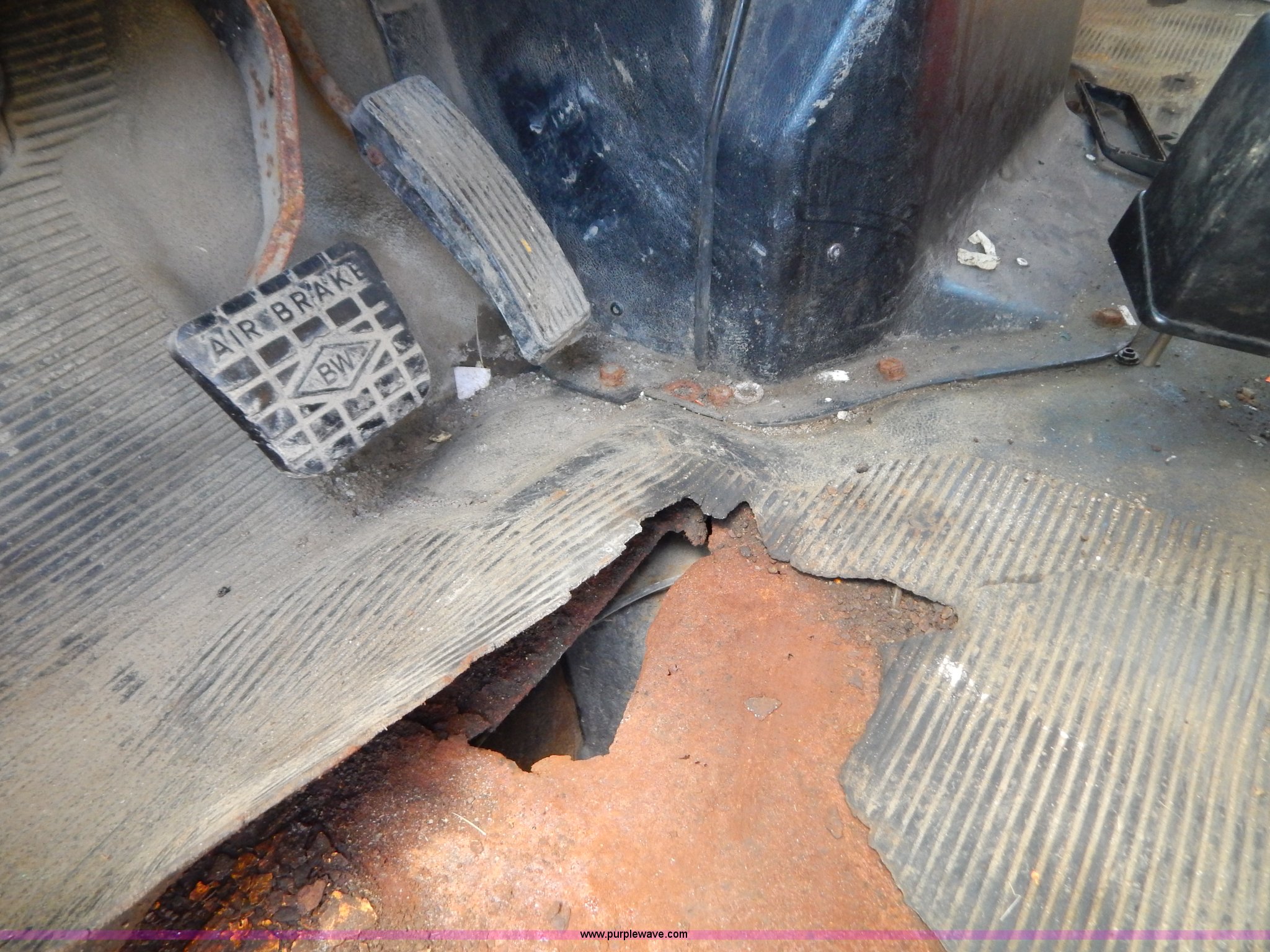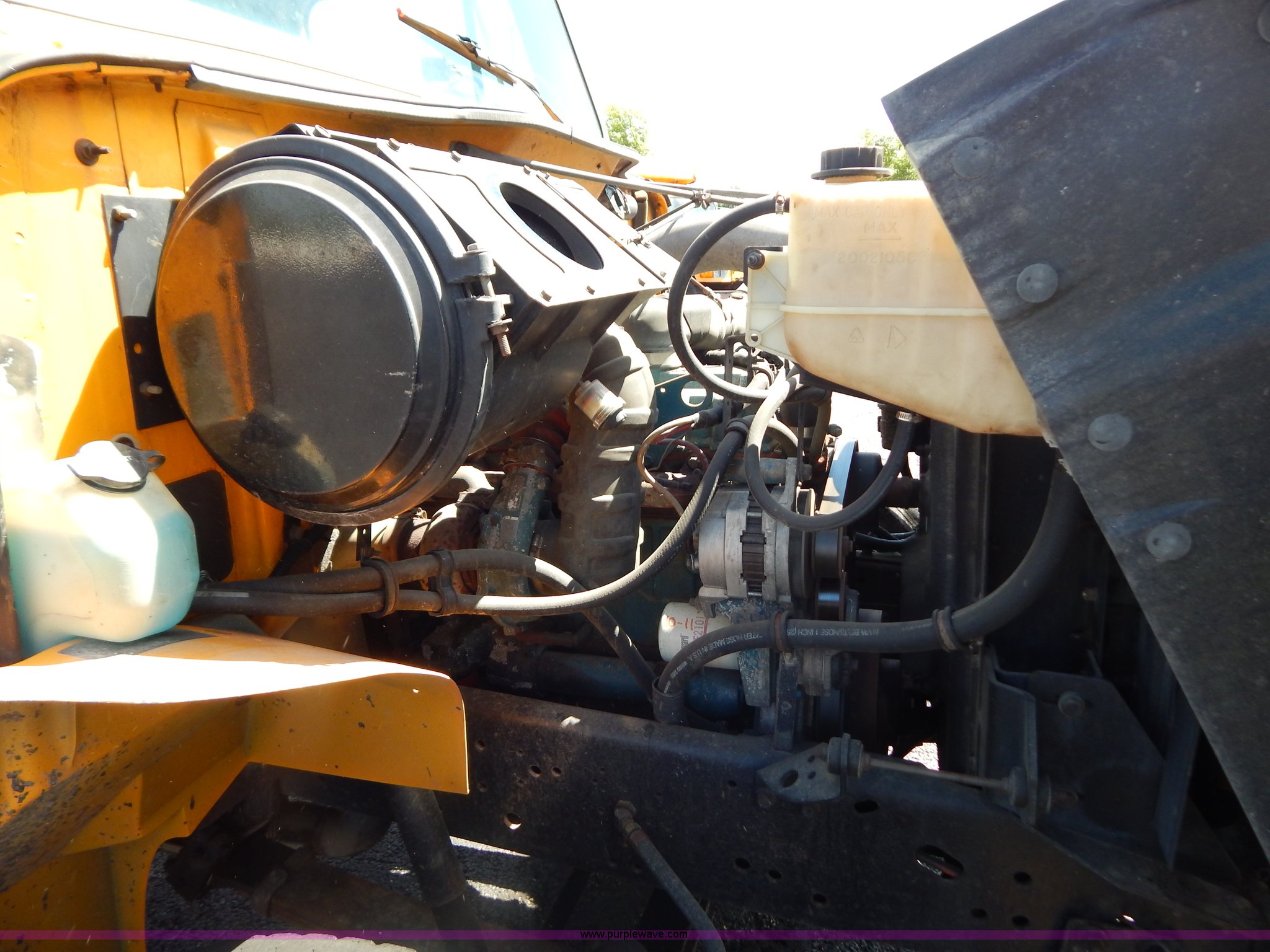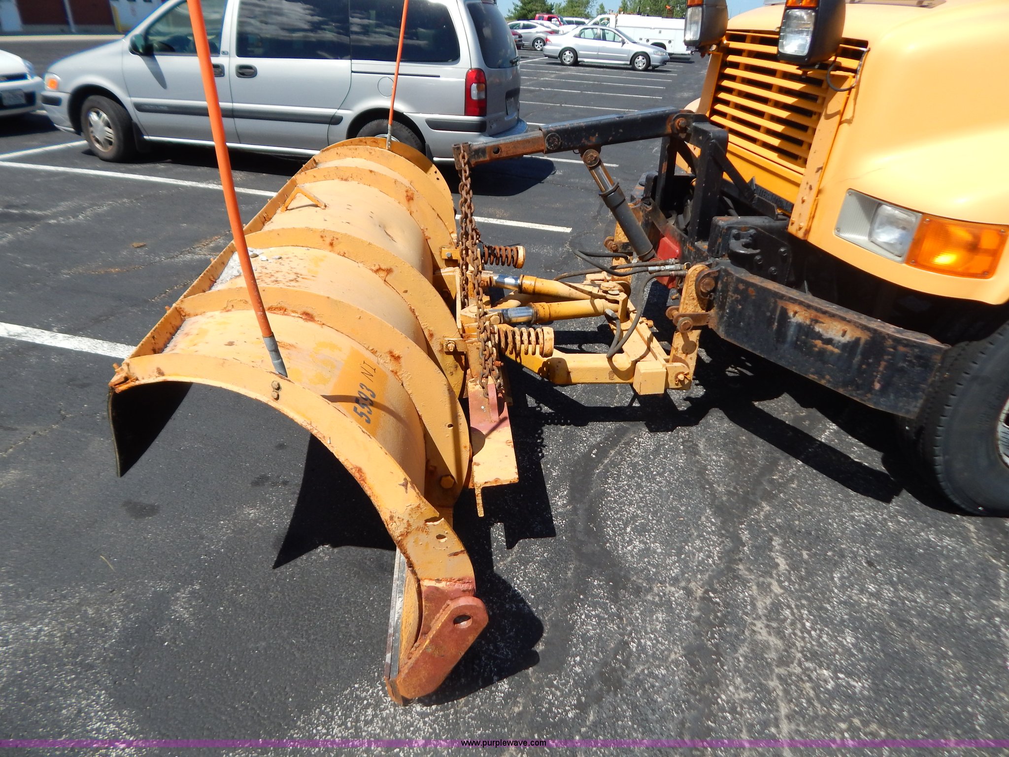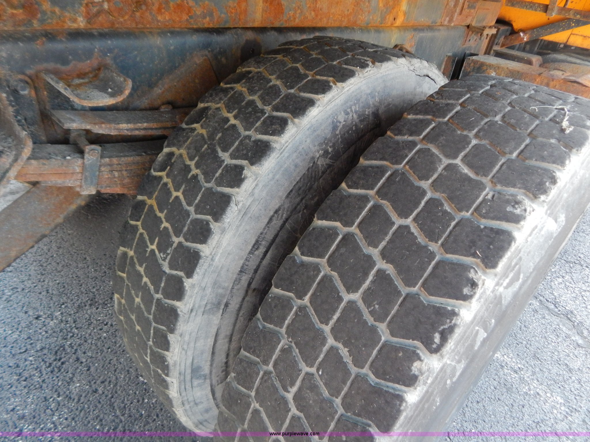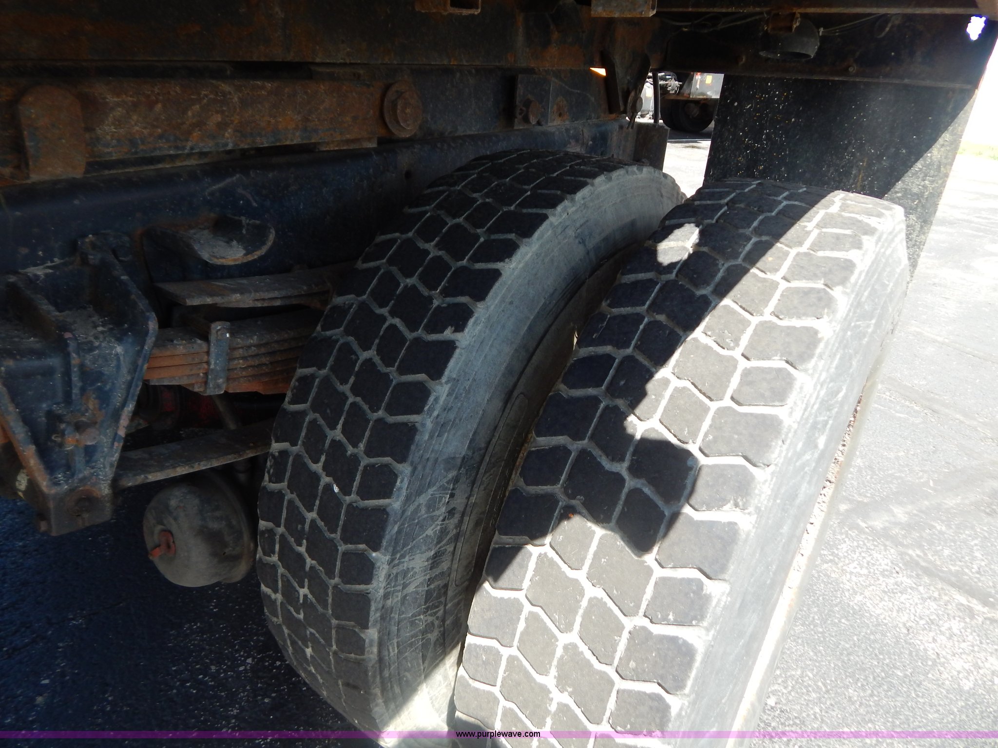 Purple Wave is selling a used Construction Dump Truck in Missouri. This item is a 1997 International 4900 dump truck with the following: 156,504 miles on odometer, 17,658 hours on meter, International DT466 7.6L L6 diesel engine, Allison automatic transmission, Heat, Heated mirrors, Manual windows and locks, Trailer brake controller, 9'L x 8'W x 24"H dump bed, Flink stainless steel salt spreader, Hydraulic driven, Calcium tanks, Lower spreader missing, 11'W snow plow, Smooth bolt-on cutting edge, Plow lights, Four way pivot, Break-away springs, Front mounted PTO, Trailer wiring, Pintle hitch, Air brakes, 140" wheelbase, 11R22.5 tires, Battery dead, Engine leaks oil, Pinion bearing needs replaced, Power steering leaks, Transmission leaks, Bed rusted, MoDOT ID 5593
