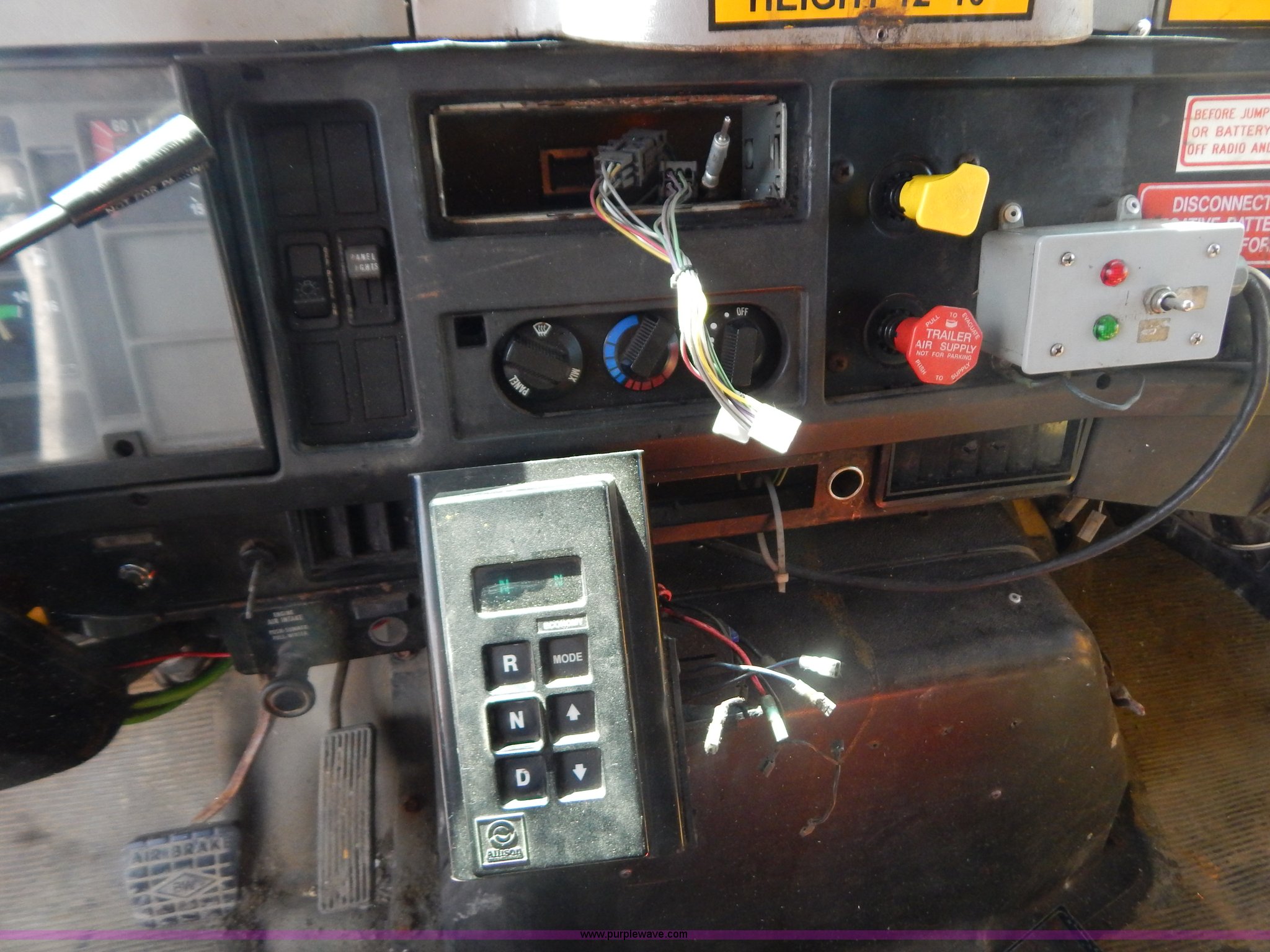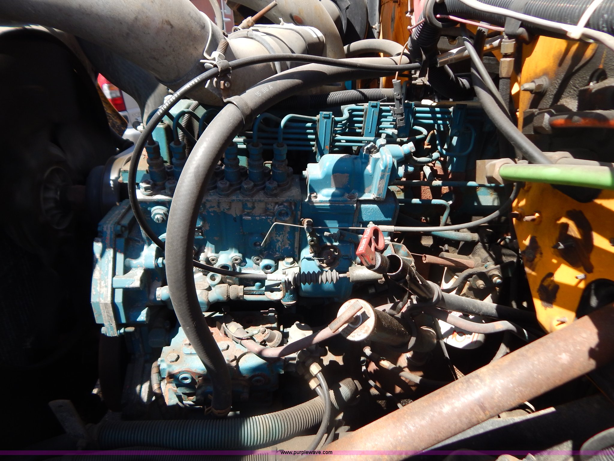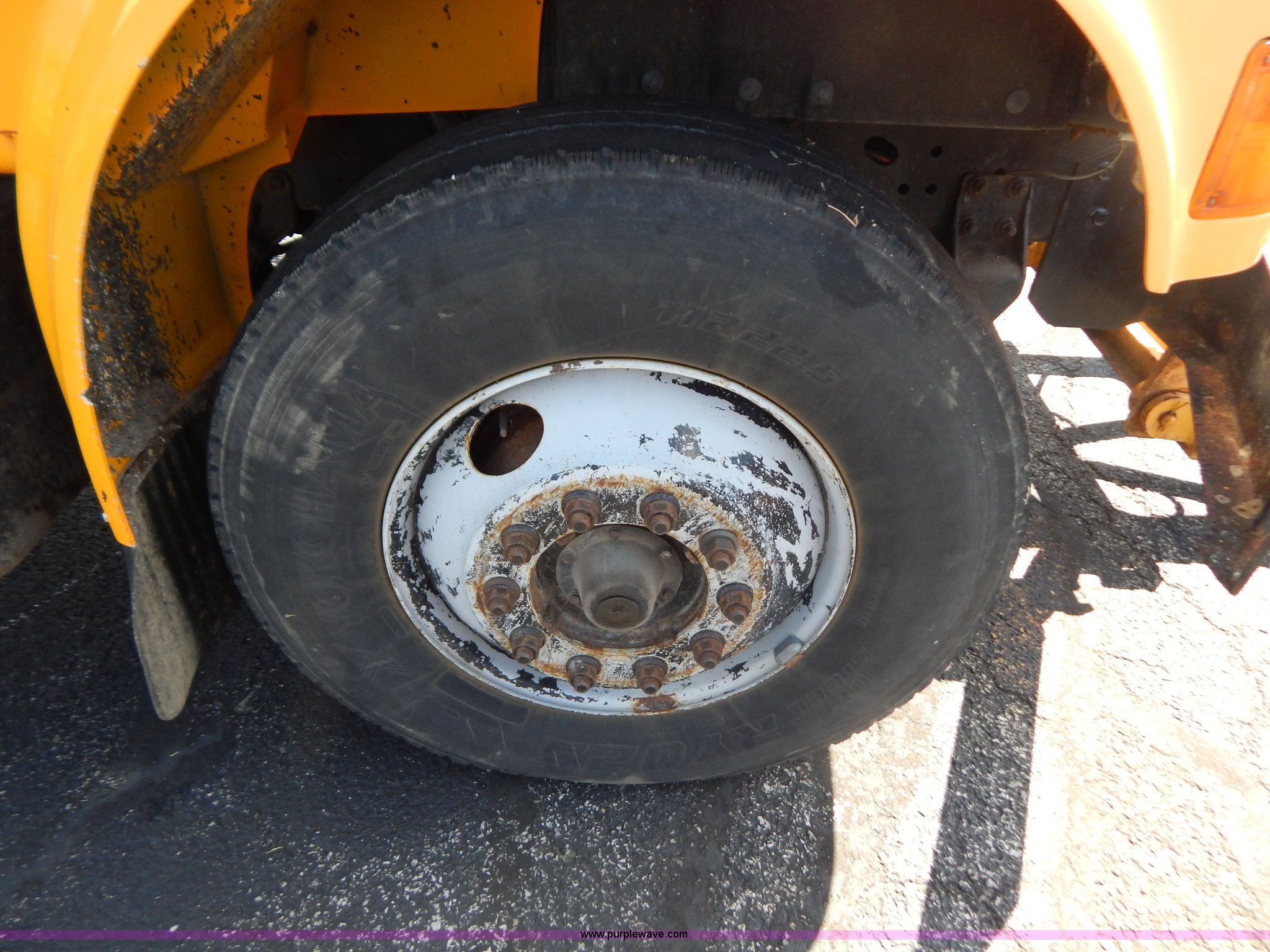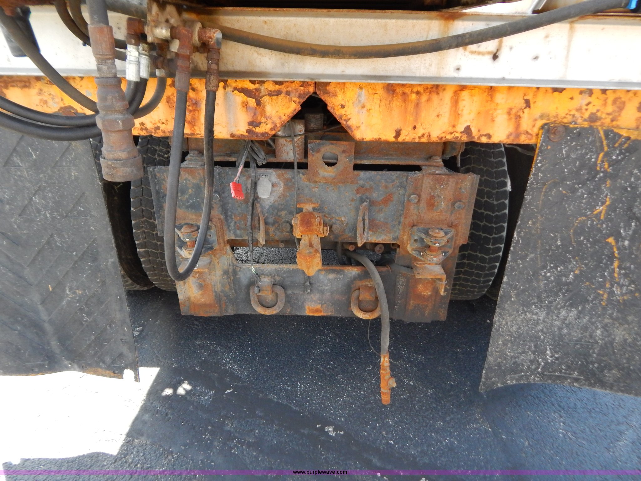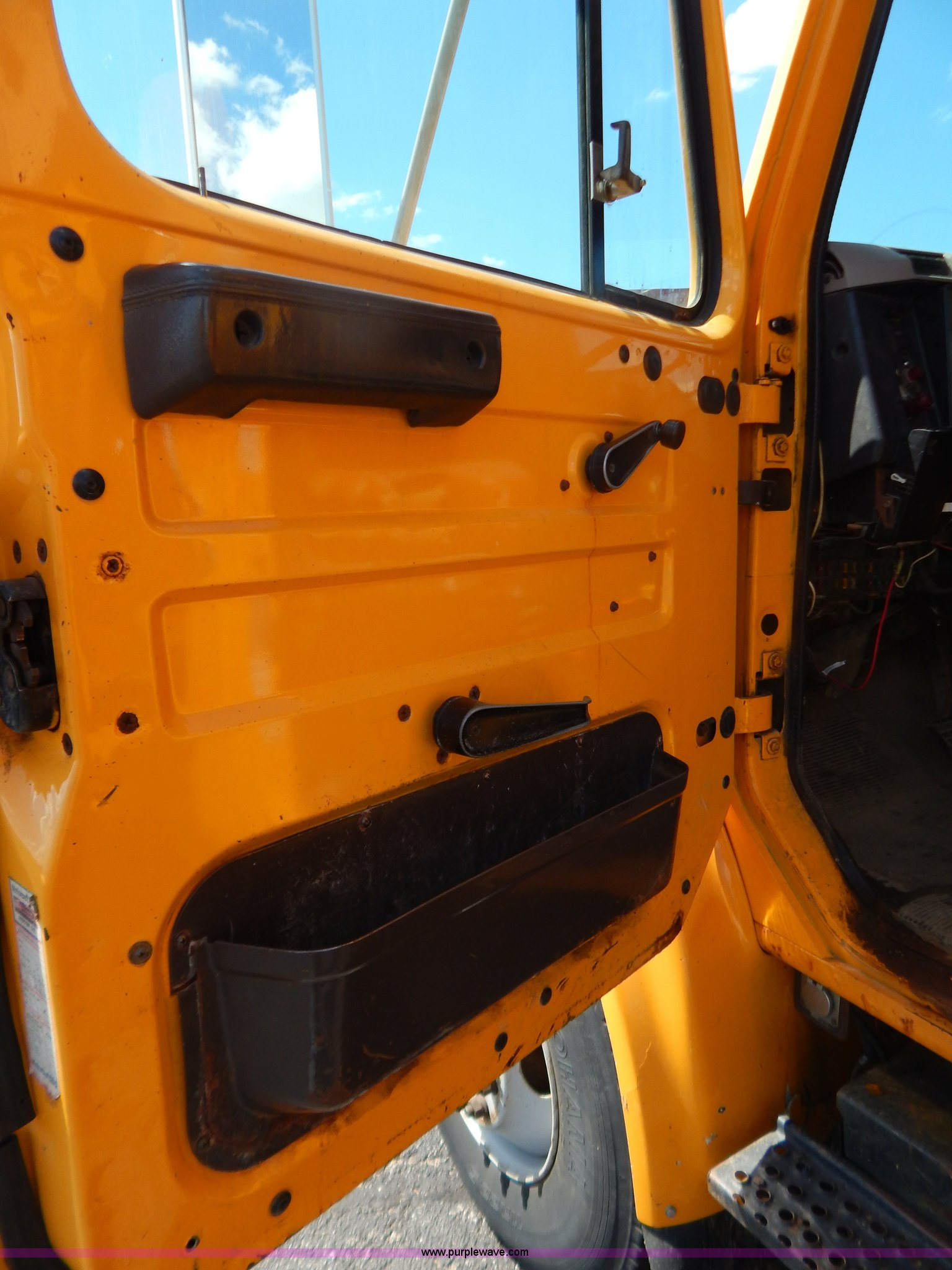 Purple Wave is selling a used Construction Dump Truck in Missouri. This item is a 1997 International 4900 dump truck with the following: 156,504 miles on odometer, 17,658 hours on meter, International DT466 7.6L L6 diesel engine, Allison automatic transmission, Heat, Heated mirrors, Manual windows and locks, Trailer brake controller, 9'L x 8'W x 24"H dump bed, Flink stainless steel salt spreader, Hydraulic driven, Calcium tanks, Lower spreader missing, 11'W snow plow, Smooth bolt-on cutting edge, Plow lights, Four way pivot, Break-away springs, Front mounted PTO, Trailer wiring, Pintle hitch, Air brakes, 140" wheelbase, 11R22.5 tires, Battery dead, Engine leaks oil, Pinion bearing needs replaced, Power steering leaks, Transmission leaks, Bed rusted, MoDOT ID 5593