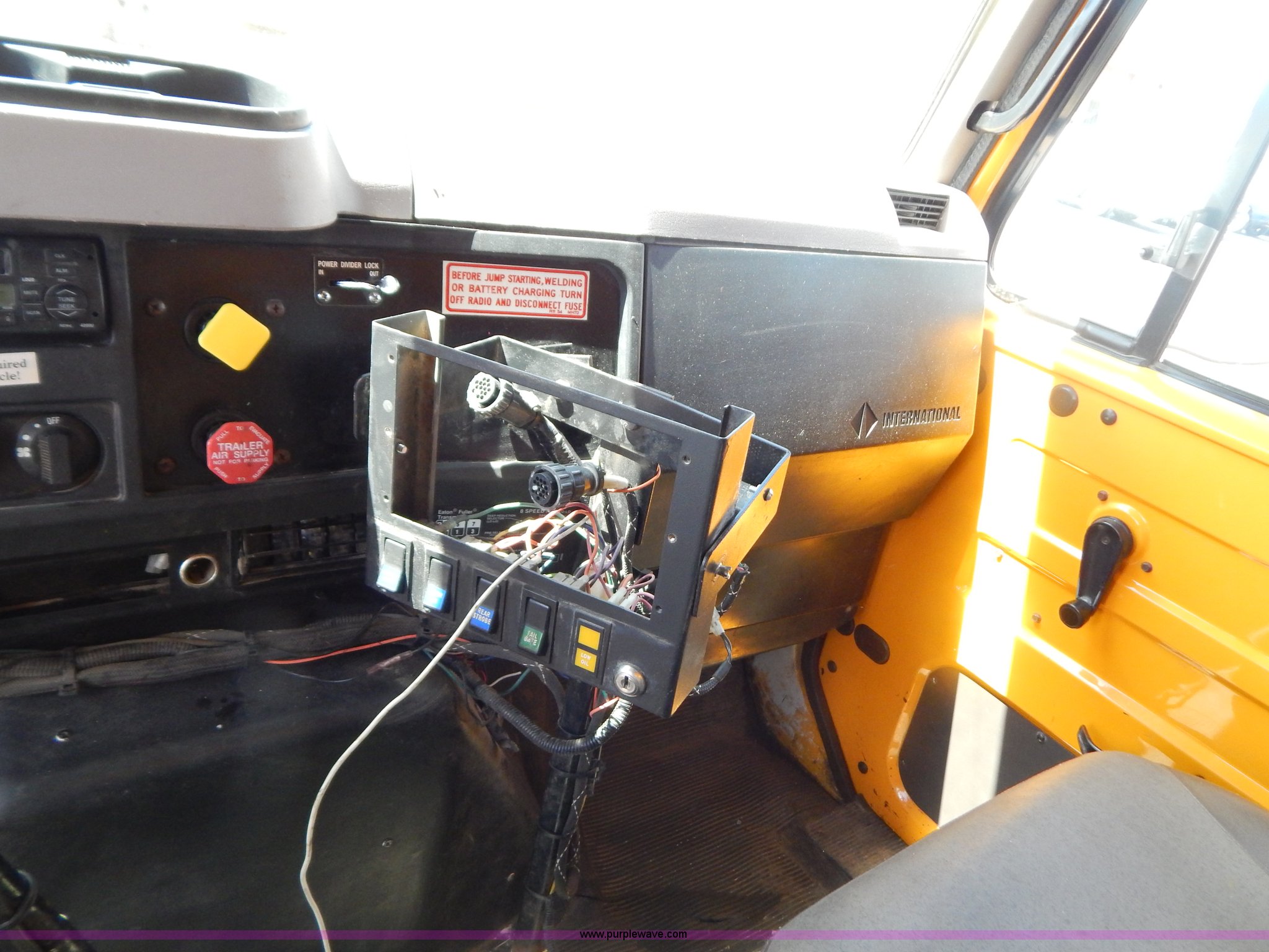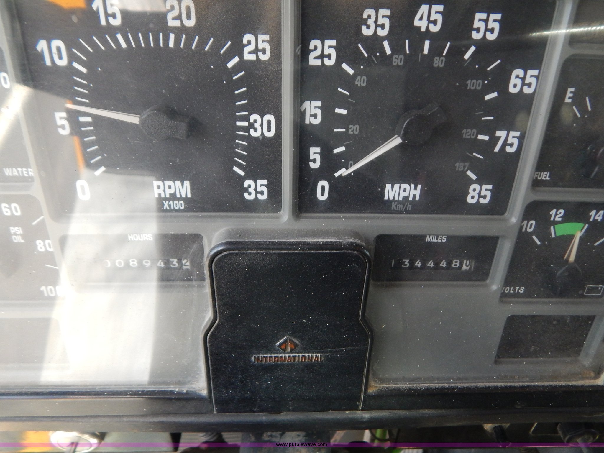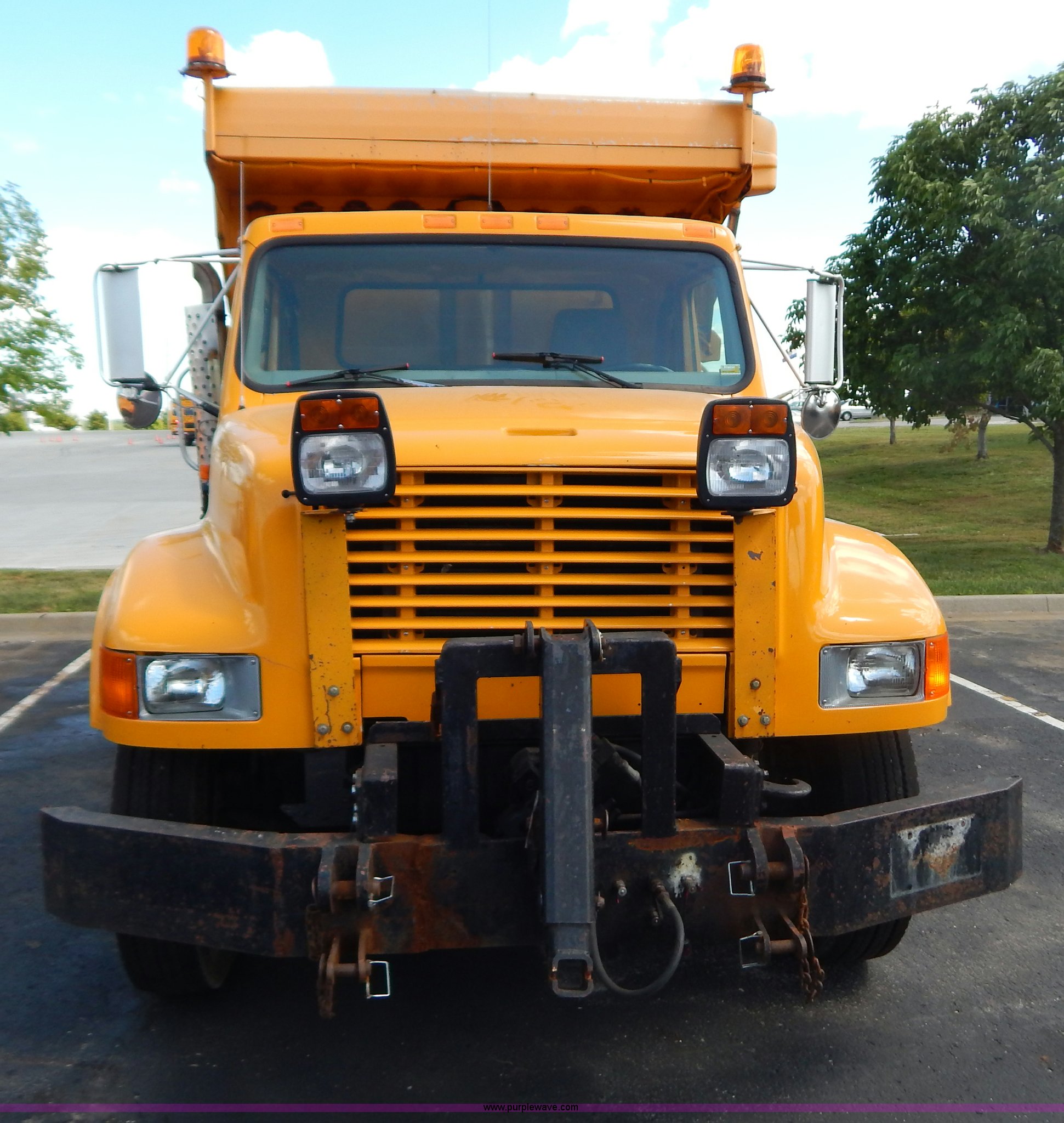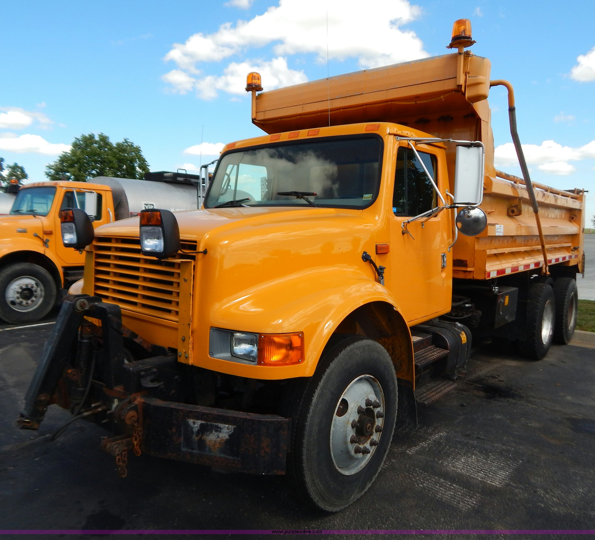 Purple Wave is selling a used Construction Dump Truck in Missouri. This item is a 1998 International 4900 tandem axle dump truck with the following: 134,448 miles on odometer, 8,942 hours on meter, International DT530 8.7L L6 diesel engine, Eaton Fuller manual transmission, Heat, Cruise, AM/FM/cassette, Heated mirrors, Manual windows and locks, Front mounted PTO, 16'L x 8'W x 32"H dump bed, Front snow plow hydraulic hook ups, Rear spreader hydraulic hook ups, Air brakes, 206" wheelbase, 11R22.5 tires, Interior/exterior cosmetic damage, Minor engine oil leaks, MoDOT ID 5704