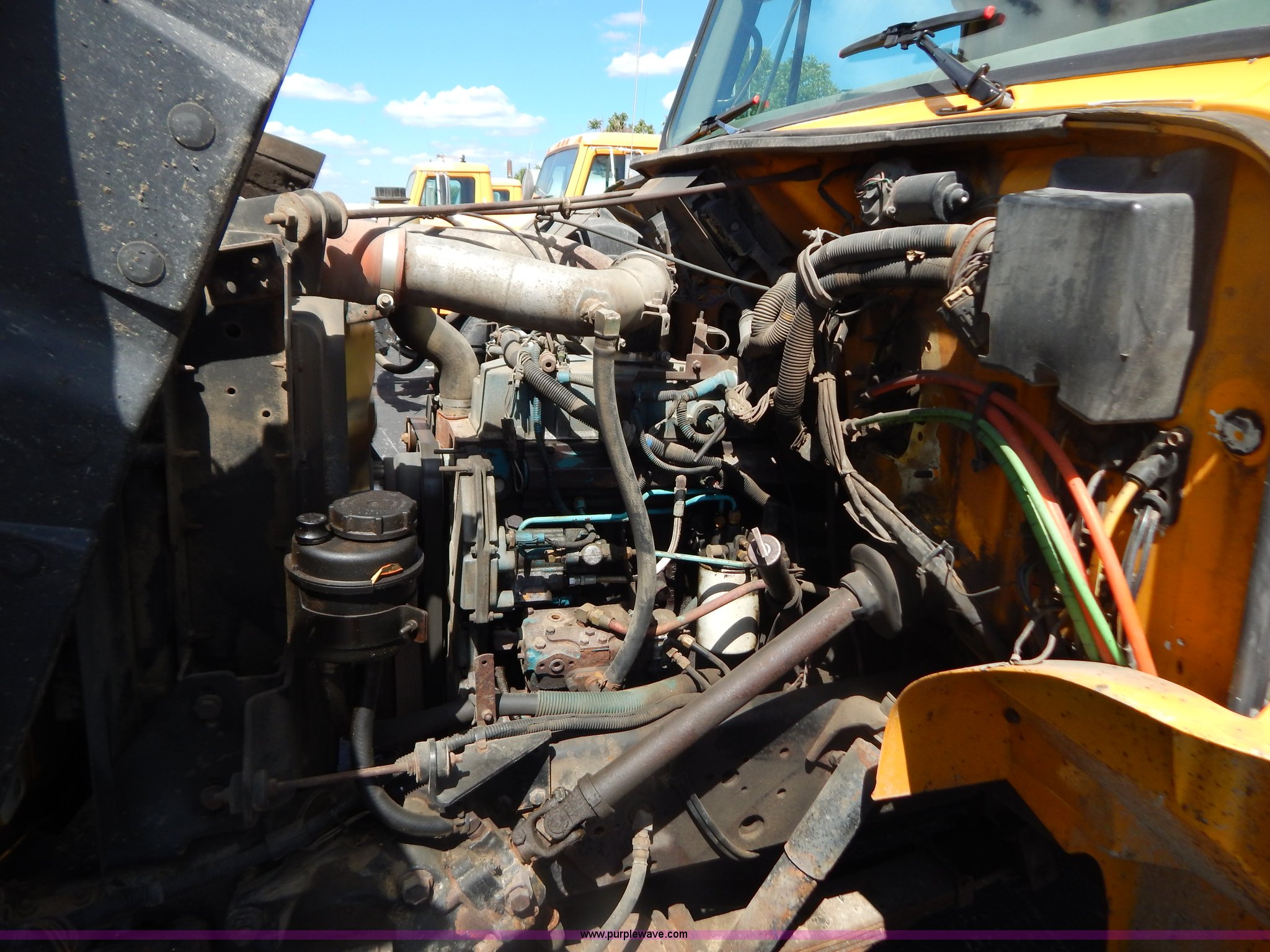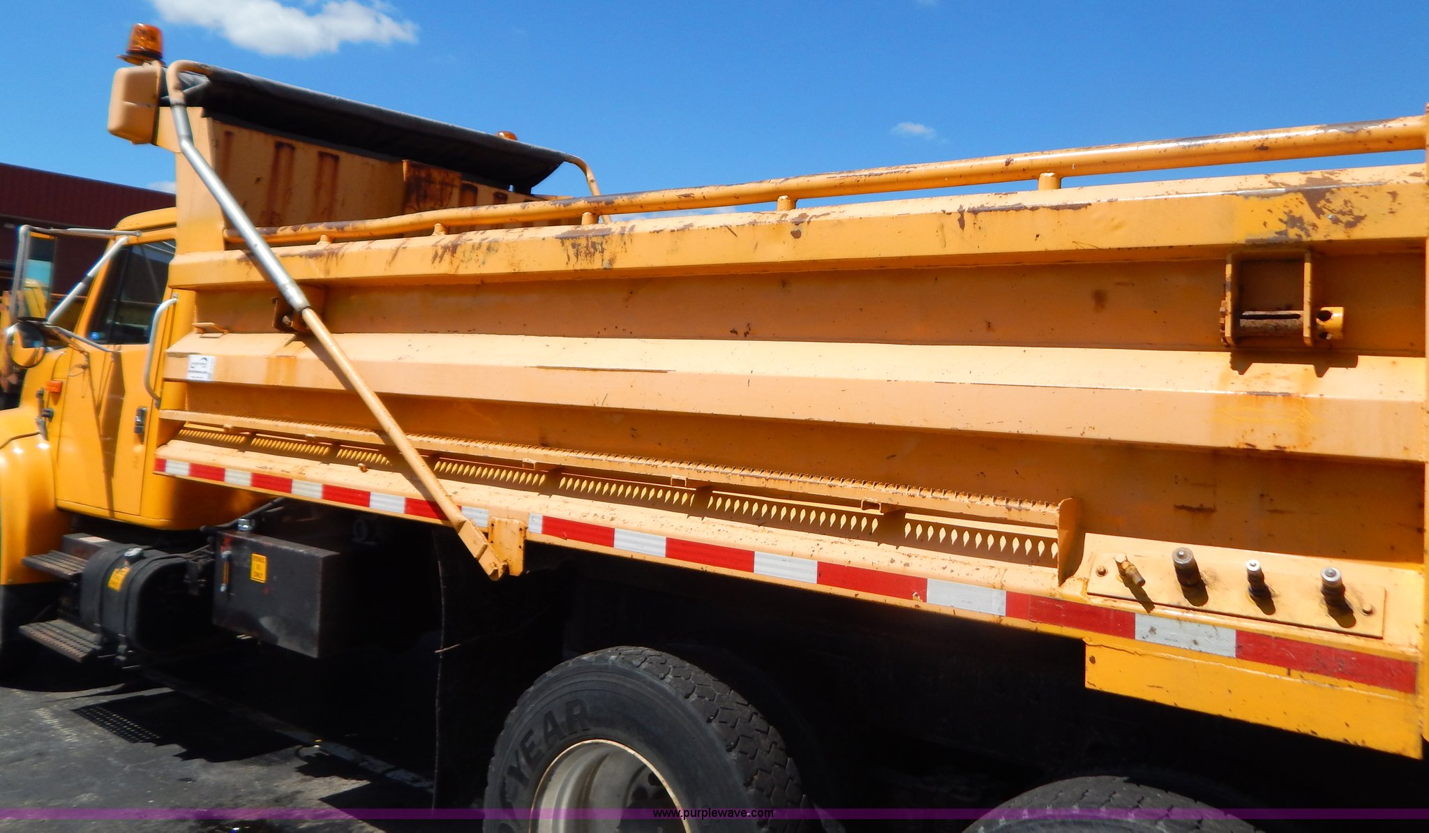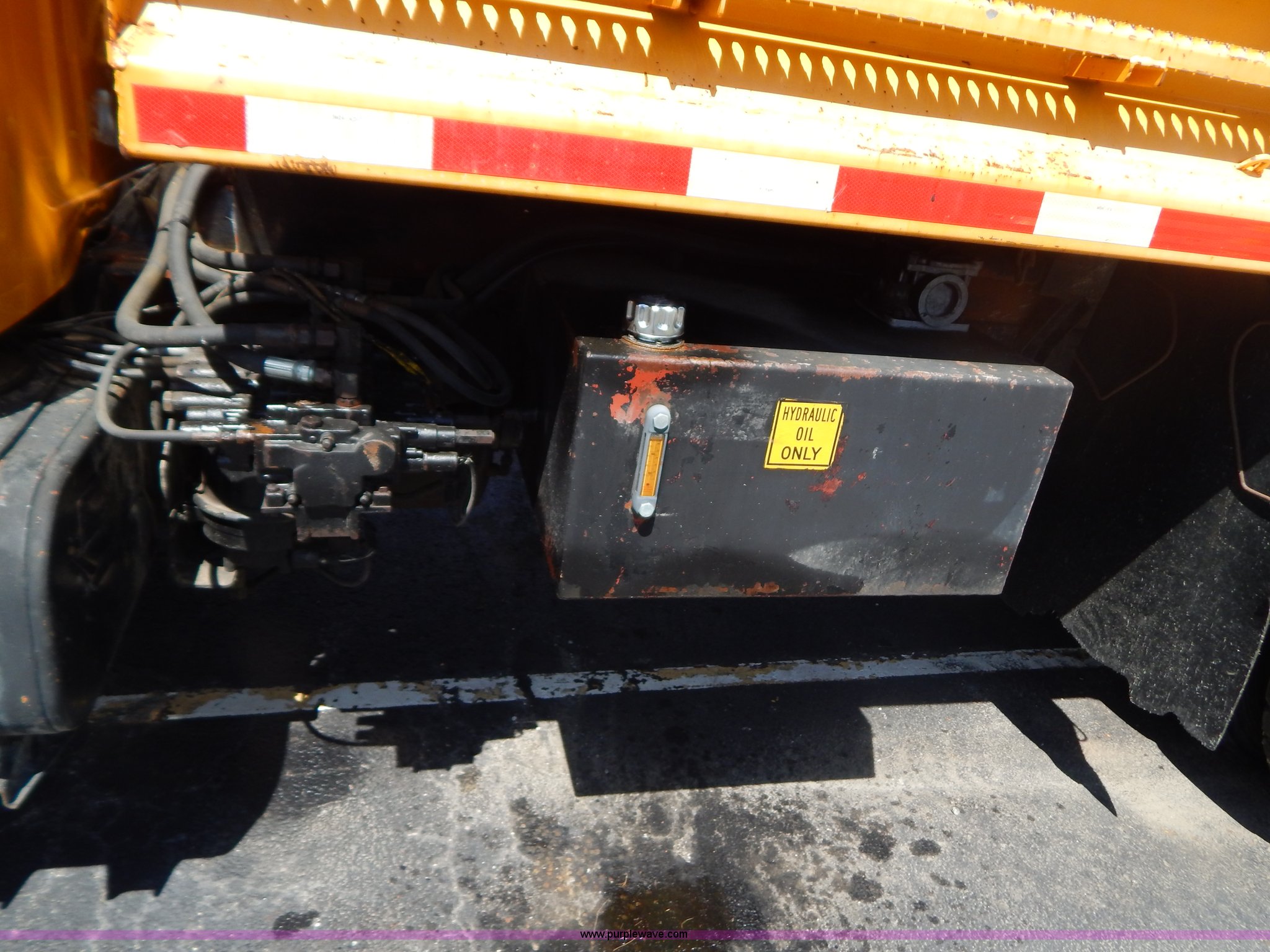 1998 International 4900 tandem axle dump truck. 134,448 miles on odometer, 8,942 hours on meter, International DT530 8.7L L6 diesel engine, Eaton Fuller manual transmission, Heat, Cruise, AM/FM/cassette, Heated mirrors, Manual windows and locks, Front mounted PTO, 16'L x 8'W x 32"H dump bed, Front snow plow hydraulic hook ups, Rear spreader hydraulic hook ups, Air brakes, 206" wheelbase, 11R22.5 tires, Interior/exterior cosmetic damage, Minor engine oil leaks, MoDOT ID 5704. Title distribution may be delayed up to 14 days from verification of funds. 1HTSHADR1WH490915. Missouri Department of Transportation (MODOT). 600 NE Colbern Road. Lee's Summit, MO 64086