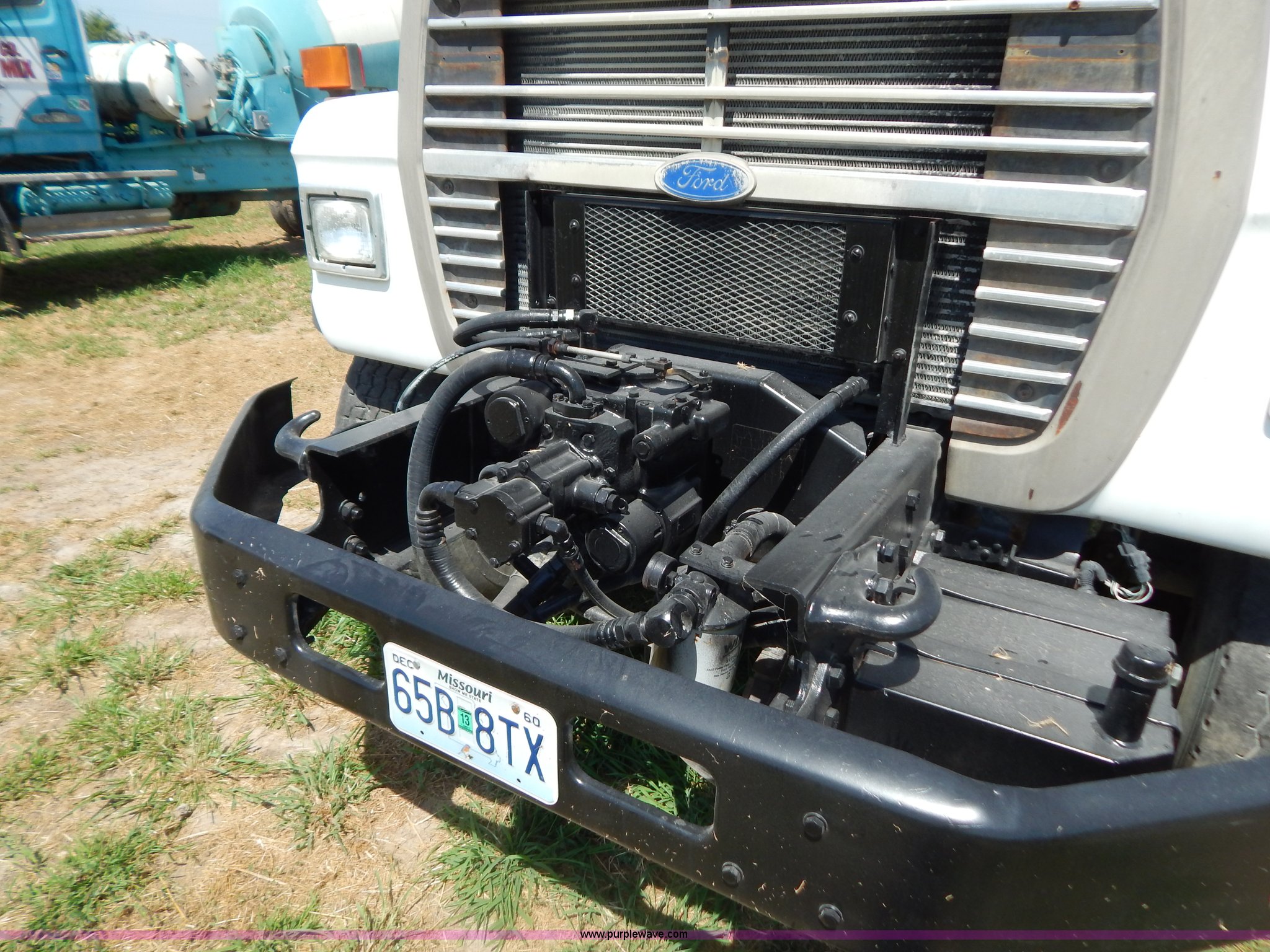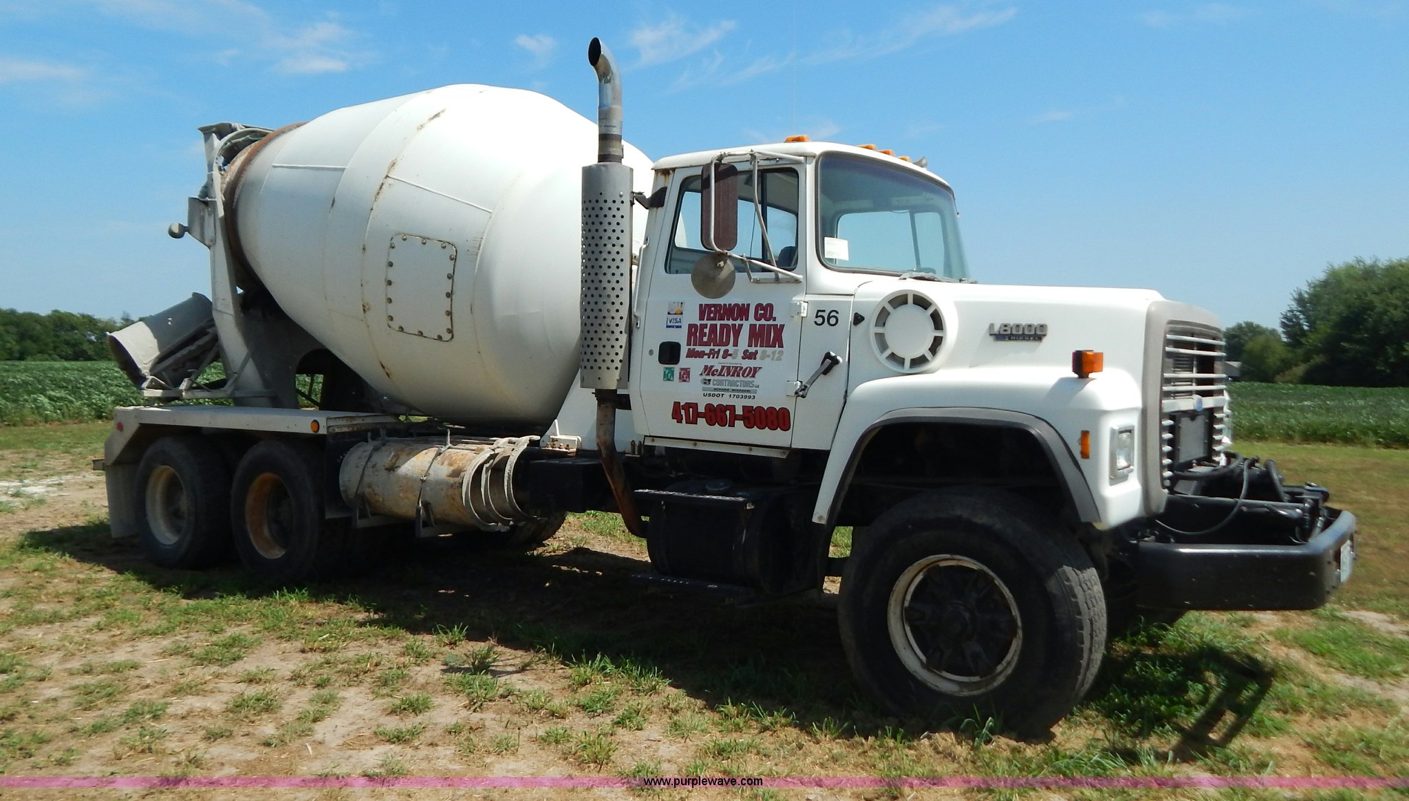 Purple Wave is selling a used Ready Mix or Pump Truck in Missouri. This item is a 1993 Ford LT8000 9 cu. yd. concrete mixer with the following: 126,536 miles on odometer, 9,252 hours on meter, Cummins ISC 8.3L L6 diesel engine, Head gasket blown, Eaton Fuller manual transmission, Air suspension seat, Manual windows and locks, Front mount PTO, Rear tow hooks, Air brakes, 425/65R22.5 front tires, 11R22.5 rear tires, Interior/exterior cosmetic damage
