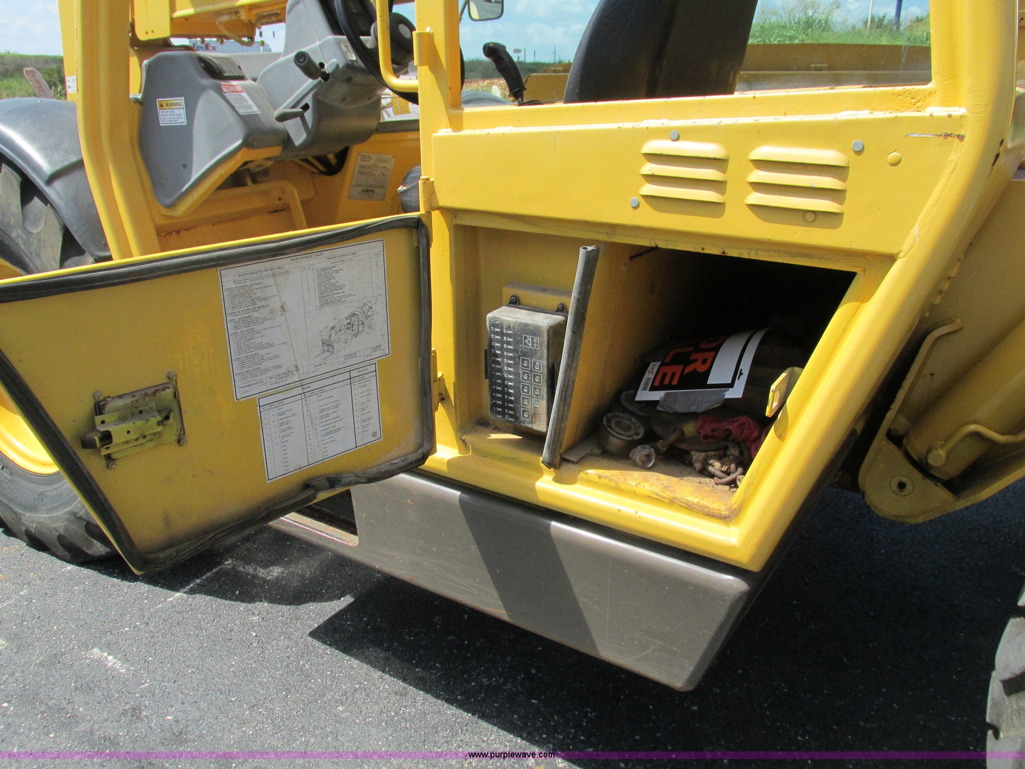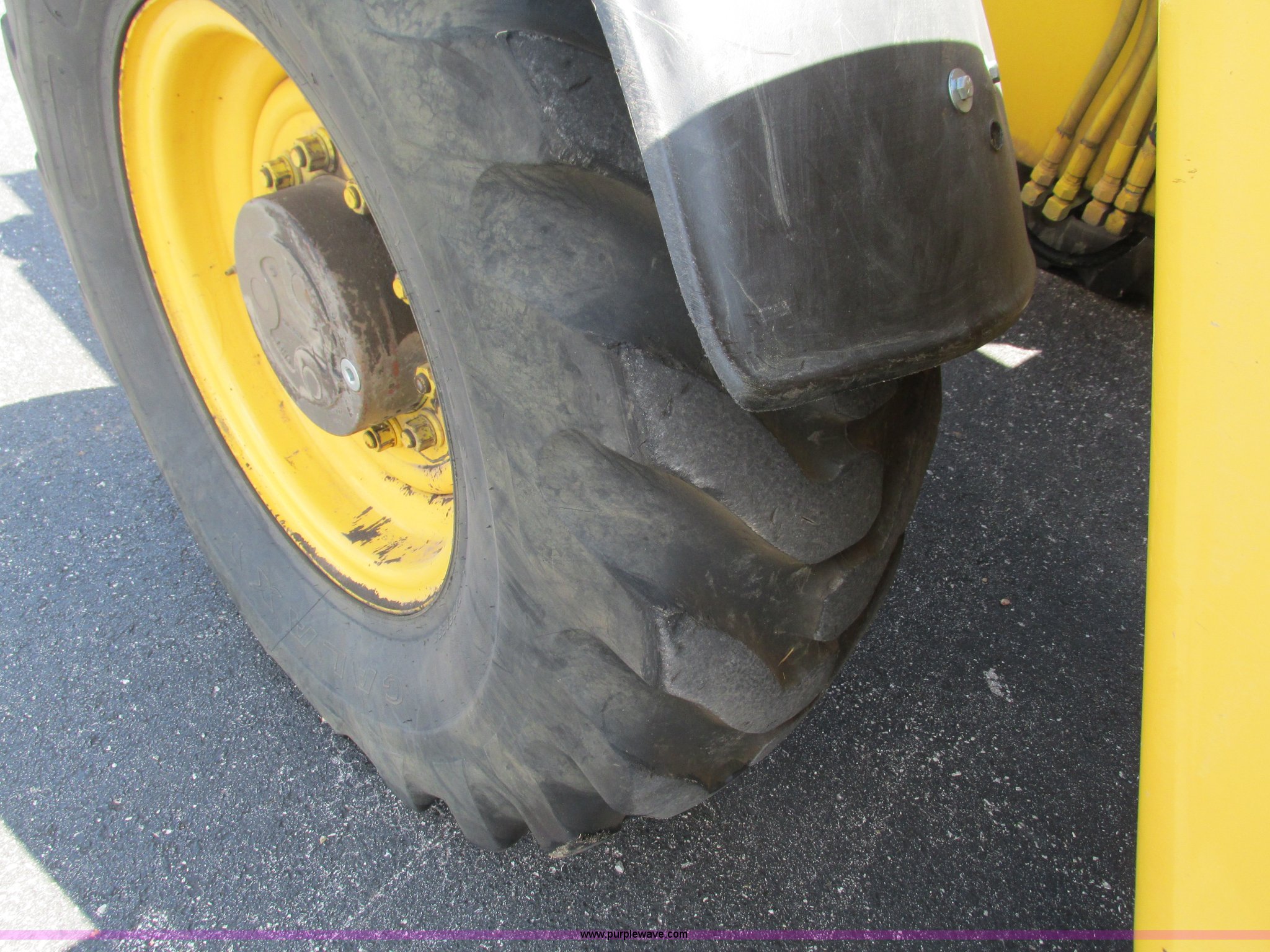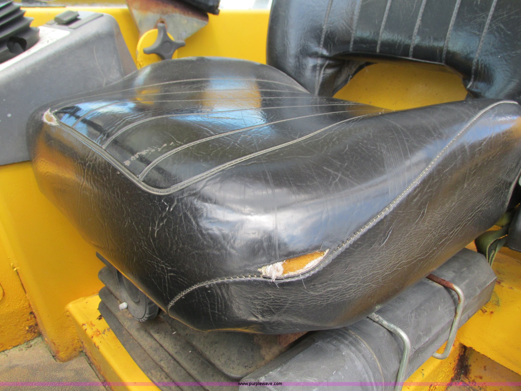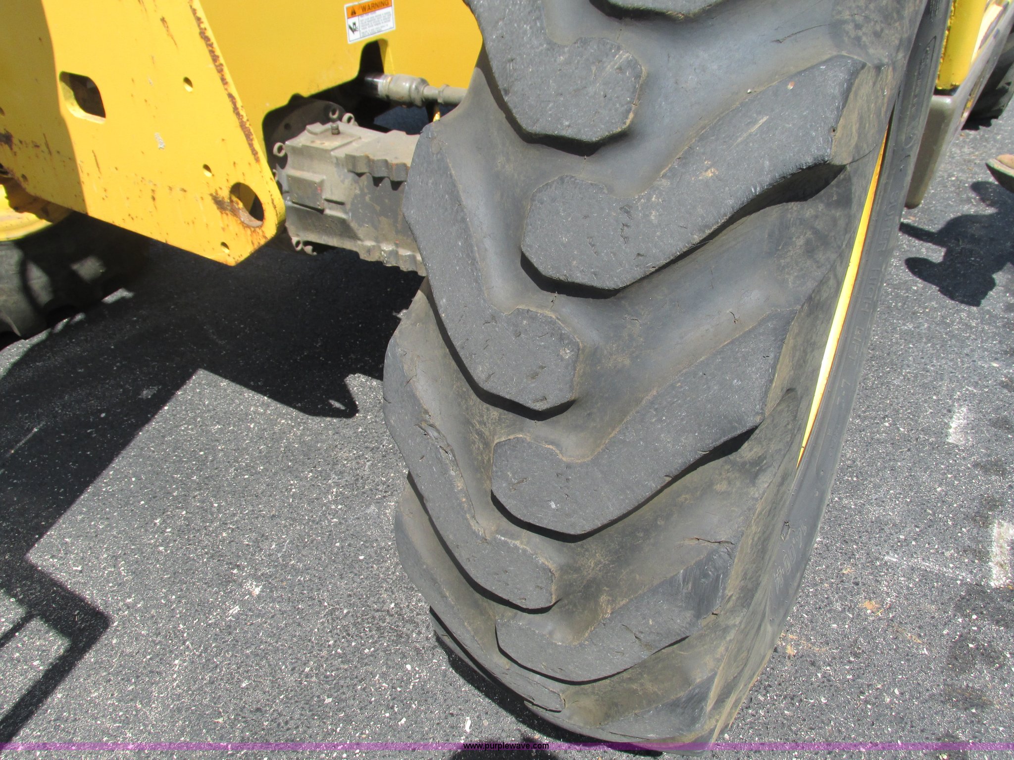 Purple Wave is selling a used Telehandler in Missouri. This item is a Gehl DL6H telehandler with the following: 1,116 hours on meter, John Deere 2115F 4.5L four cylinder diesel engine, Serial T040451798668, Powershift transmission, 4F-1R gears, Four wheel drive, Crab and circle steer, ROPS, Spring seat, Single joystick control, Tilt steering wheel, 6,000 lbs lift capacity, 40'L reach, (3) boom sections, 48"L forks, Manual hydraulic leveling, Manual quick attach, Gehl 8'W bucket, Bolt-on cutting edge, 850 lbs, Serial 6689, Fenders, 14x24 tires, 23,050 lbs. base operating weight, Front end rebuilt two years ago, Front brakes and seals replaced two year ago, Approx. 200 hours ago, Torn seat, Rust damage, Left rear wheel seal leaks, Serial 6H40JQ0320328