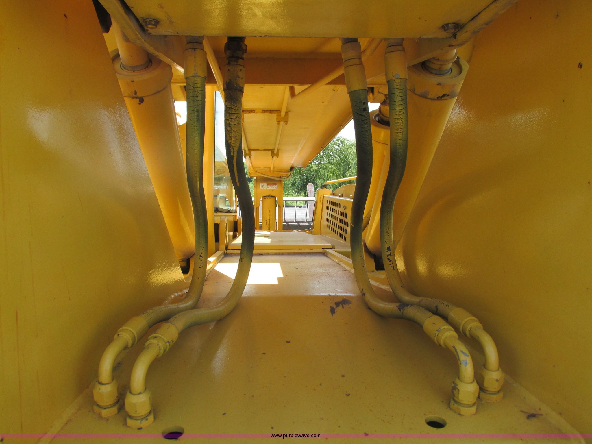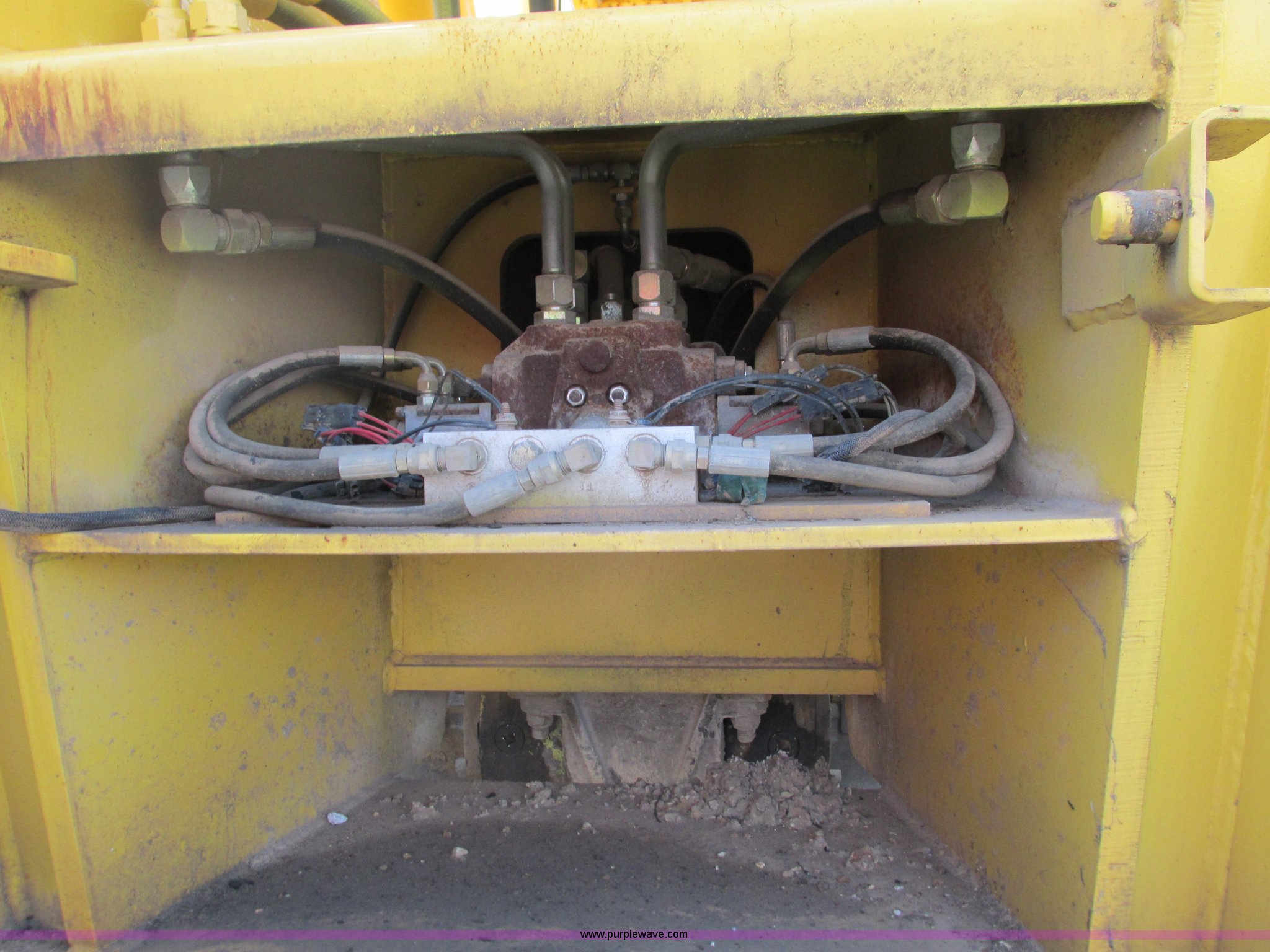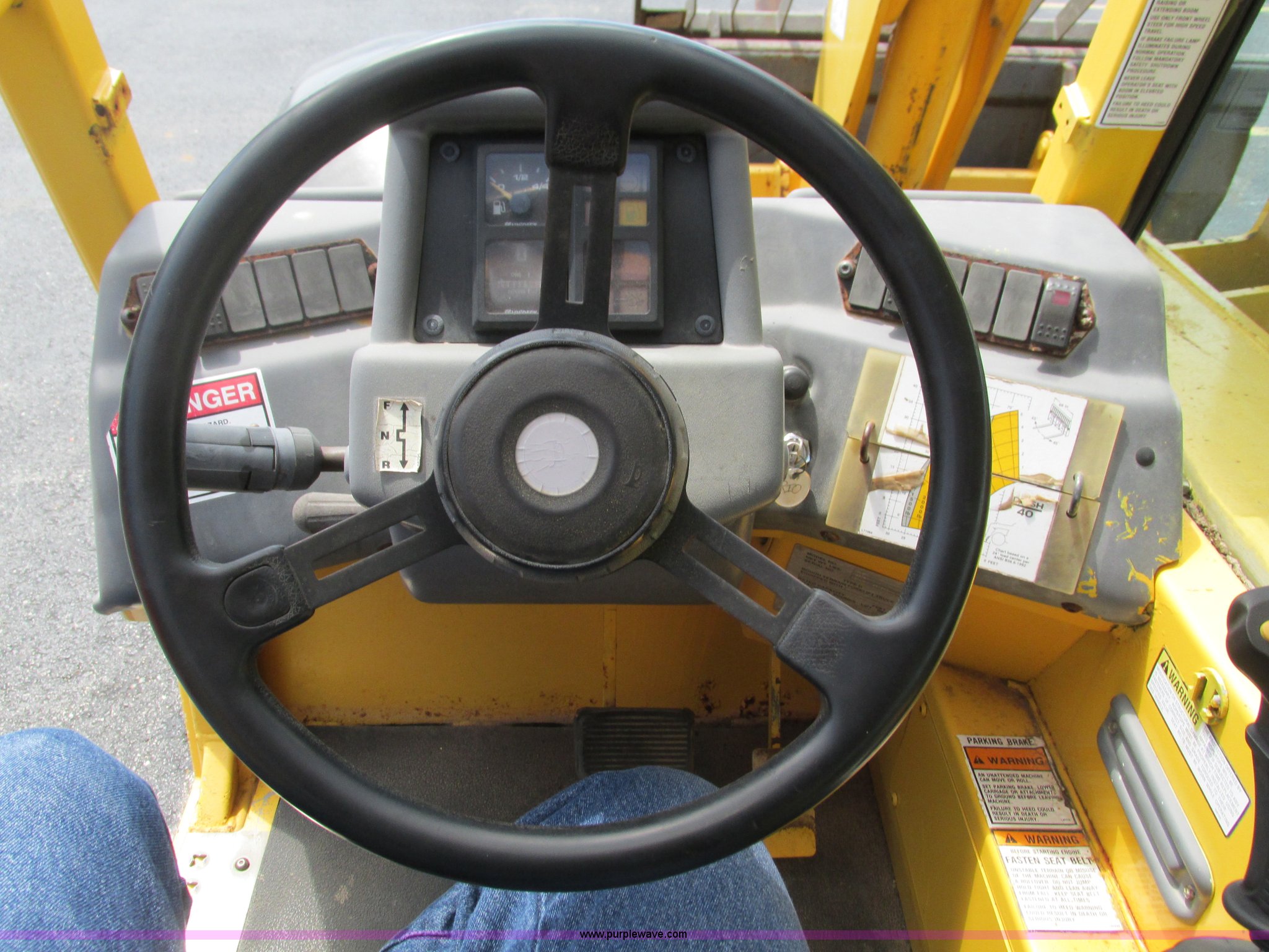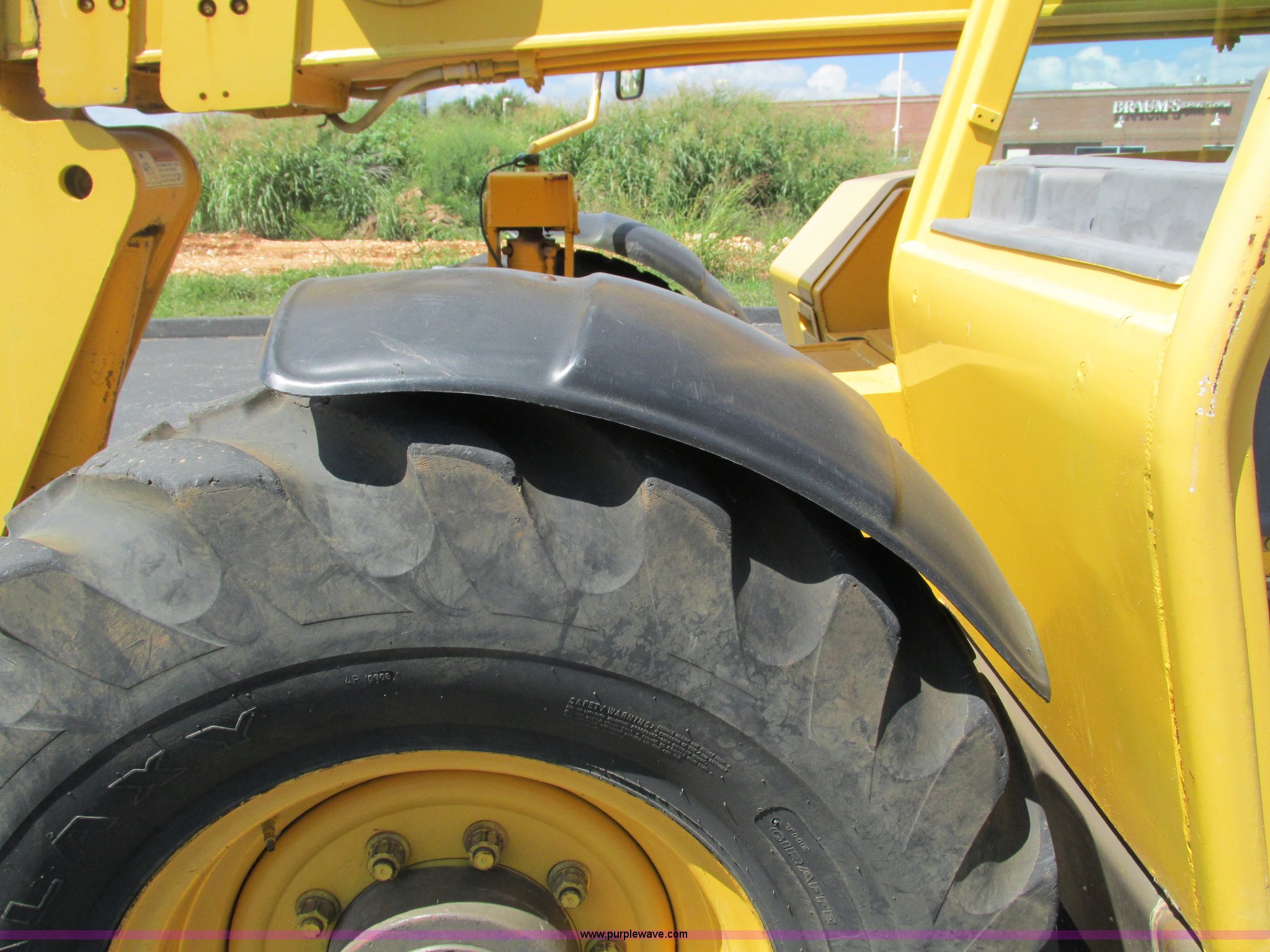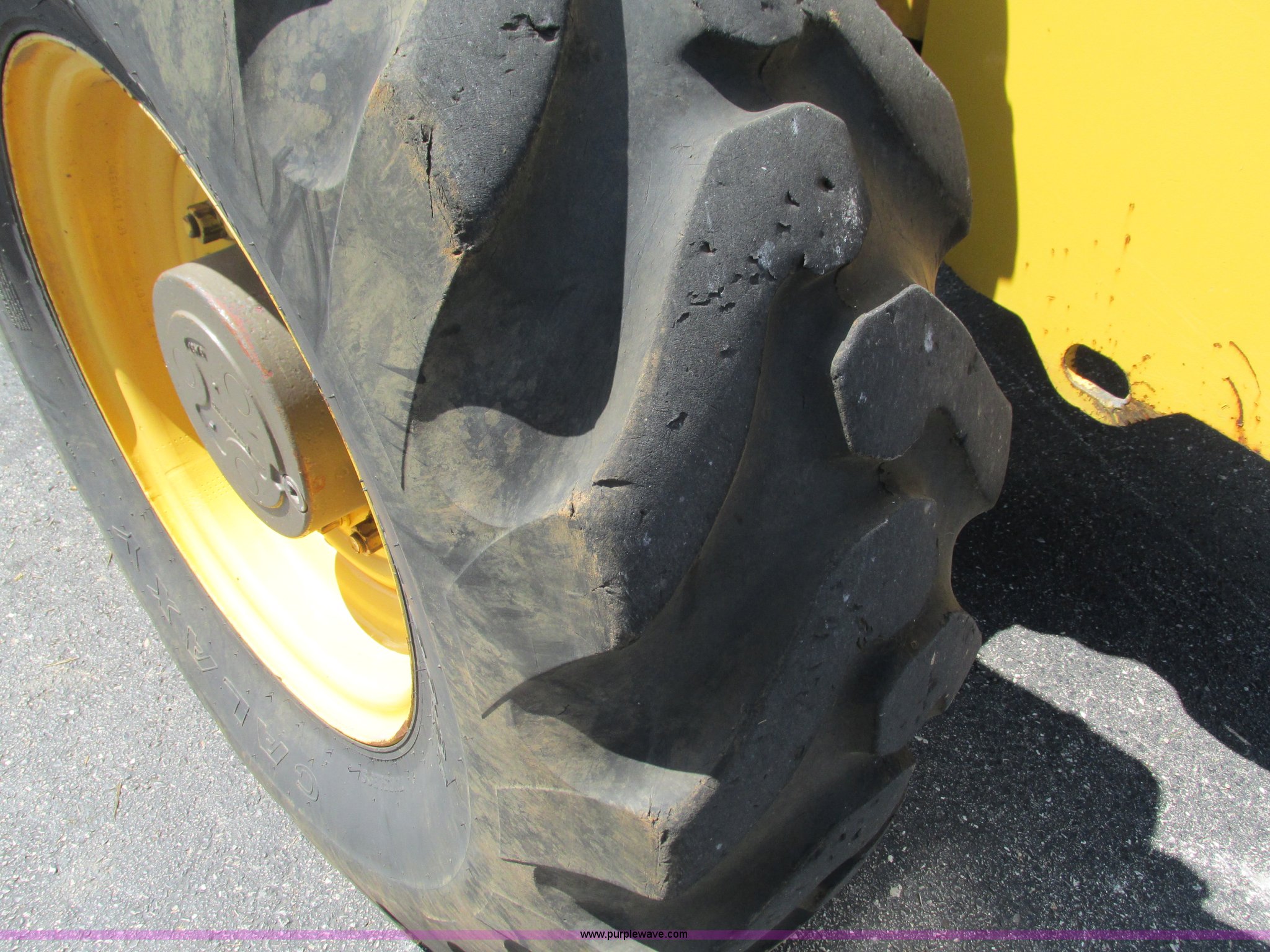 Purple Wave is selling a used Telehandler in Missouri. This item is a Gehl DL6H telehandler with the following: 1,116 hours on meter, John Deere 2115F 4.5L four cylinder diesel engine, Serial T040451798668, Powershift transmission, 4F-1R gears, Four wheel drive, Crab and circle steer, ROPS, Spring seat, Single joystick control, Tilt steering wheel, 6,000 lbs lift capacity, 40'L reach, (3) boom sections, 48"L forks, Manual hydraulic leveling, Manual quick attach, Gehl 8'W bucket, Bolt-on cutting edge, 850 lbs, Serial 6689, Fenders, 14x24 tires, 23,050 lbs. base operating weight, Front end rebuilt two years ago, Front brakes and seals replaced two year ago, Approx. 200 hours ago, Torn seat, Rust damage, Left rear wheel seal leaks, Serial 6H40JQ0320328