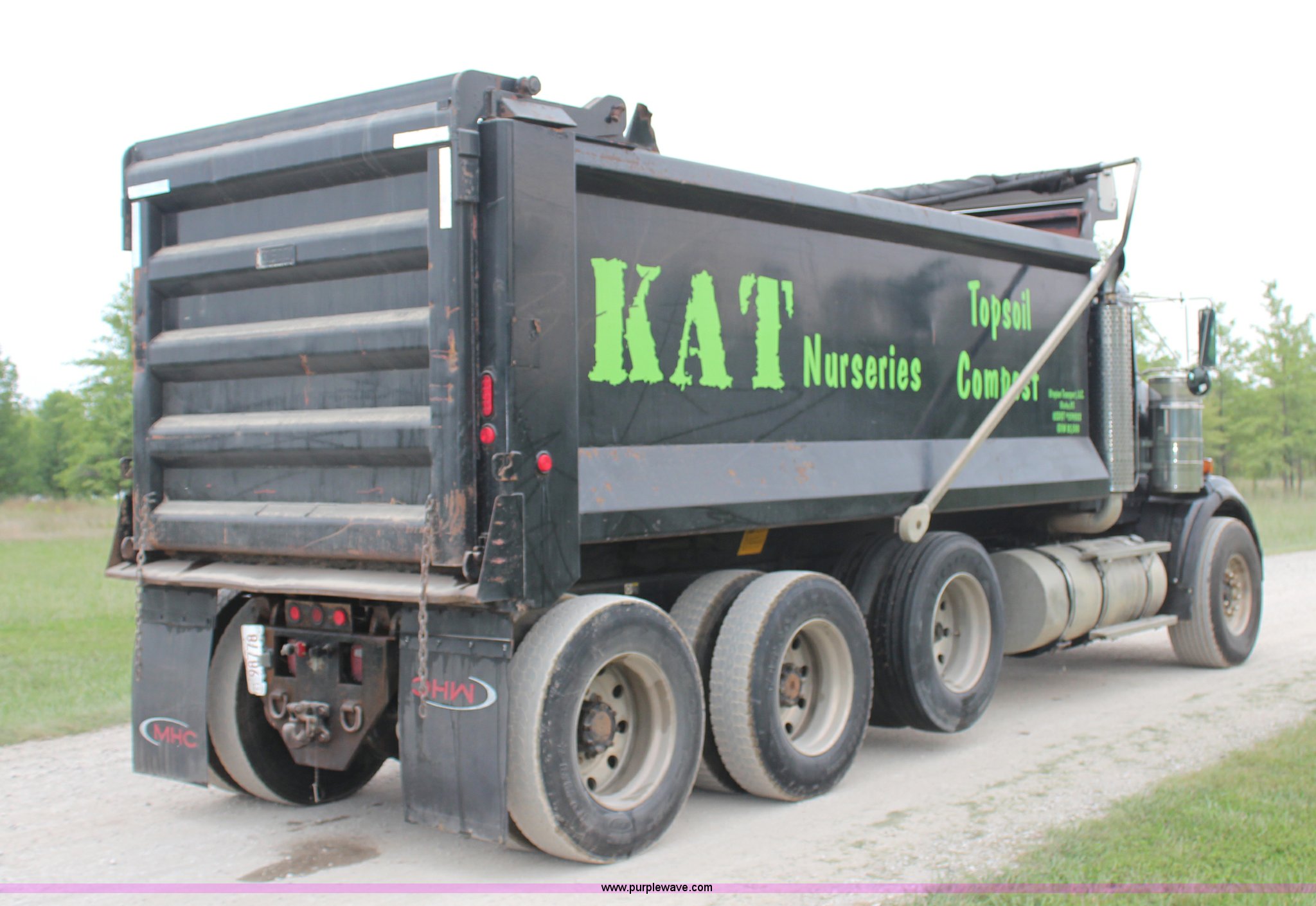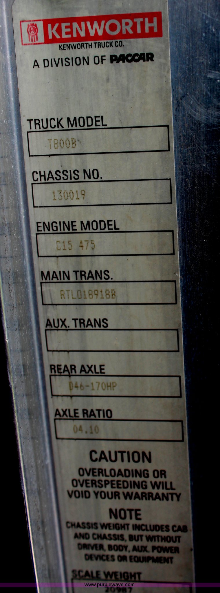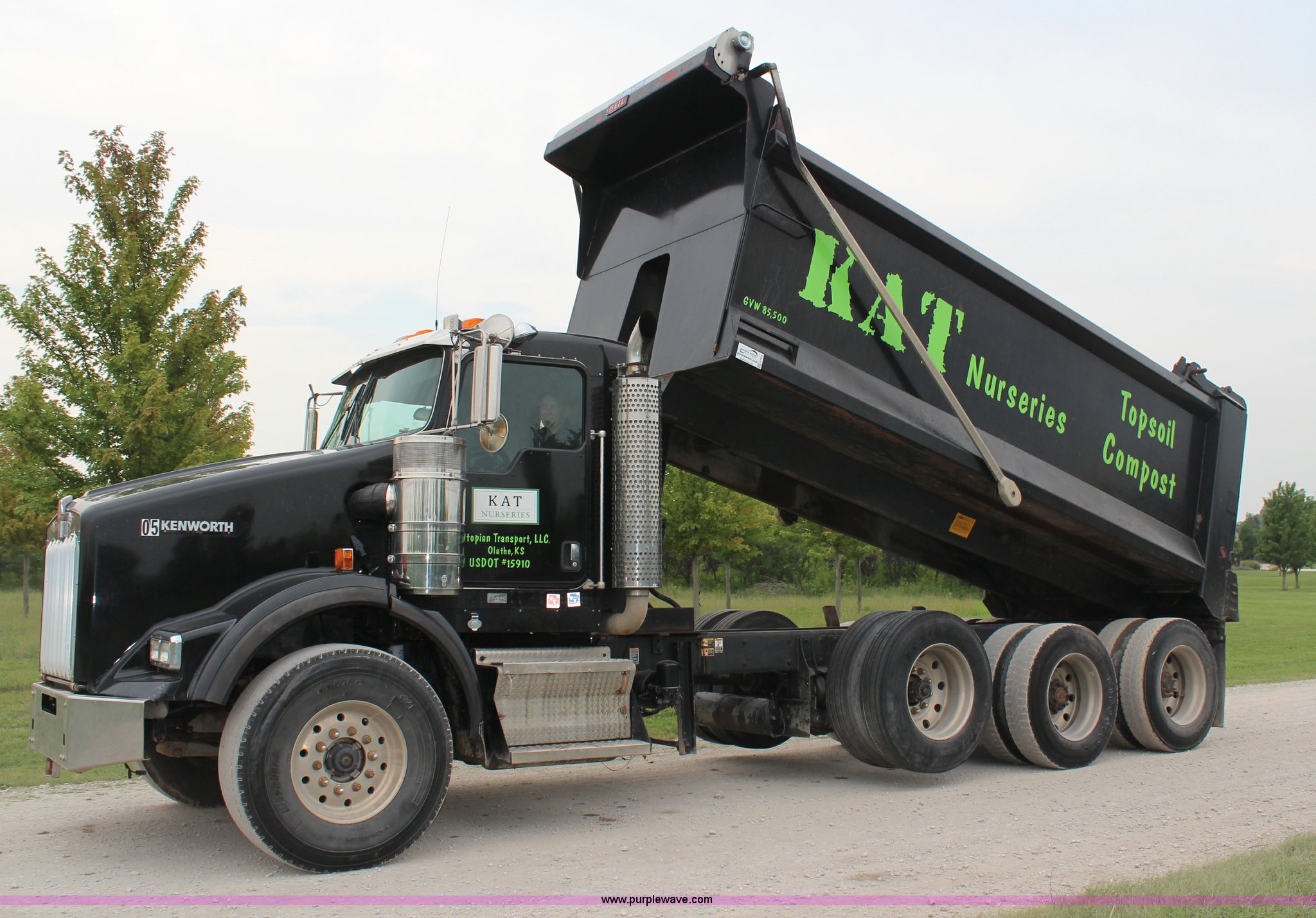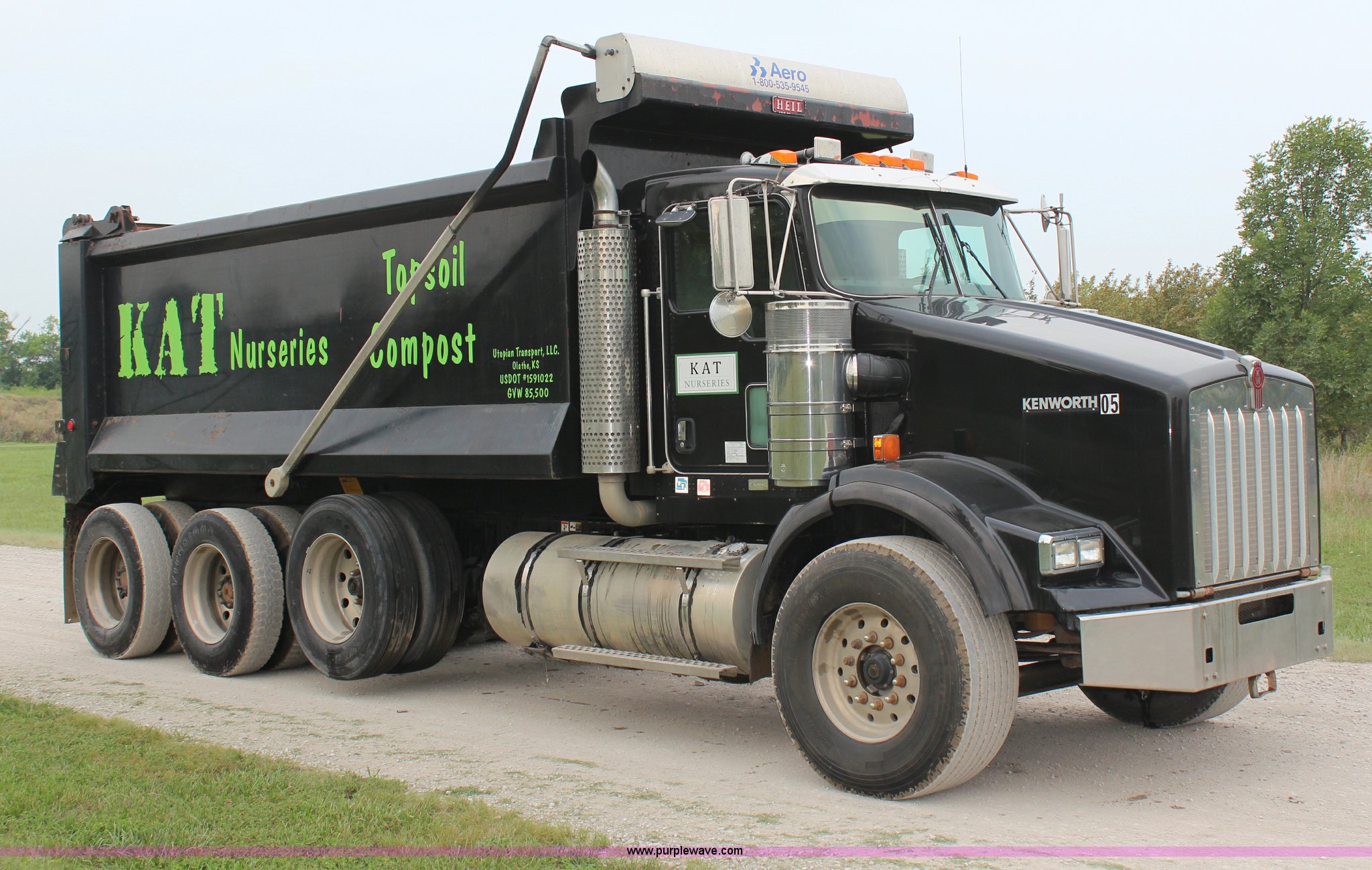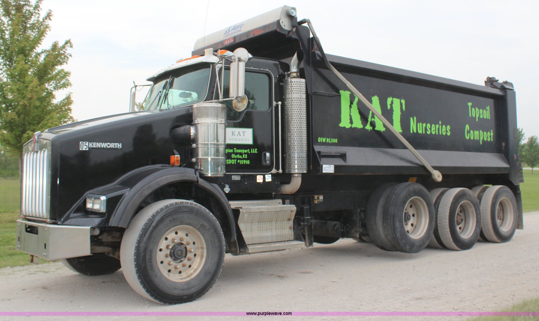 Purple Wave is selling a used Construction Dump Truck in Kansas. This item is a 2006 Kenworth T800B tri-axle dump truck with the following: 189,521 actual miles, Caterpillar C15 14.6L L6 diesel engine, 475 HP, Eaton Fuller 18 speed manual transmission, Twin screw, AC and heat, Tilt, Cruise, AM/FM, Air suspension seat, Air ride cab, Power windows, Heil 18' dump bed, 58"H sides, High lift air end gate, Single ram, Electric tarp, Exterior visor, Chrome bumper, Block heater, Pintle hitch, 150 gallon fuel tank, Rear air hookup, PTO, Monobeam suspension, Air brakes, Jake brake, Brake controller, 4:10 gear ratio, 20,000 lbs pusher axle, Air up/air down, Aluminum wheels, 425/65R22.5 front tires, 11R24.5 rear tires, (4) new tires, FAWR 18,000 lbs, IAWR 23,000 lbs, RAWR 23,000 lbs