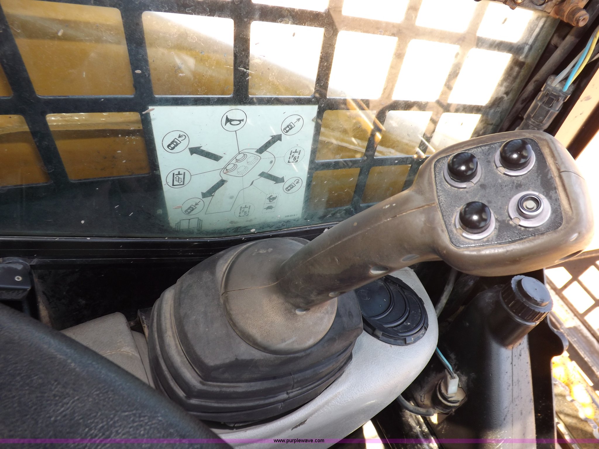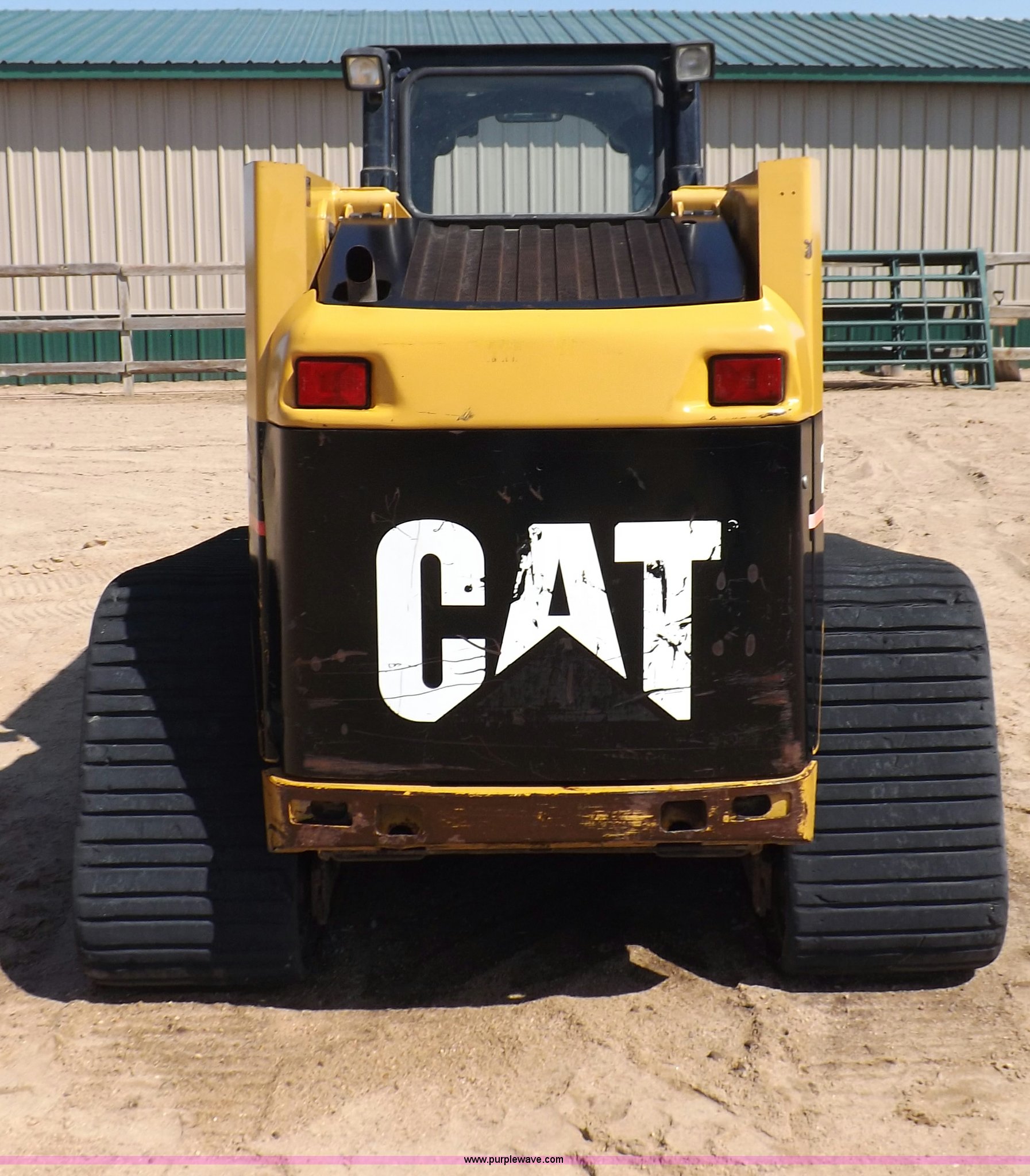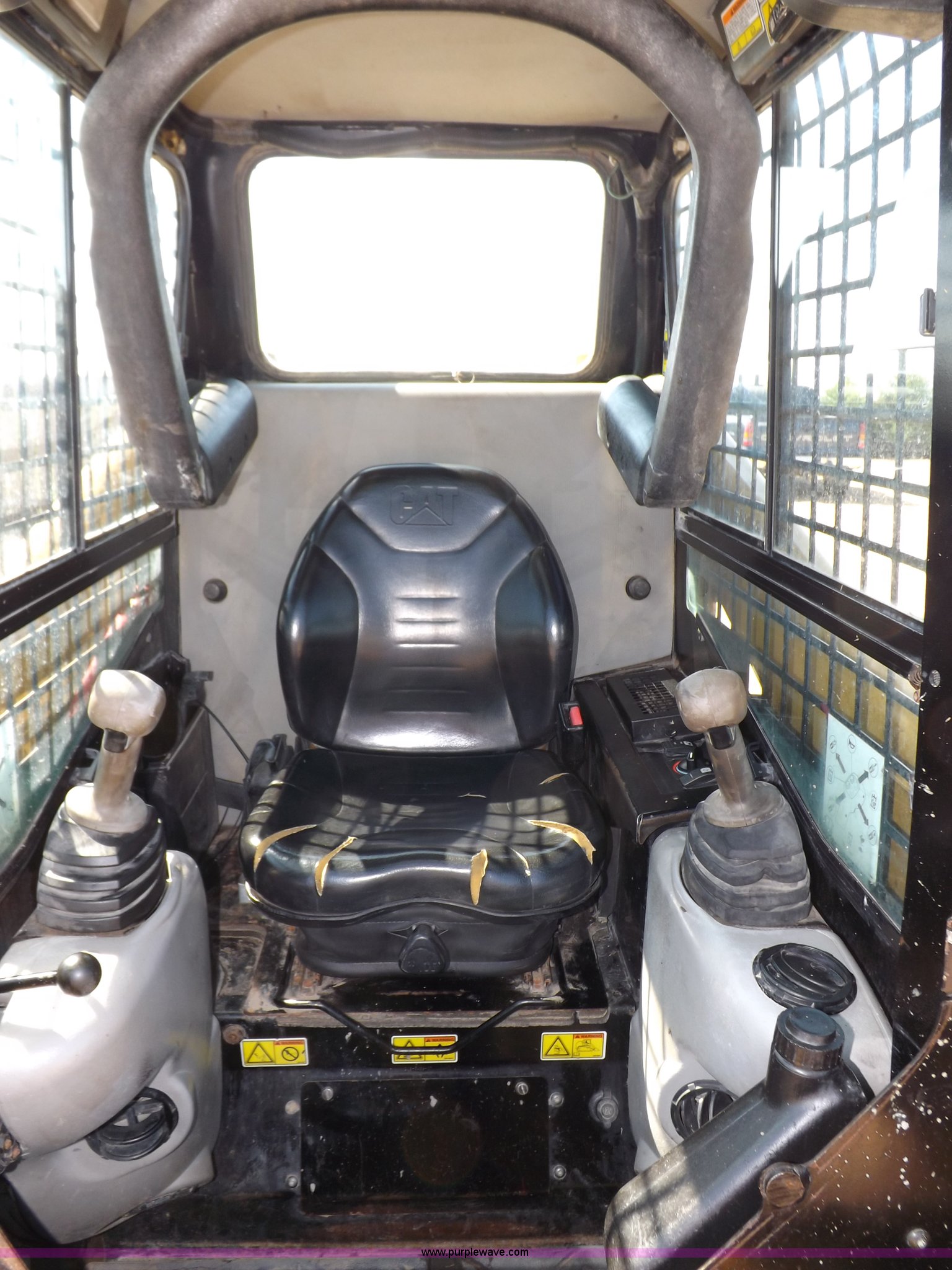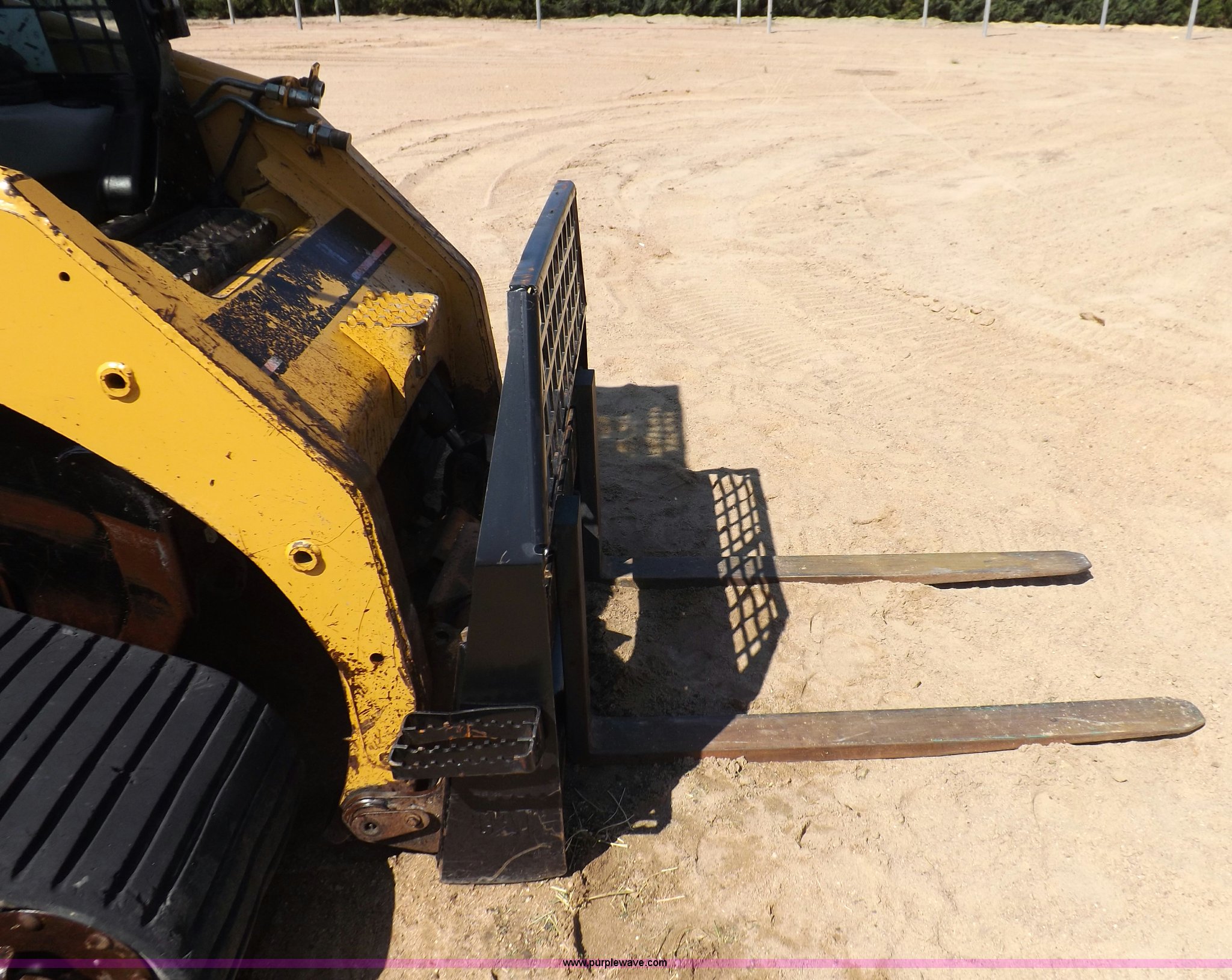Purple Wave is selling a used Tracked Skid Steer Loader in Kansas. This item is a 2005 Caterpillar 277B track skid steer with the following: 2,912 hours on meter, Hour meter replaced at 1,569 hours, Caterpillar 3.3L four cylinder turbo diesel engine, 82 HP, Two speed transmission, Hand and foot throttle, Enclosed cab, AC and heat, GP 6' bucket, Bolt-on cutting edge, 0.48 cu. y.d capacity, Caterpillar 48" forks, Auxiliary hydraulic and electrical couplers, Cab hydraulic attachment change, 3,800 lbs operating capacity, 5,200 lbs tip capacity, (6) bottom rollers, Rubber tracks, Front door with glass and windshield wiper will be installed, Serial CAT0277BCMDH02228