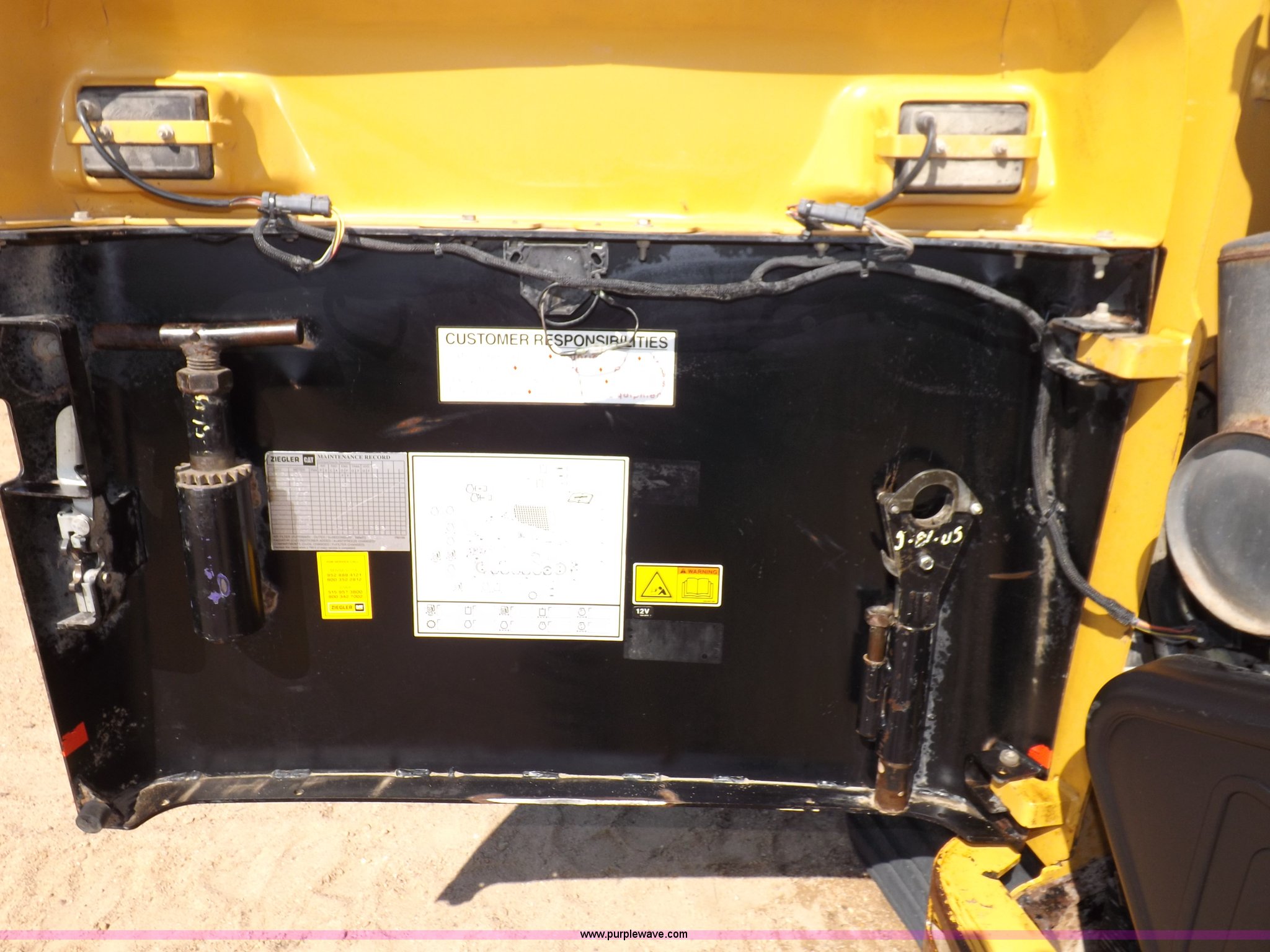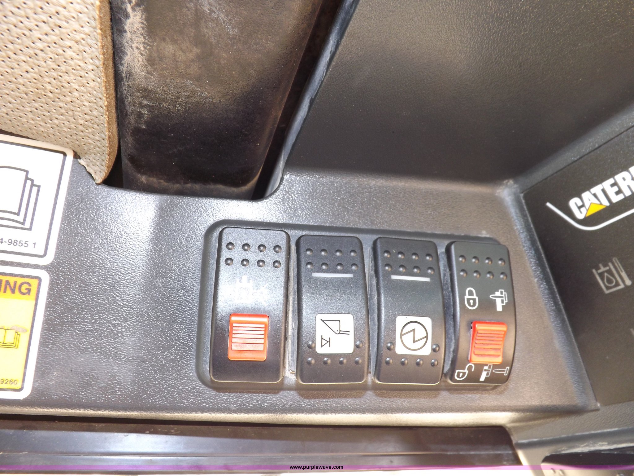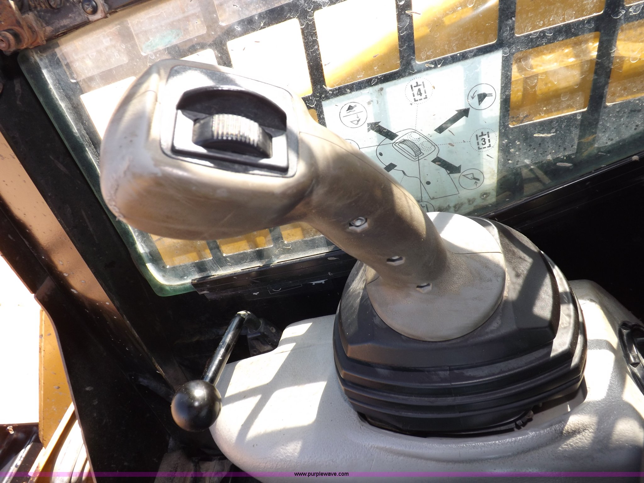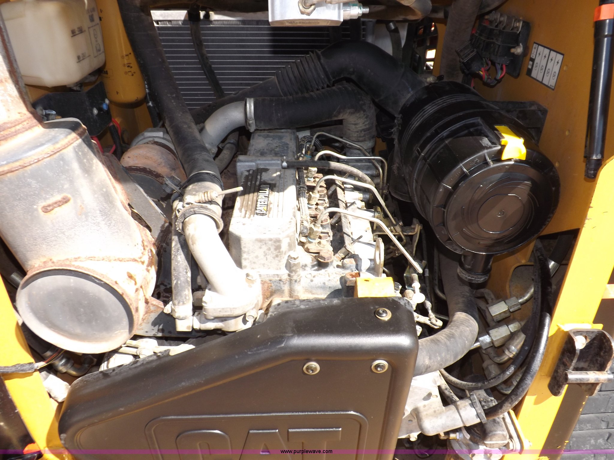 Purple Wave is selling a used Tracked Skid Steer Loader in Kansas. This item is a 2005 Caterpillar 277B track skid steer with the following: 2,912 hours on meter, Hour meter replaced at 1,569 hours, Caterpillar 3.3L four cylinder turbo diesel engine, 82 HP, Two speed transmission, Hand and foot throttle, Enclosed cab, AC and heat, GP 6' bucket, Bolt-on cutting edge, 0.48 cu. y.d capacity, Caterpillar 48" forks, Auxiliary hydraulic and electrical couplers, Cab hydraulic attachment change, 3,800 lbs operating capacity, 5,200 lbs tip capacity, (6) bottom rollers, Rubber tracks, Front door with glass and windshield wiper will be installed, Serial CAT0277BCMDH02228