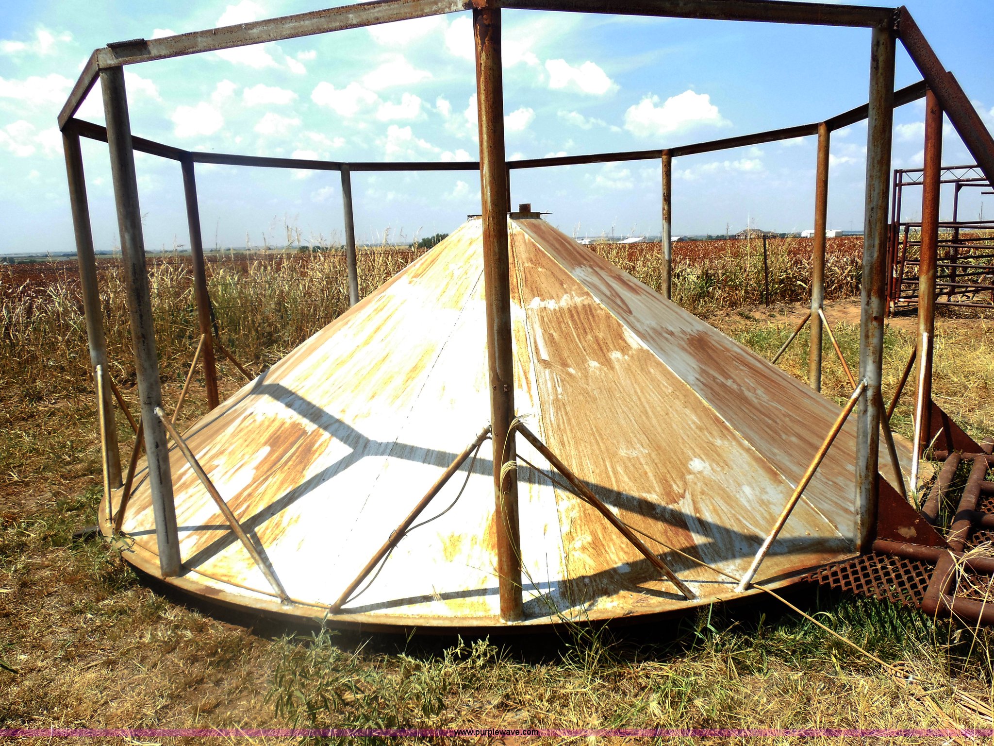 Purple Wave is selling a used Other Grain or Fertilizer Handling in Oklahoma. This item is a Custom built grain bin hopper bottom with the following: 15'W diameter, Stored upside down to keep it from holding water