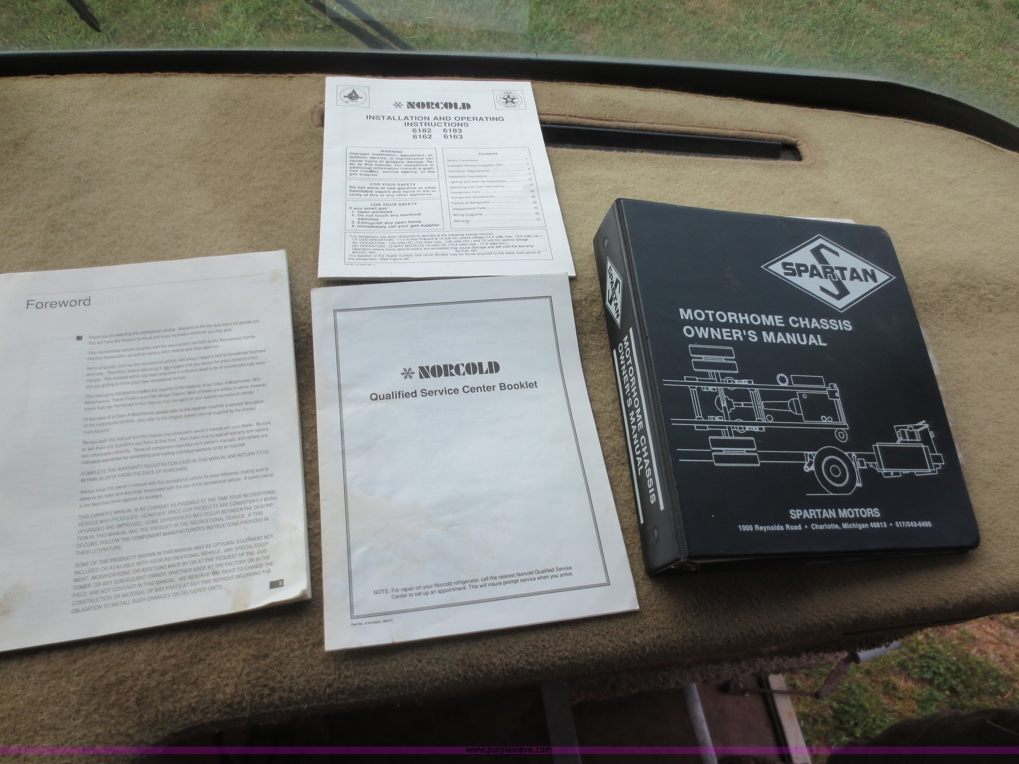 1993 Rockwood Embassy Series A6322 recreational vehicle. 97,011 miles on odometer, Miles will vary, unit is still in use, Cummins 5.9L Pusher diesel engine, Six speed transmission, AC and heat, Tilt, Cruise, AM/FM, Power mirrors, Pleather seats, Interior remodeled in 2008, Bedroom Bed, Recently replaced king size memory foam mattress Bedding not included, Cabinets Carpet, Kitchen Stove , Sink, Table with chairs, Microwave, Cabinets, Norcold refrigerator/freezer Will run on propane or electric, Vinyl flooring, Bathroom Shower , Sink, Toilet, (2) solar panels, Couch with recliners, Sanya DVD player, RCA 14" television, KG rear vision camera, Awning, On-board propane system, Water heater, Hydraulic jacks, Receiver hitch, Trailer wiring, 8R19.5 tires, Recently replaced front tires, Roof replaced in 2012, No generator included Space available, Engine located in rear compartment. 4S7PT9J10PC008429. 23593 Thomas Road. Chanute, KS 66720