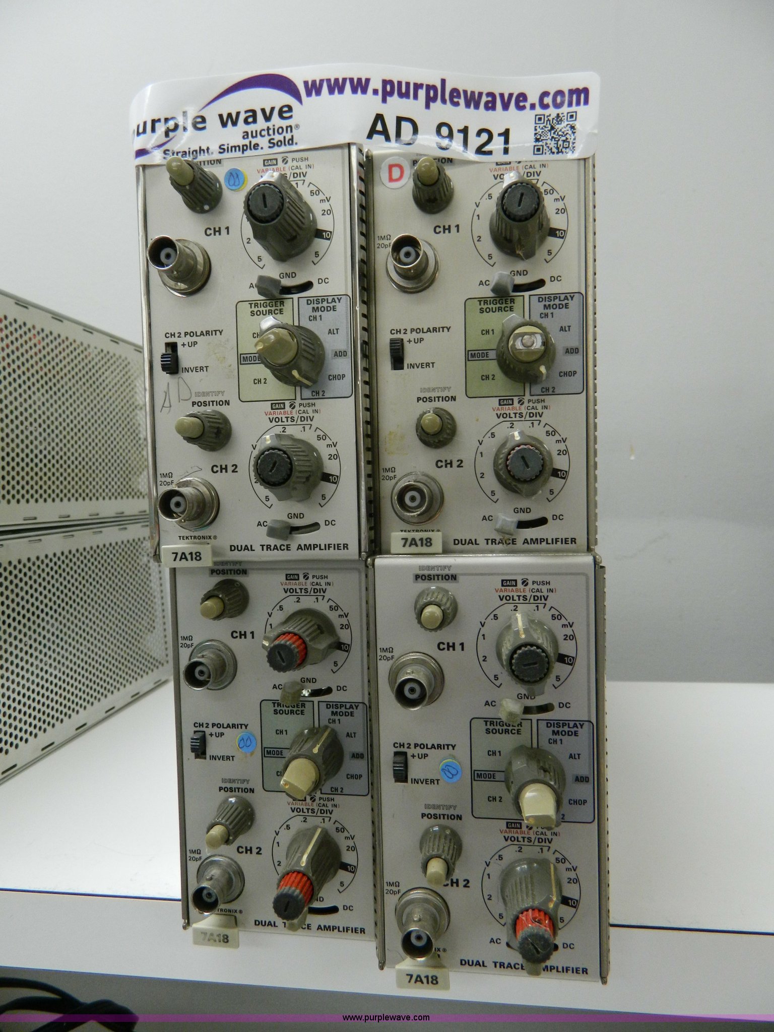Purple Wave is selling a used Electronics in Kansas. This item is a (4) Tektronix 7A18 amps with the following: (4) Tektronix 7A18 amps. Representative photo. KSU Salina. 2310 Centennial . Salina, KS 67401