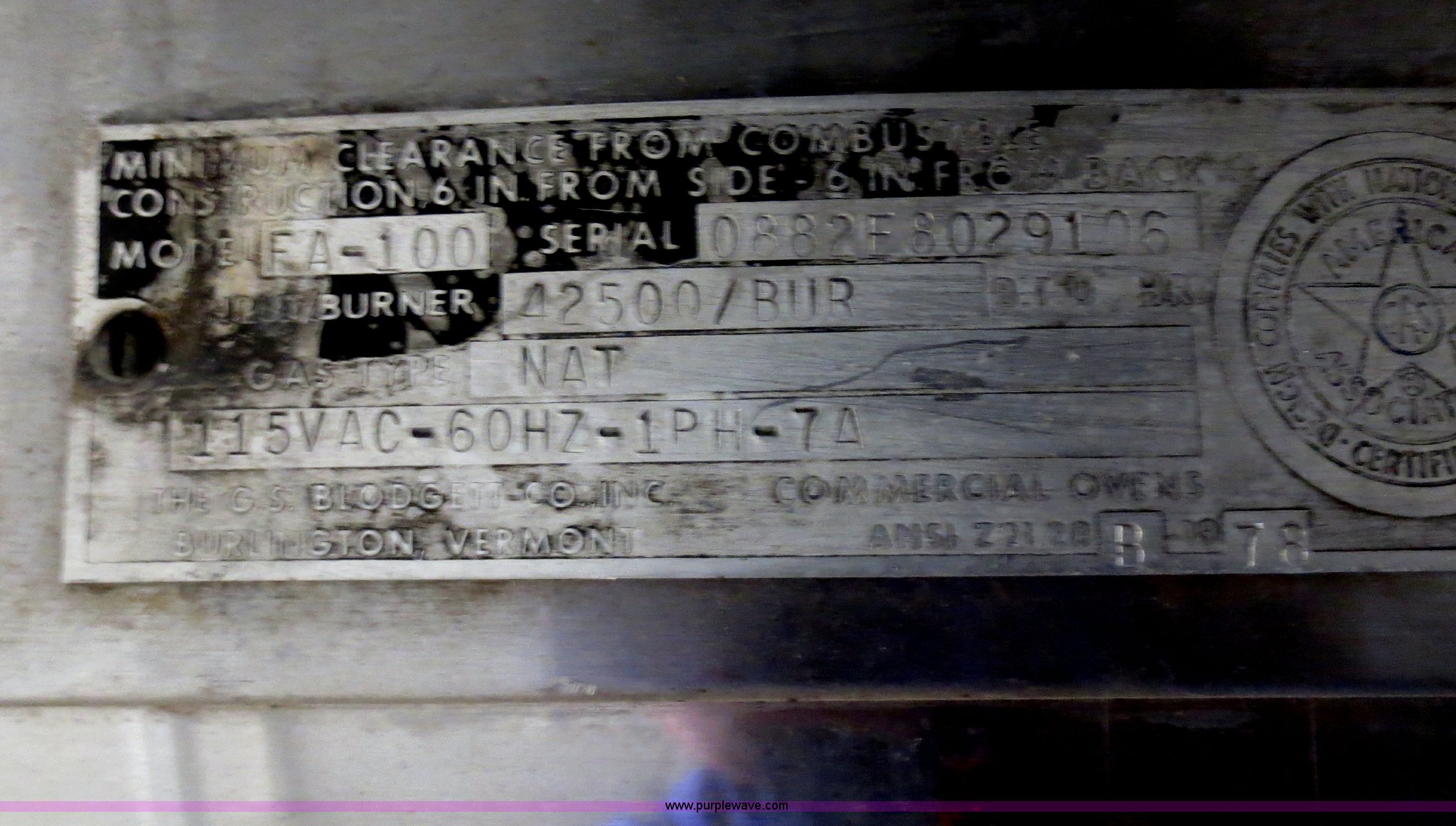Purple Wave is selling a used Restaurant Equip. in Kansas. This item is a Blodgett convection oven with the following: Natural gas operation, 4' x 2' table top grill, Natural gas operation