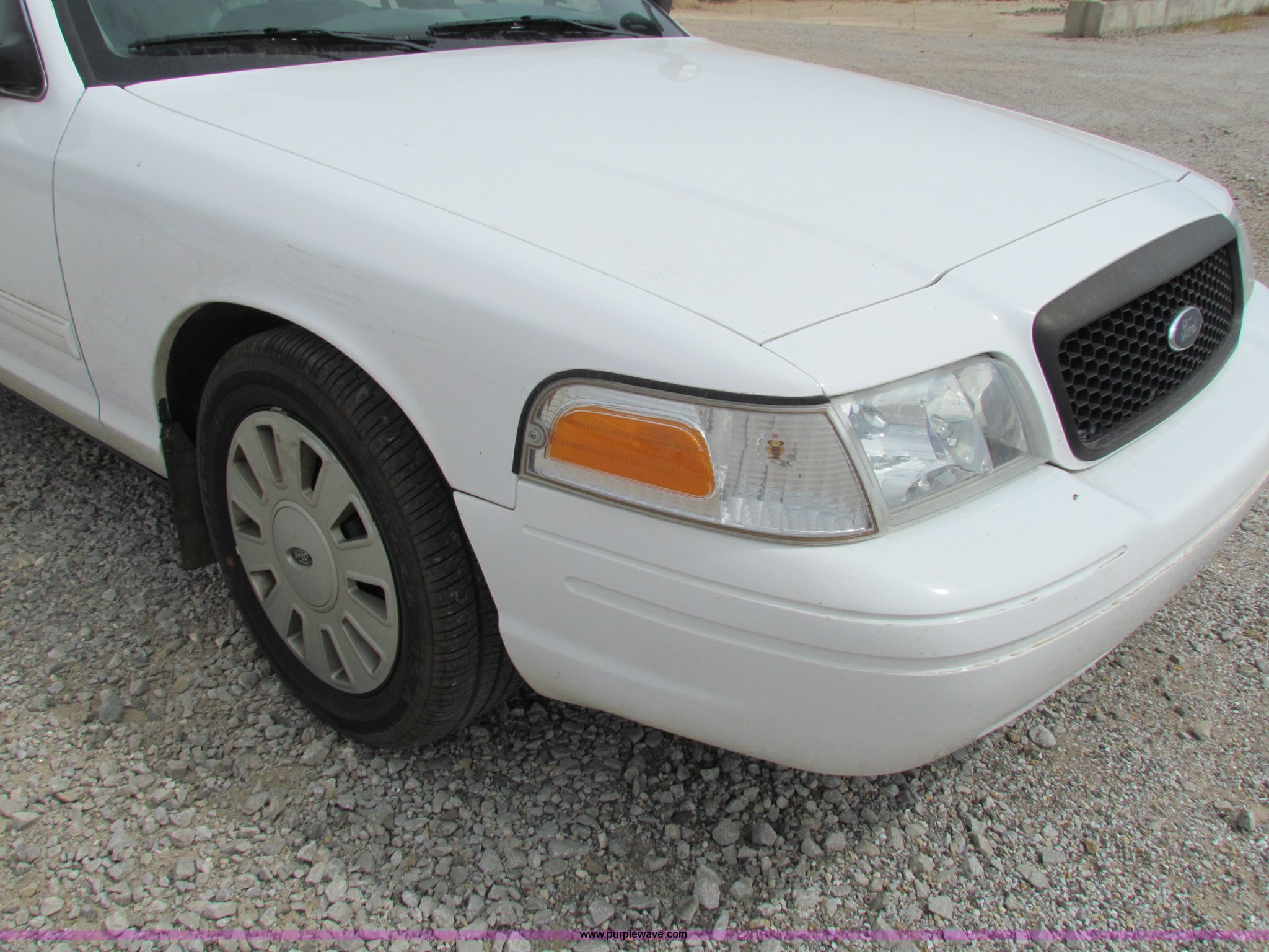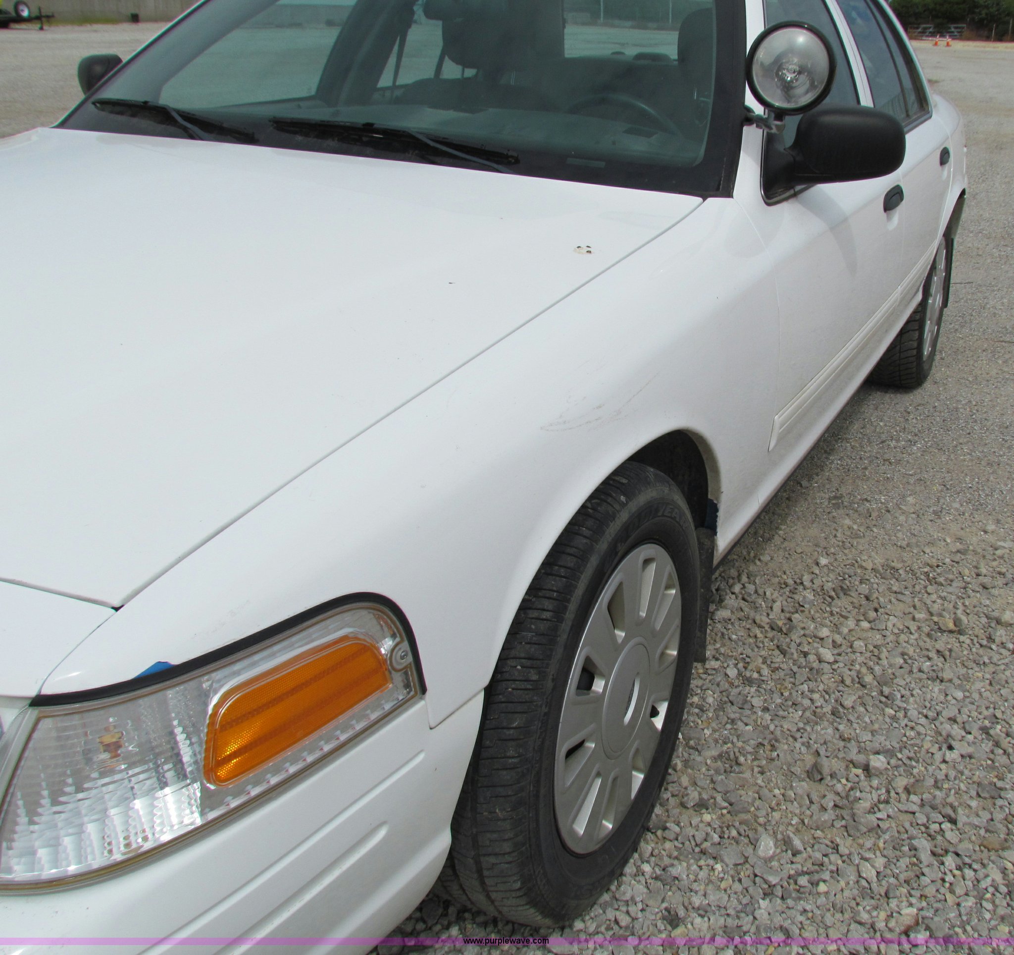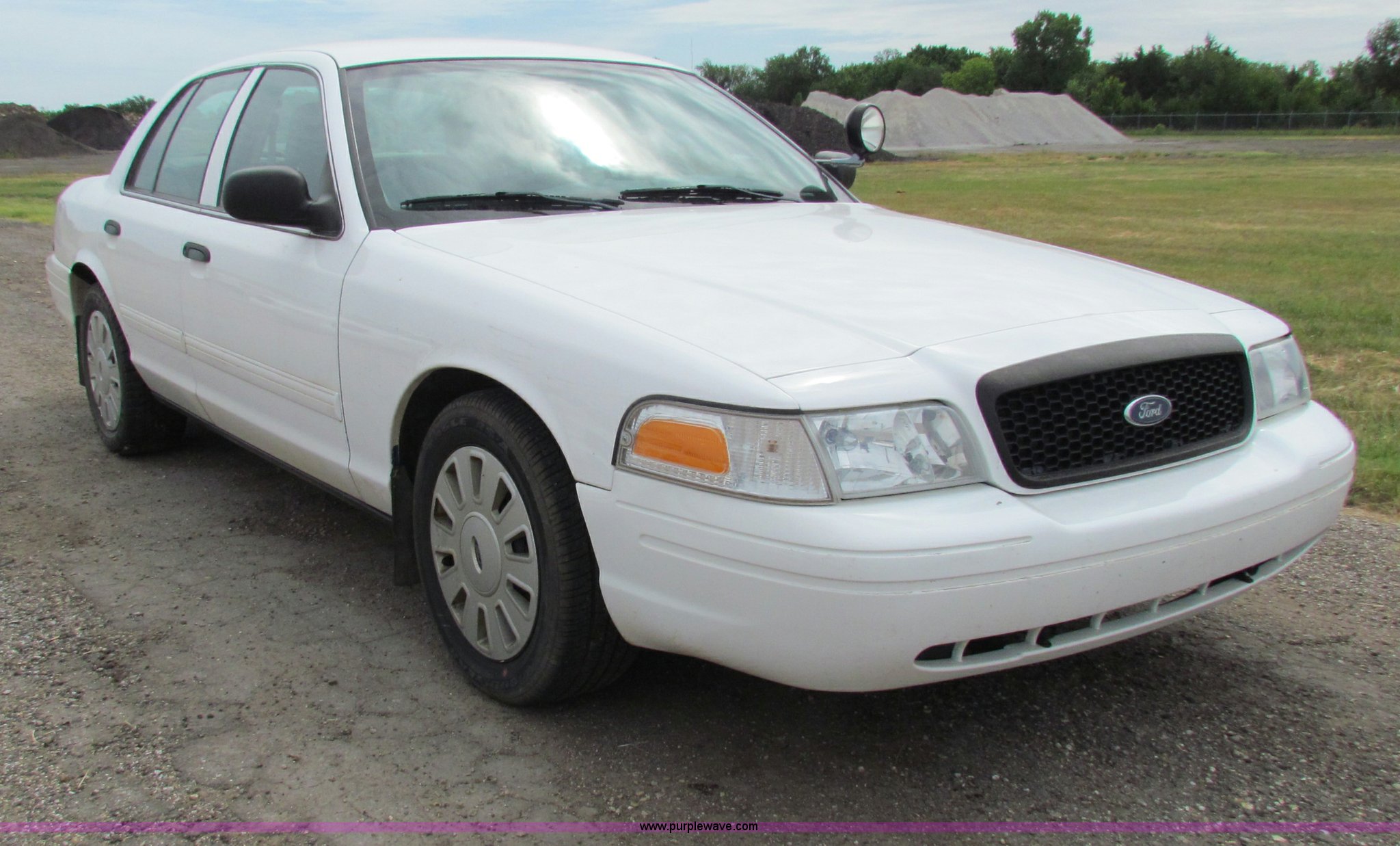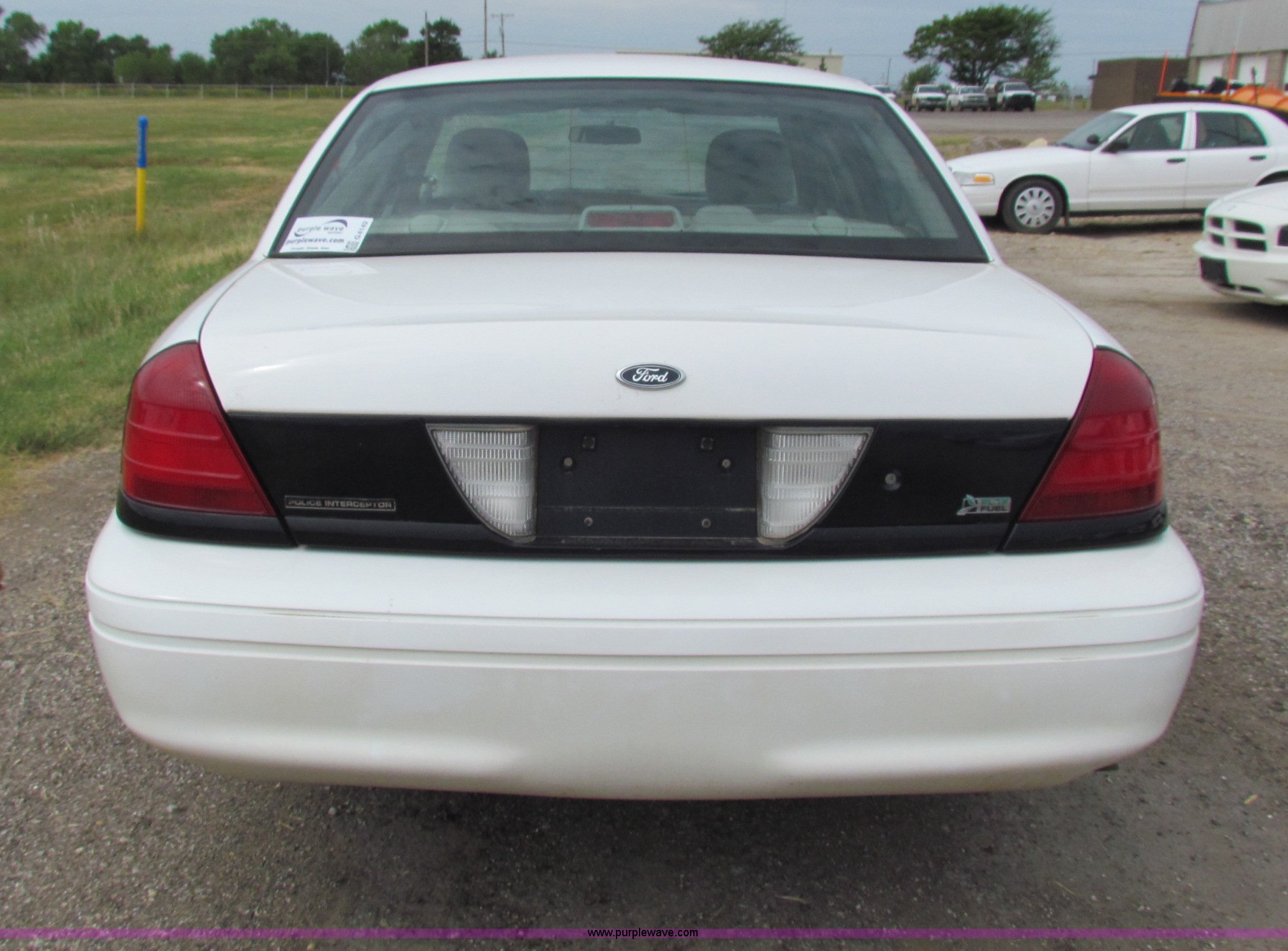Purple Wave is selling a used Passenger Vehicle in Kansas. This item is a 2009 Ford Crown Victoria Police Interceptor with the following: 79,990 miles on odometer, 4.6L V8 SOHC 16V FFV gas engine, Automatic transmission, AC and heat, Tilt, AM/FM, Power windows, locks, mirrors, and seats, Cloth front interior, Vinyl rear interior, Spotlight, Roof top port holes, 235/55R17 tires, Interior/exterior cosmetic damage, Warning light on in dash