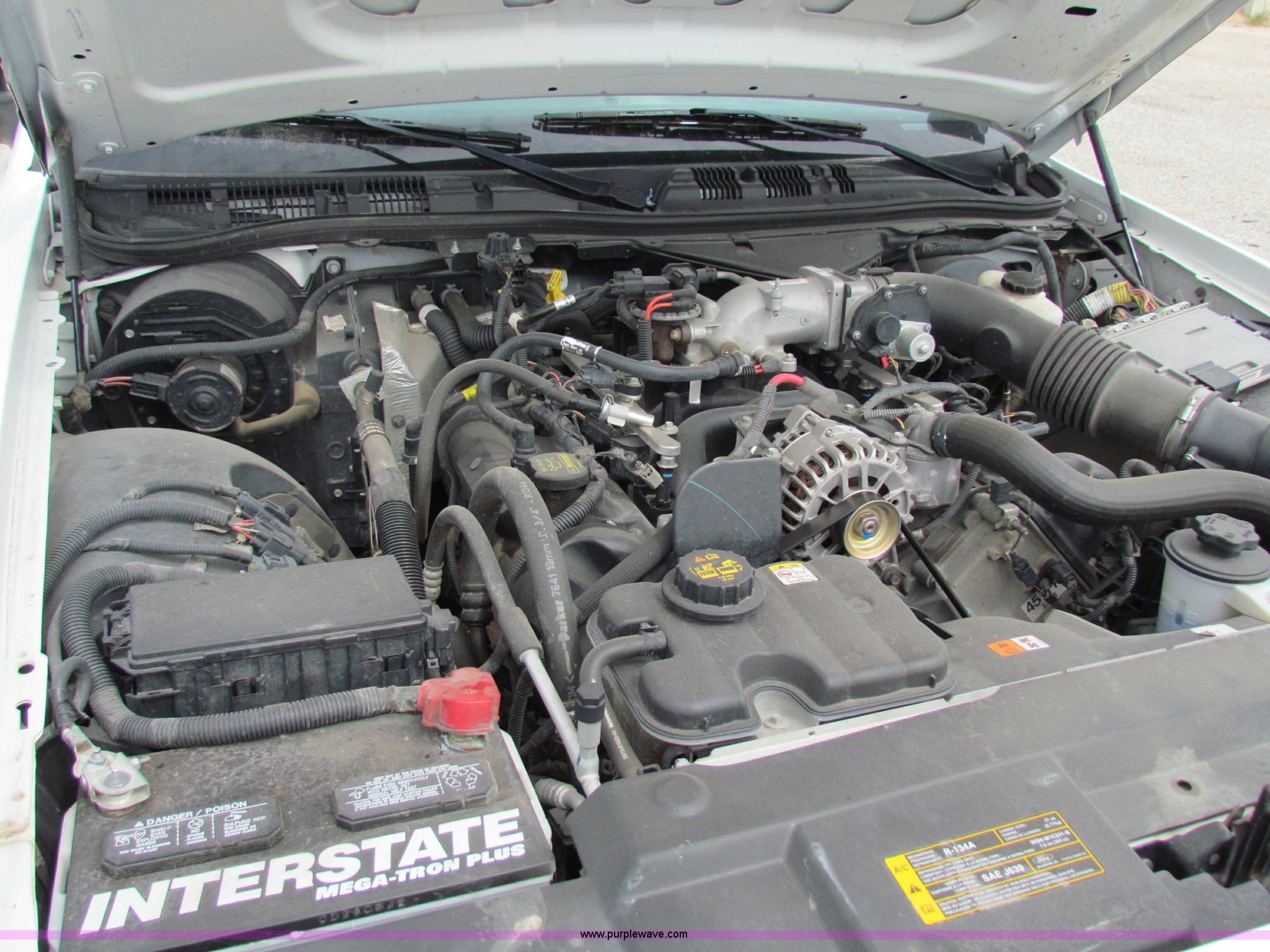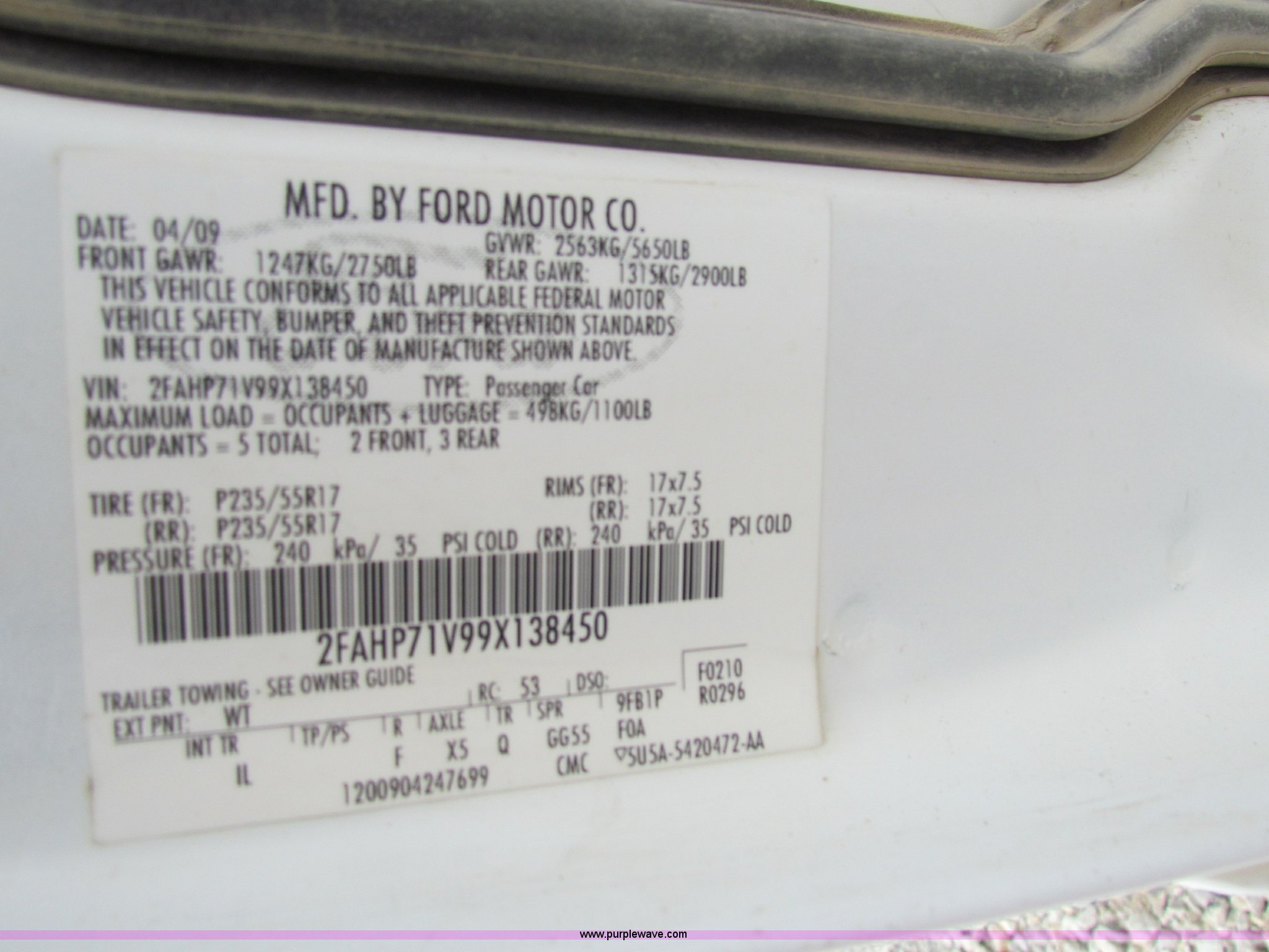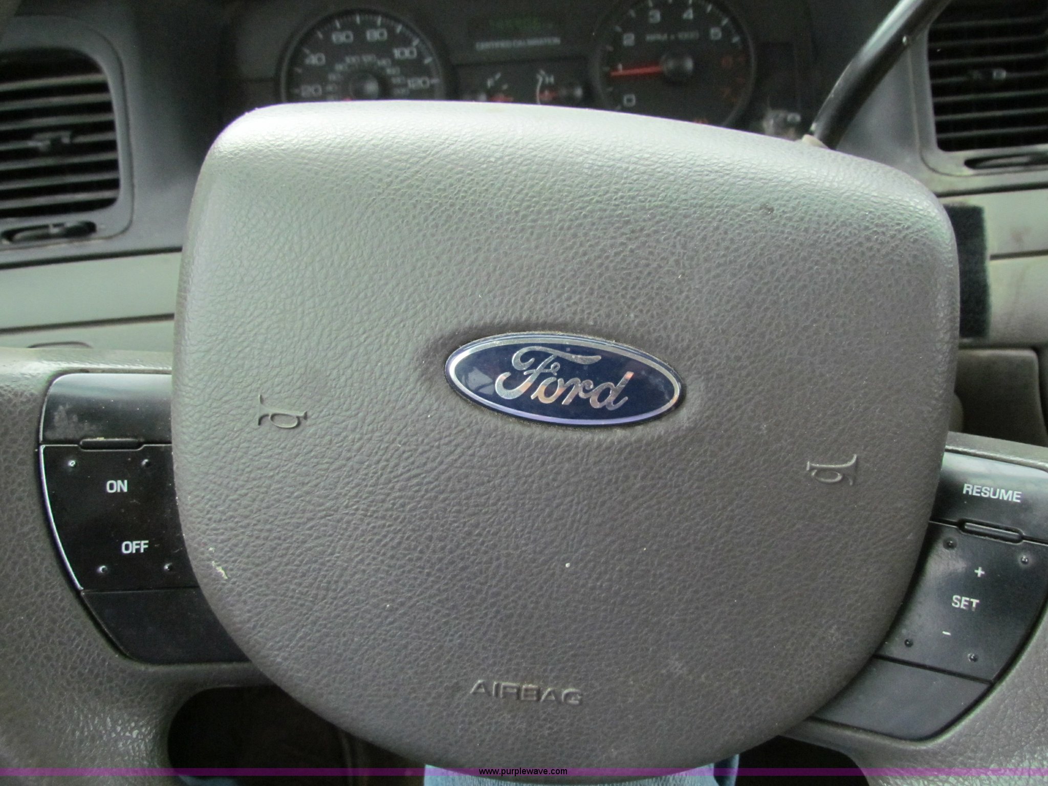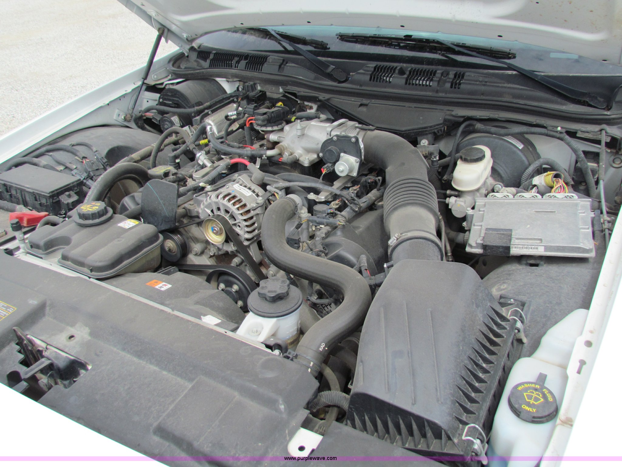 Purple Wave is selling a used Passenger Vehicle in Kansas. This item is a 2009 Ford Crown Victoria Police Interceptor with the following: 79,990 miles on odometer, 4.6L V8 SOHC 16V FFV gas engine, Automatic transmission, AC and heat, Tilt, AM/FM, Power windows, locks, mirrors, and seats, Cloth front interior, Vinyl rear interior, Spotlight, Roof top port holes, 235/55R17 tires, Interior/exterior cosmetic damage, Warning light on in dash