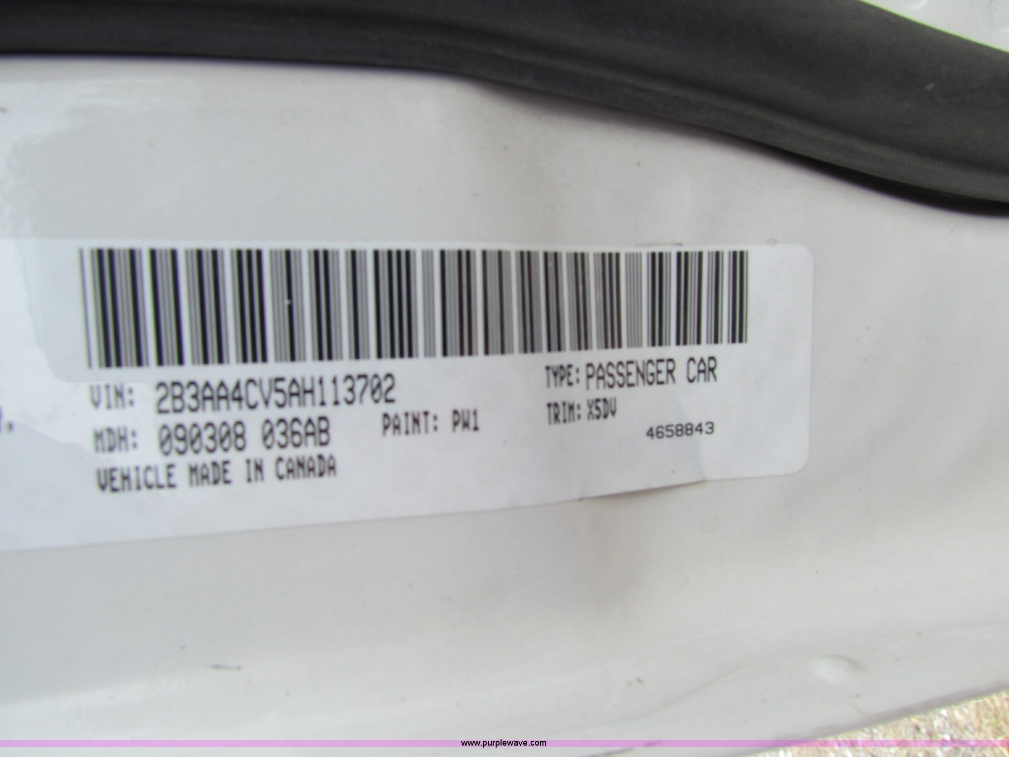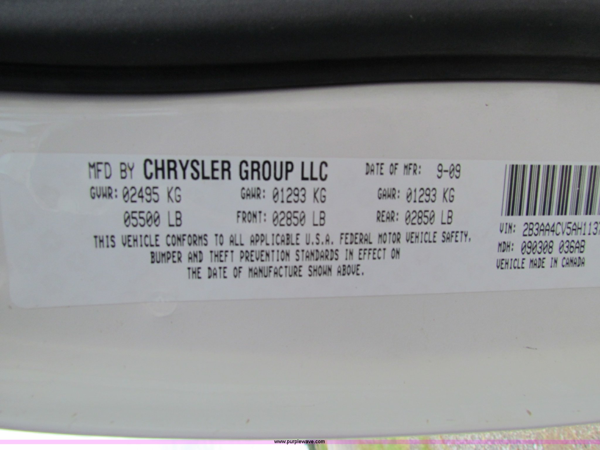 Purple Wave is selling a used Passenger Vehicle in Kansas. This item is a 2010 Dodge Charger with the following: 125,714 miles on odometer, 3.5L V6 SOHC 24V gas engine, Automatic transmission, AC and heat, Tilt, Cruise, AM/FM, Power windows, locks, and mirrors, Cloth front interior, Vinyl rear interior, Spotlight, 225/60R18 tires, Interior/exterior cosmetic damage