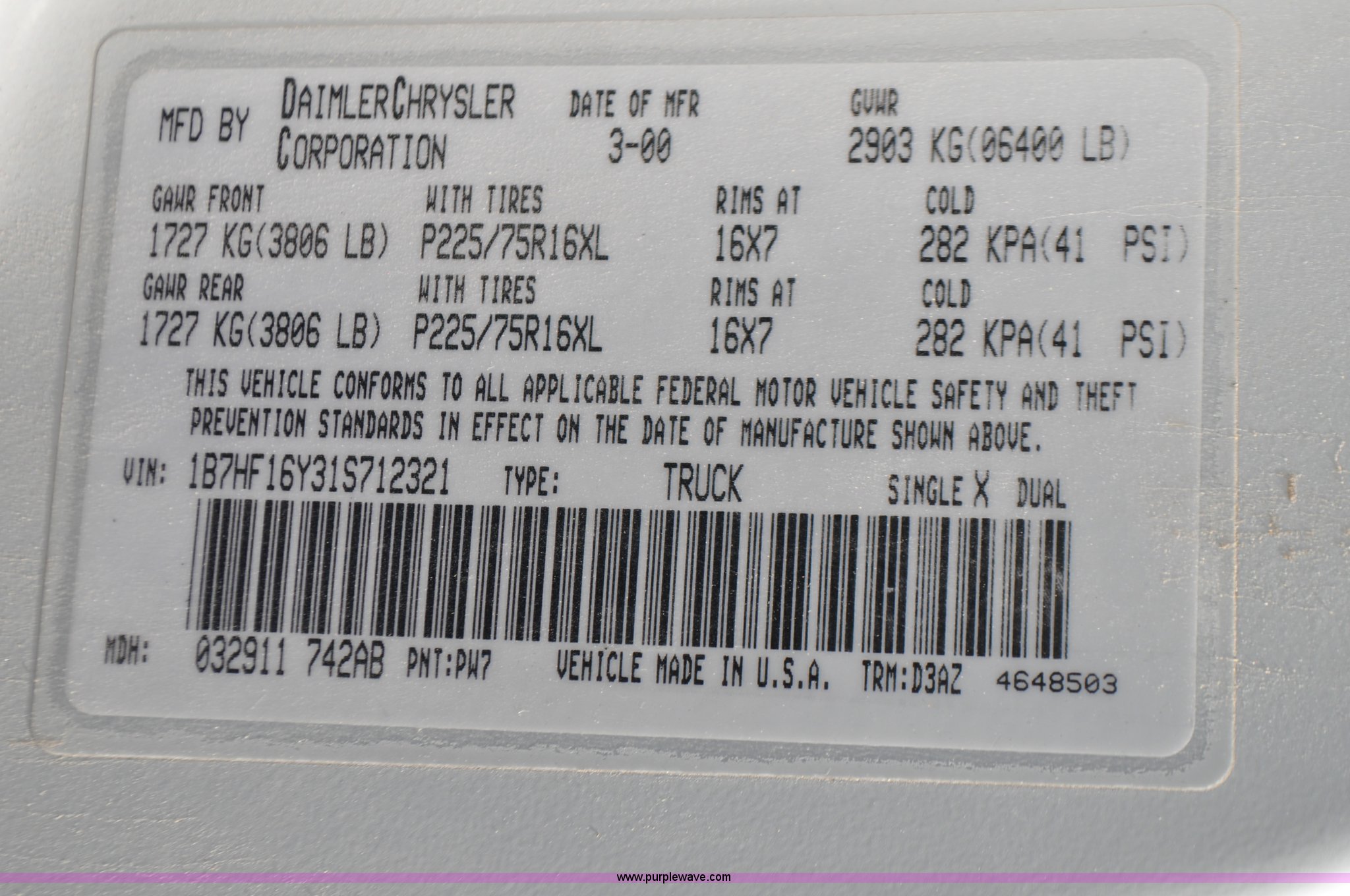 Purple Wave is selling a used Passenger Vehicle in Nebraska. This item is a 2001 Dodge Ram 1500 pickup truck with the following: 95,047 miles on odometer, 5.2L V8 OHV 16V gas engine, Automatic transmission, Four wheel drive, AC and heat, AM/FM/cassette, Manual windows and locks, Cloth interior, Long bed, Receiver hitch, Trailer wiring, 235/70R16 tires, Interior/exterior cosmetic damage, Will start, but will not idle, Pickup will be cleaned out prior to picked up, Unit# 407