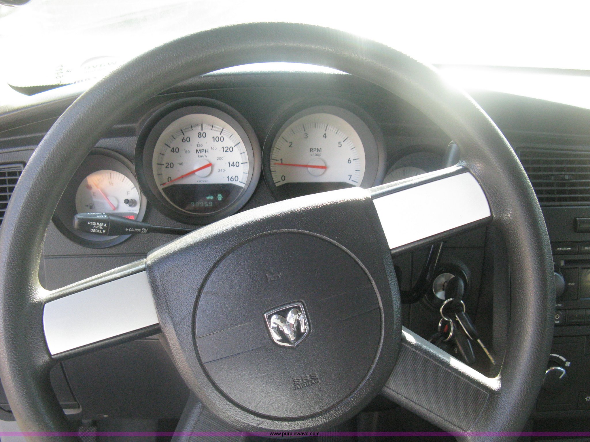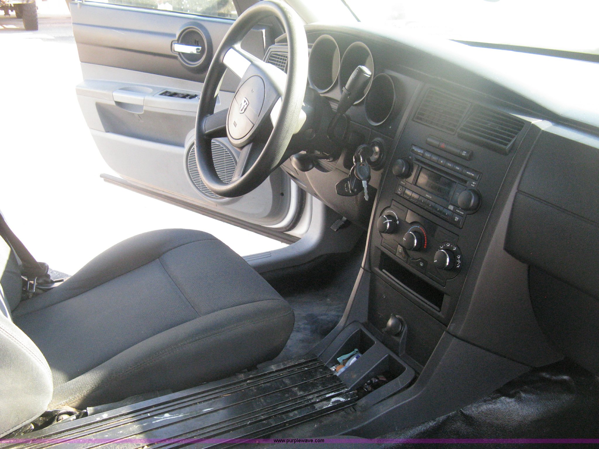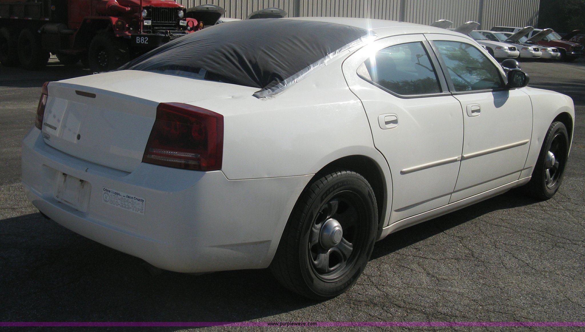 Purple Wave is selling a used Passenger Vehicle in Kansas. This item is a 2006 Dodge Charger SXT with the following: 98,959 miles on odometer, 5.7L V8 OHV 16V gas engine, Automatic transmission, AC and heat, Tilt, Cruise, AM/FM/CD, Power windows, locks, mirrors, and seats, Cloth front interior, Vinyl rear interior, Roof top port holes, P225/60R18 tires, Battery dead, Missing rear window, Cracked windshield, Interior cosmetic damage, Driver's side mirror shattered, Hail damage, Unit# 240