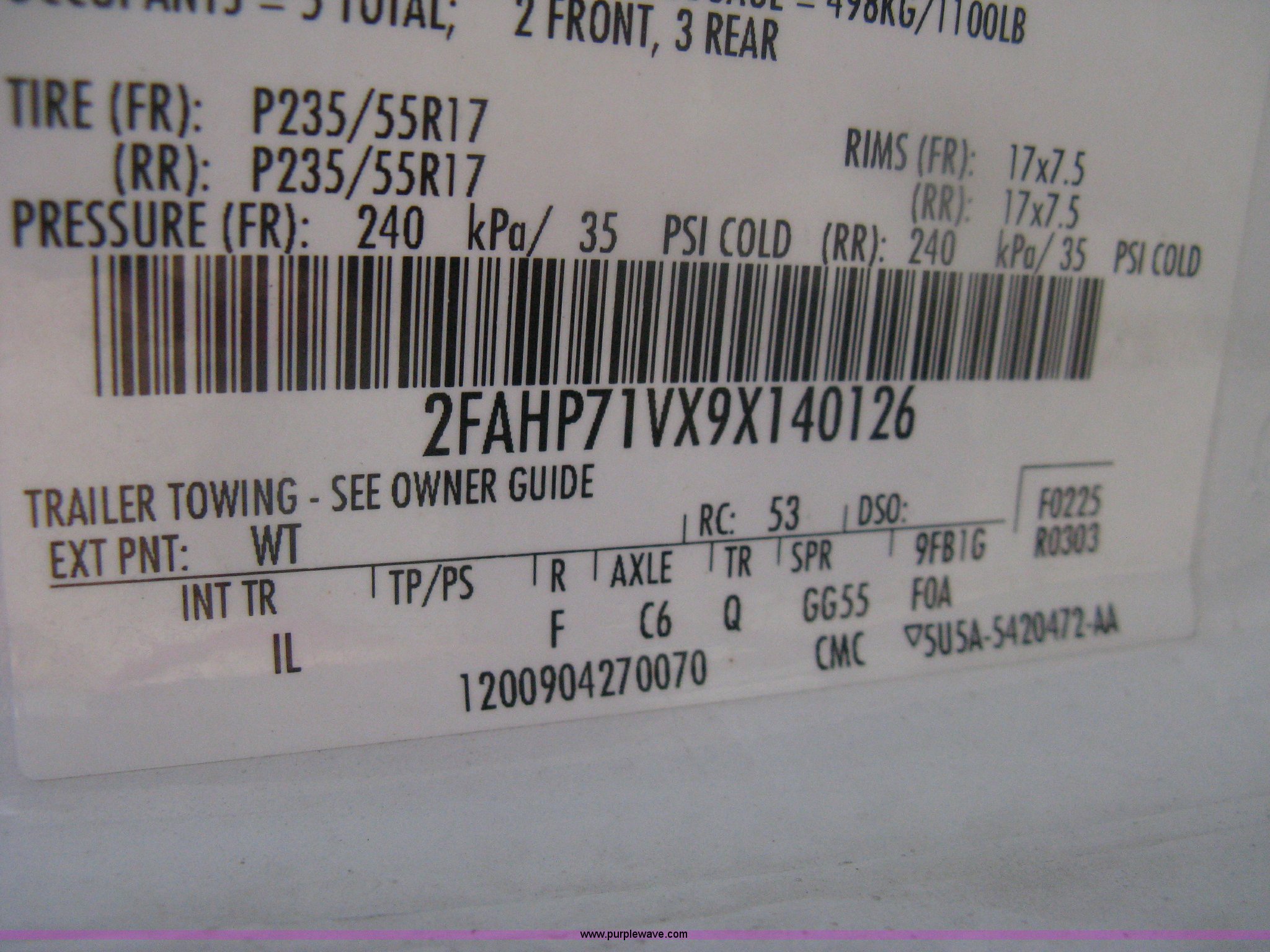 Purple Wave is selling a used Passenger Vehicle in Kansas. This item is a 2009 Ford Crown Victoria Police Interceptor with the following: 110,384 miles on odometer, 4.6L V8 SOHC 16V FFV gas engine, Automatic transmission, AC and heat, Tilt, AM/FM, Power windows, locks, mirrors, and seats, Cloth front interior, Vinyl rear interior, Rear single passenger cage surround, Roof top port holes, Exterior spotlight, P235/55R17 tires, Paint peeling, Interior cosmetic damage, Unit# 225