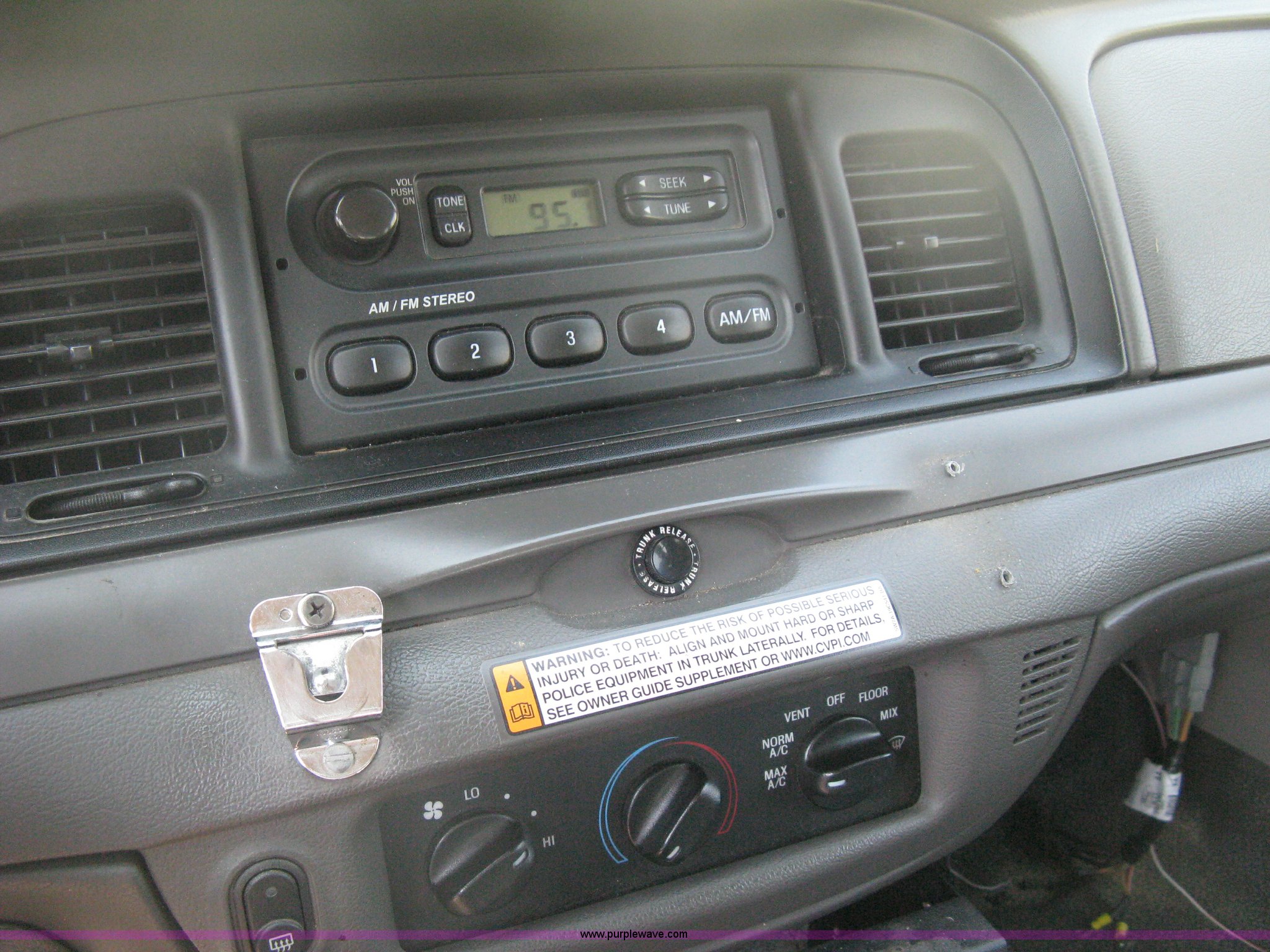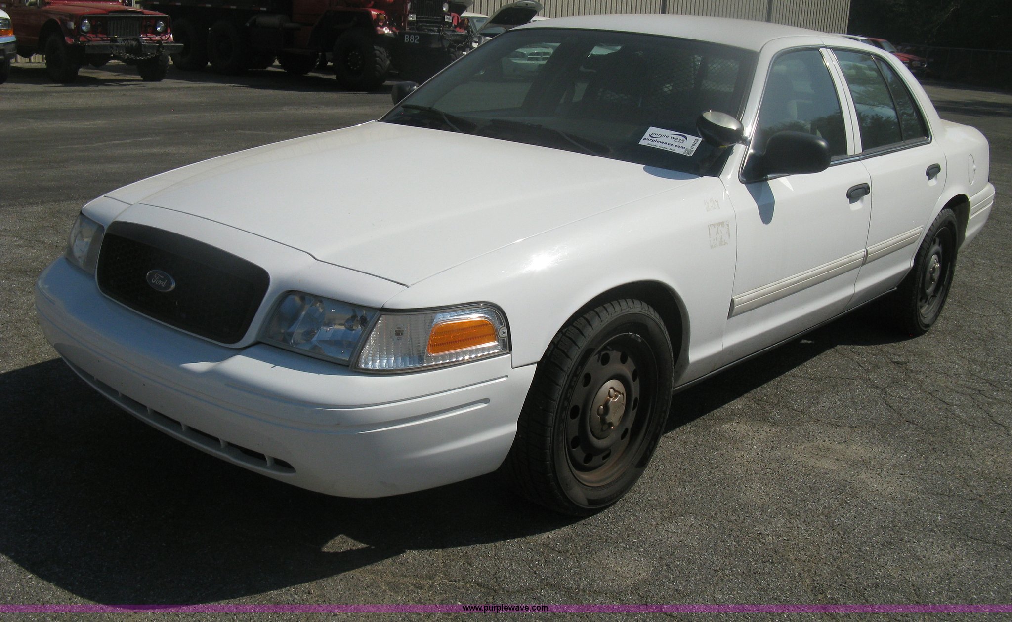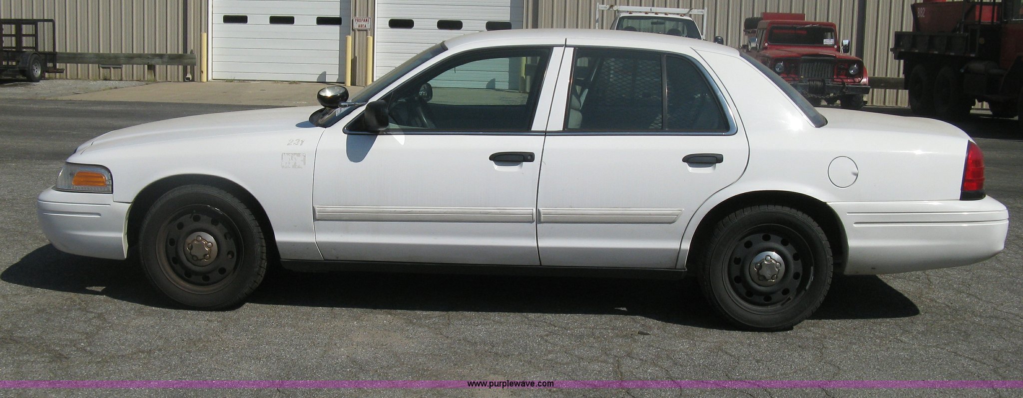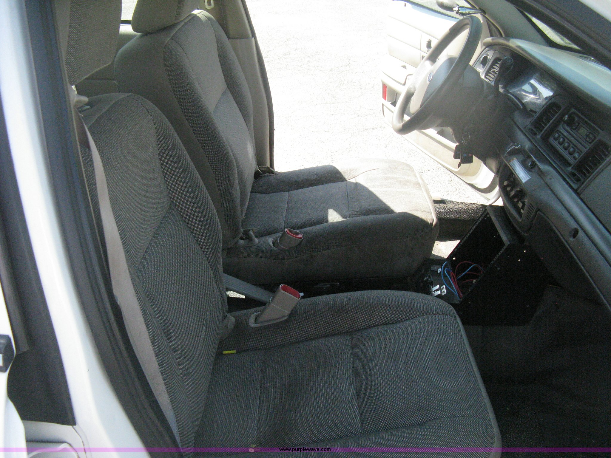 Purple Wave is selling a used Passenger Vehicle in Kansas. This item is a 2009 Ford Crown Victoria Police Interceptor with the following: 110,488 miles on odometer, 4.6L V8 SOHC 16V FFV gas engine, Automatic transmission, AC and heat, Tilt, AM/FM, Power windows, locks, mirrors, and seats, Cloth front interior, Vinyl rear interior, Rear single passenger cage surround, Exterior spotlight, Roof top port holes, P235/55R17 tires, Mileage will not display on odometer, Unit# 231