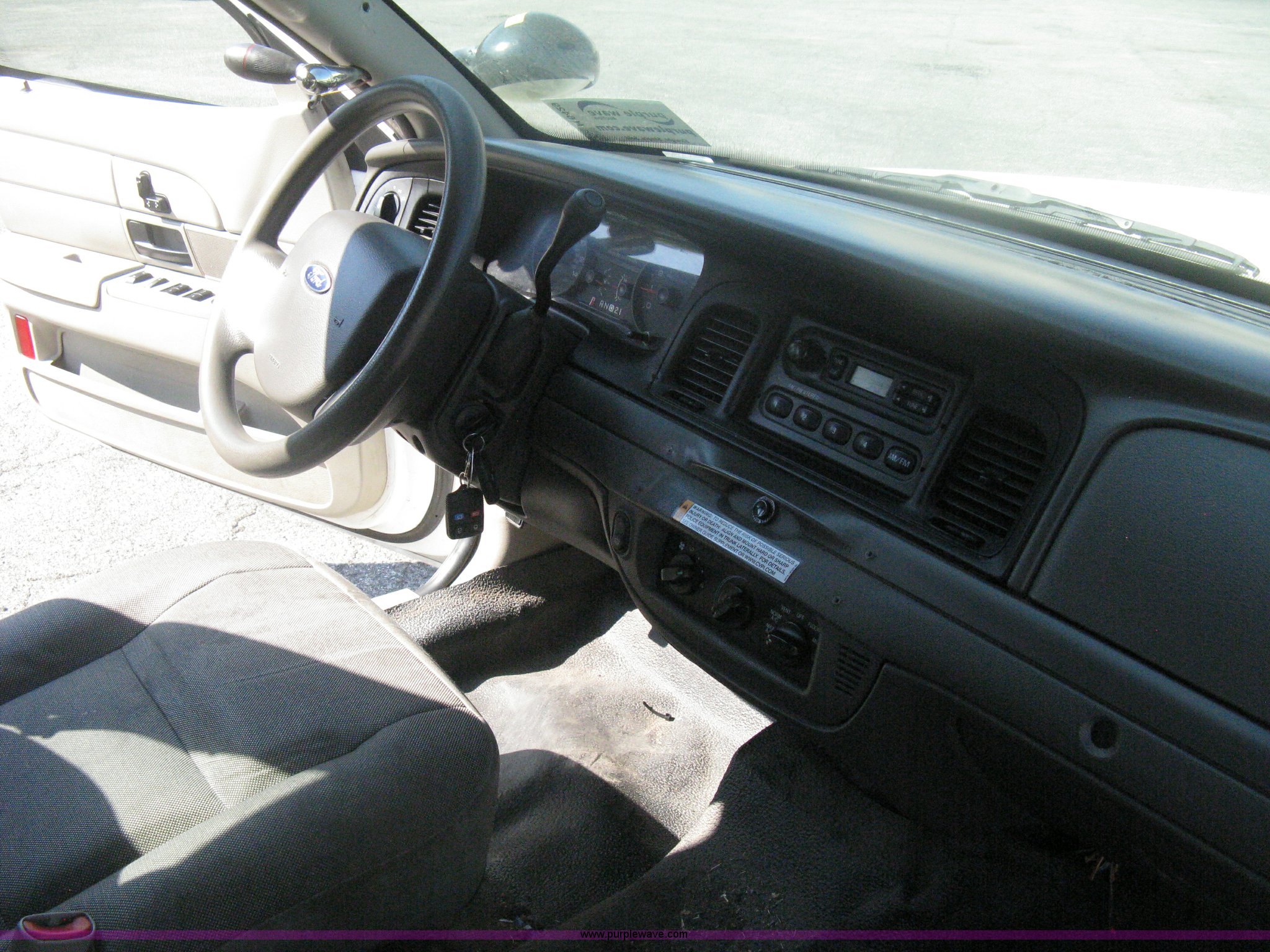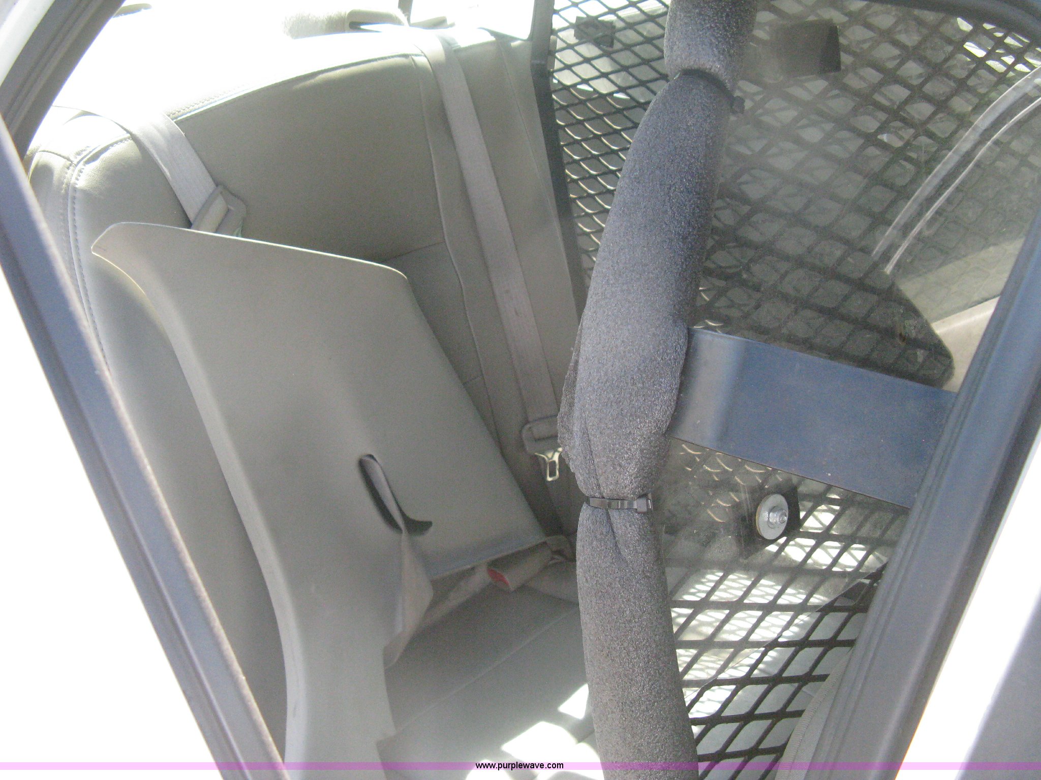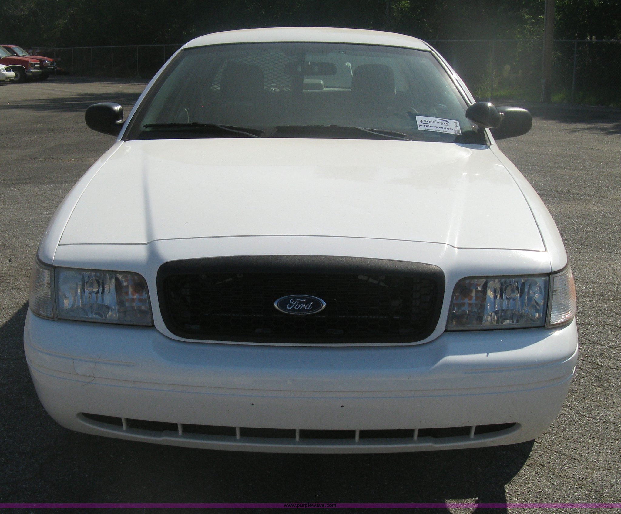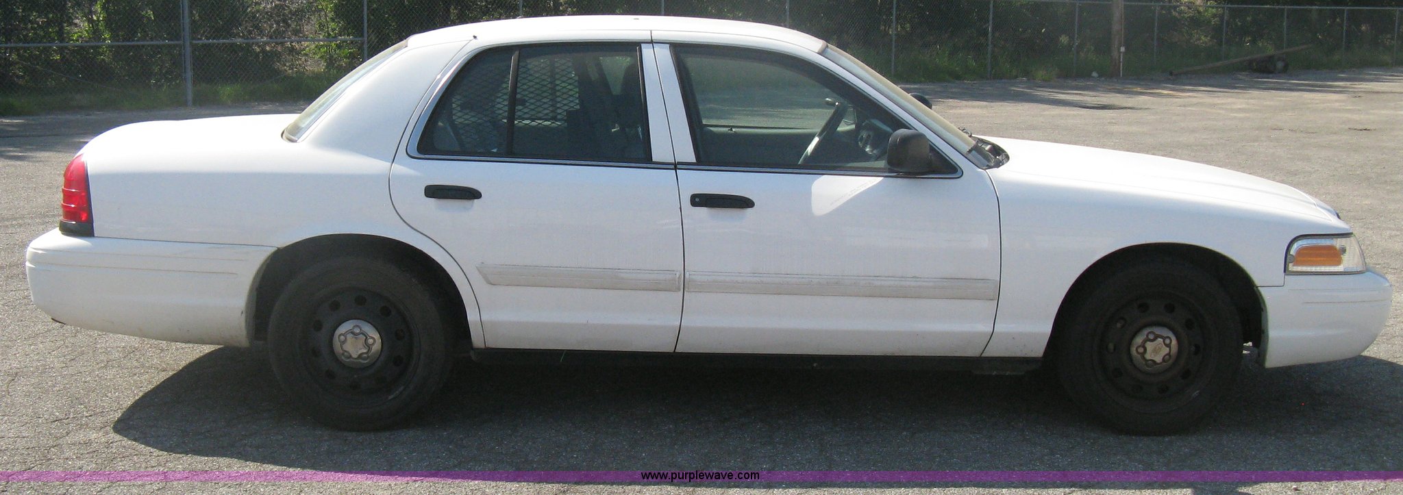 Purple Wave is selling a used Passenger Vehicle in Kansas. This item is a 2009 Ford Crown Victoria Police Interceptor with the following: 105,159 miles on odometer, 4.6L V8 SOHC 16V FFV gas engine, Automatic transmission, AC and heat, AC inoperable, Tilt, AM/FM, Power windows, locks, mirrors, and seats, Cloth front interior, Vinyl rear interior, Rear single passenger cage surround, Roof top port holes, Exterior spotlight, P235/55R17 tires, Interior cosmetic damage, Front bumper cracked, Battery dead, Unit# 221