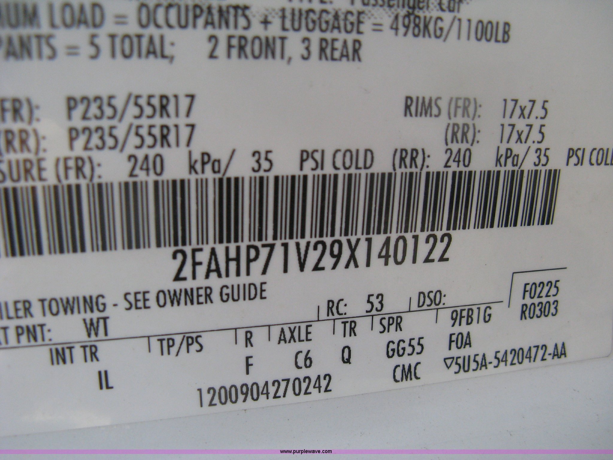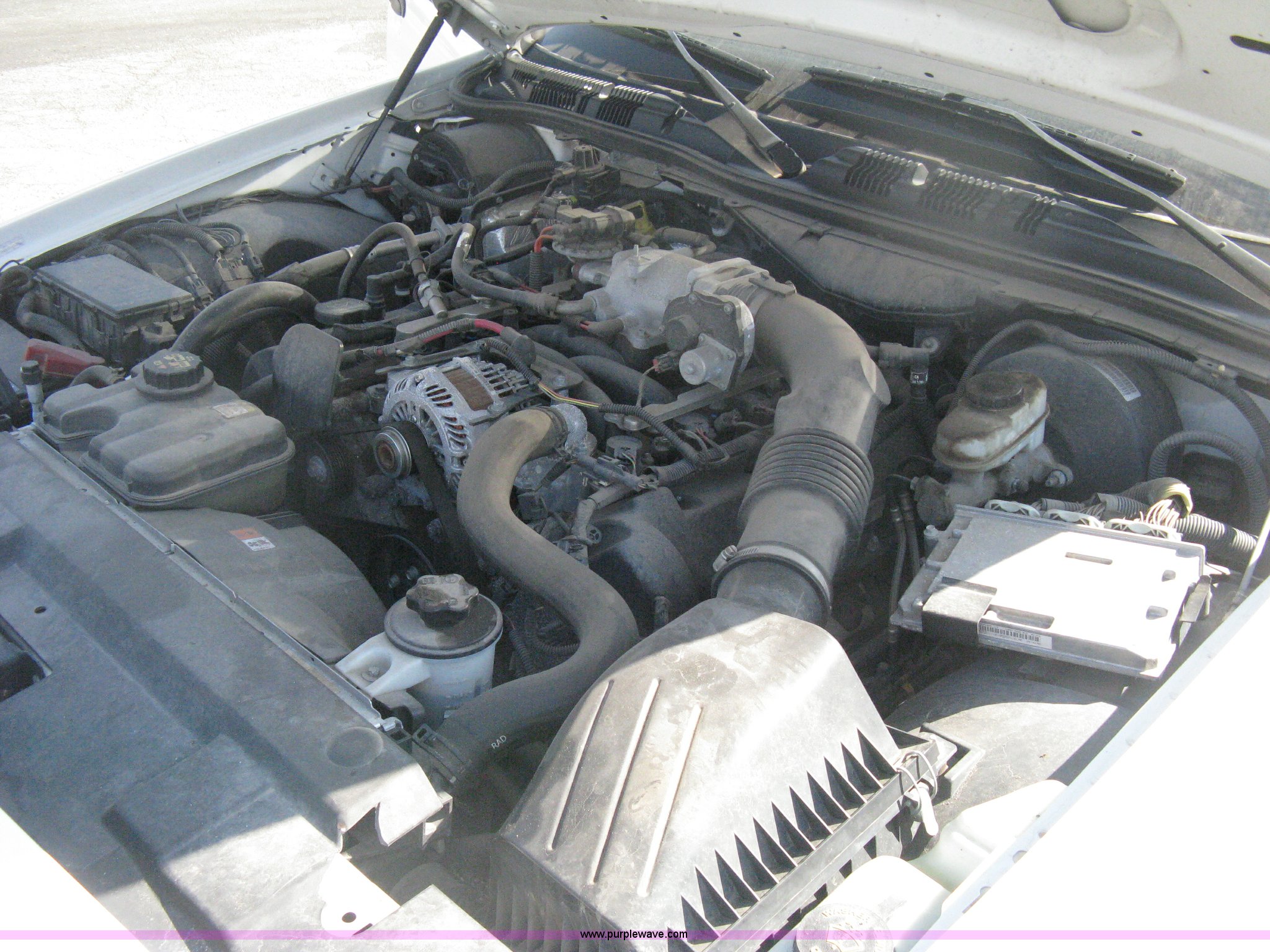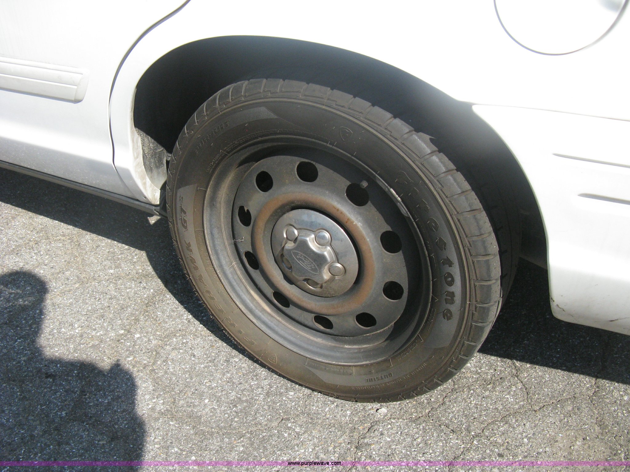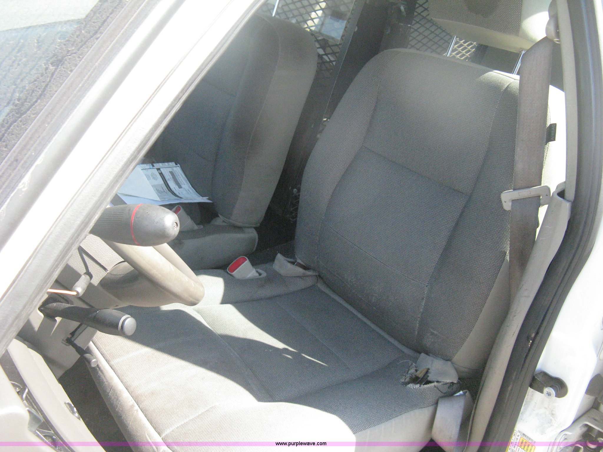 Purple Wave is selling a used Passenger Vehicle in Kansas. This item is a 2009 Ford Crown Victoria Police Interceptor with the following: 105,159 miles on odometer, 4.6L V8 SOHC 16V FFV gas engine, Automatic transmission, AC and heat, AC inoperable, Tilt, AM/FM, Power windows, locks, mirrors, and seats, Cloth front interior, Vinyl rear interior, Rear single passenger cage surround, Roof top port holes, Exterior spotlight, P235/55R17 tires, Interior cosmetic damage, Front bumper cracked, Battery dead, Unit# 221