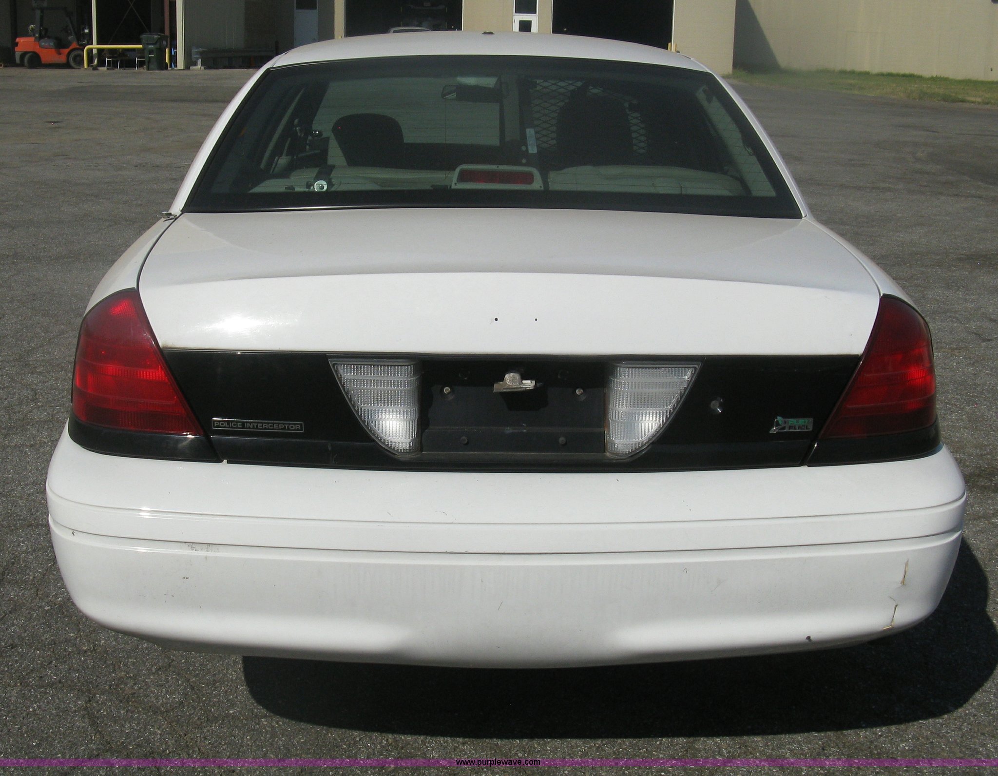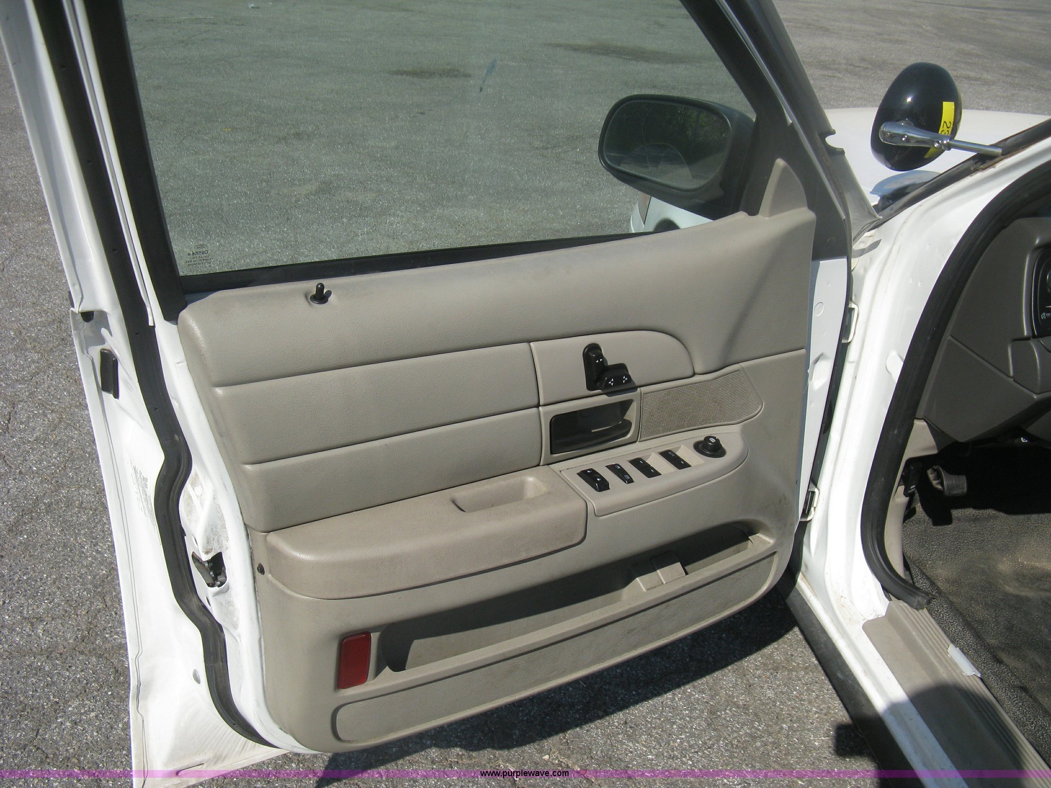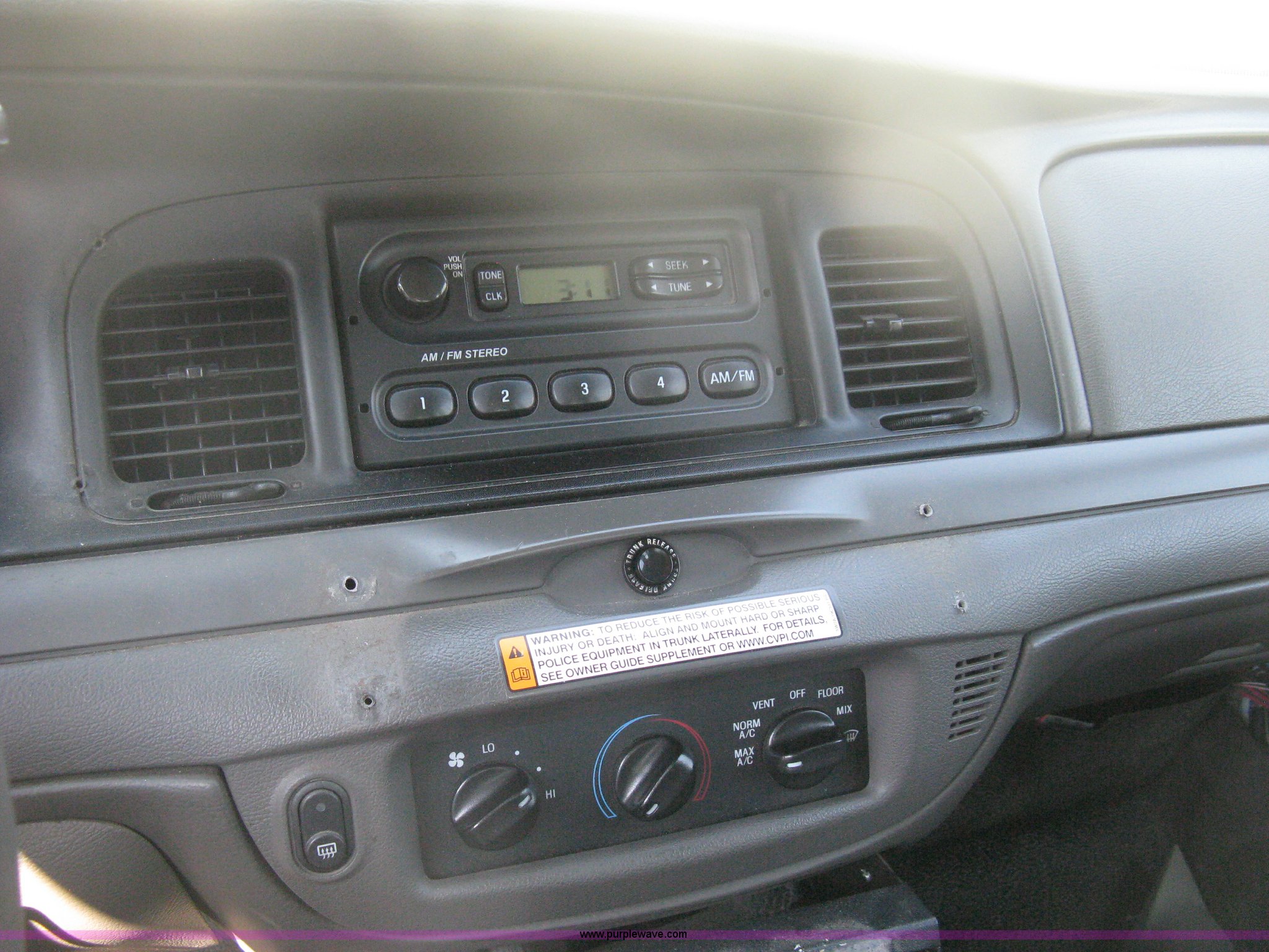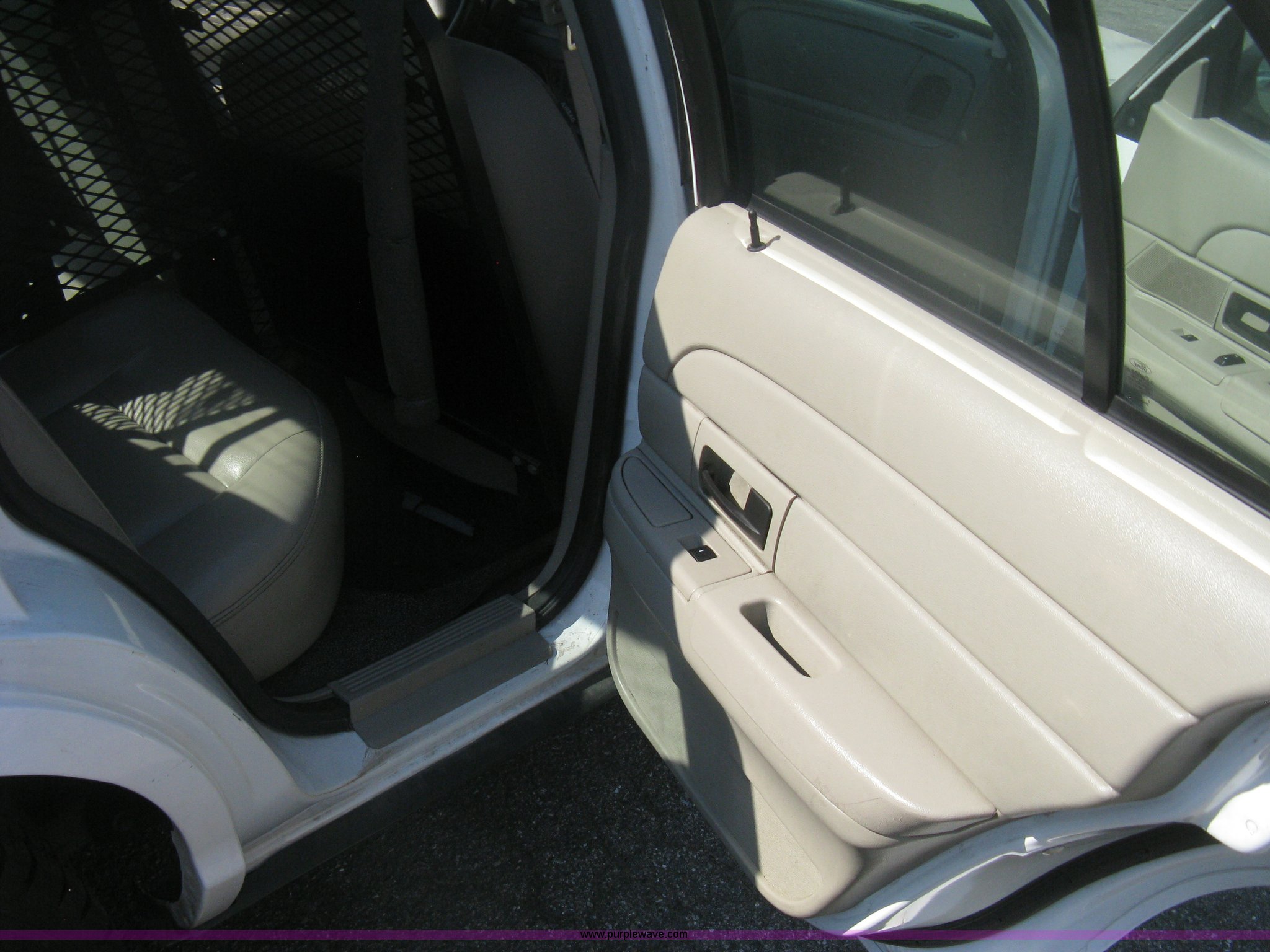Purple Wave is selling a used Passenger Vehicle in Kansas. This item is a 2009 Ford Crown Victoria Police Interceptor with the following: 106,743 miles on odometer, 4.6L V8 SOHC 16V FFV gas engine, Automatic transmission, AC and heat, Tilt, AM/FM, Power windows, locks, mirrors, and seats, Cloth front interior, Vinyl rear interior, Laptop floor stand, Tray missing, Roof top port holes, Exterior spotlight, P235/55R17 tires, Interior cosmetic damage, Left rear axle bearing needs replaced, Damage to axle, Battery dead, Unit# 230