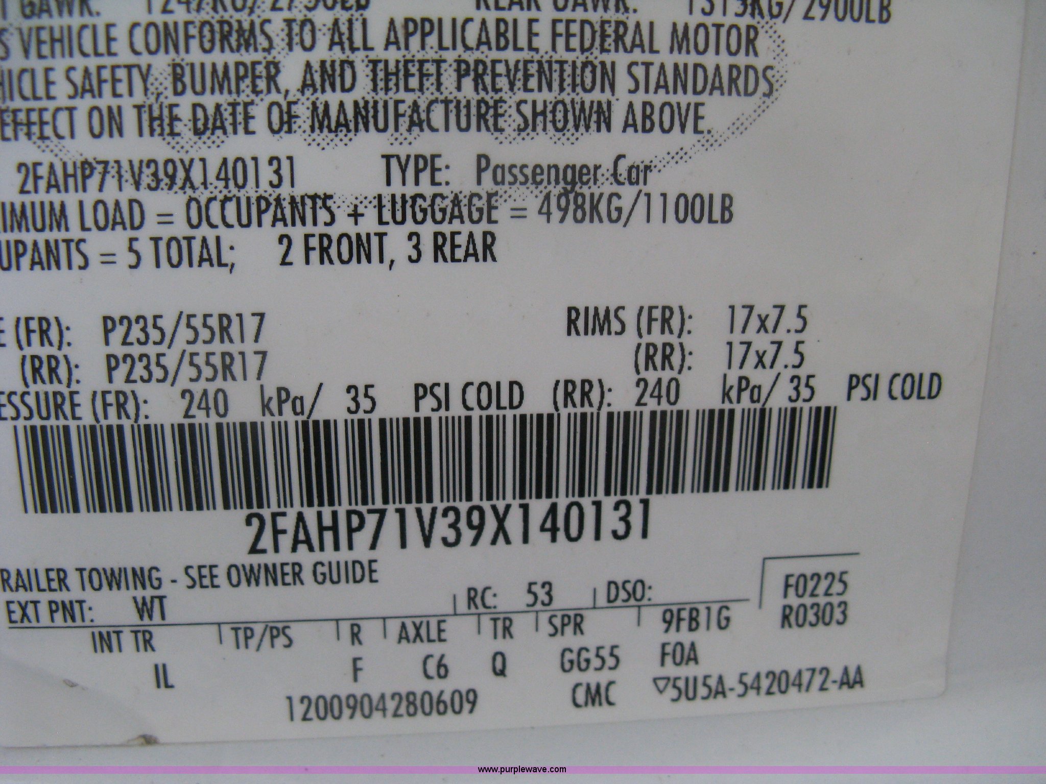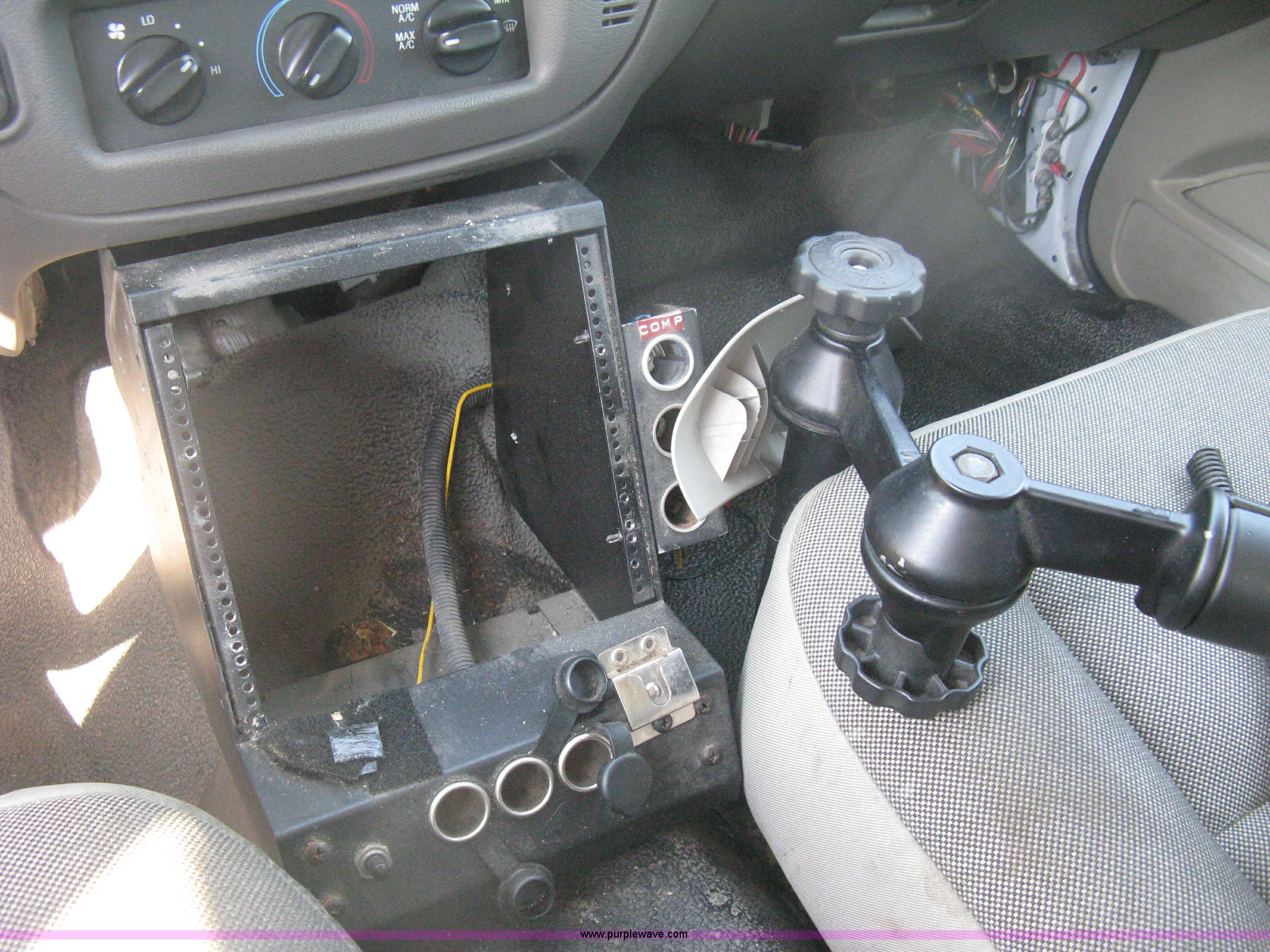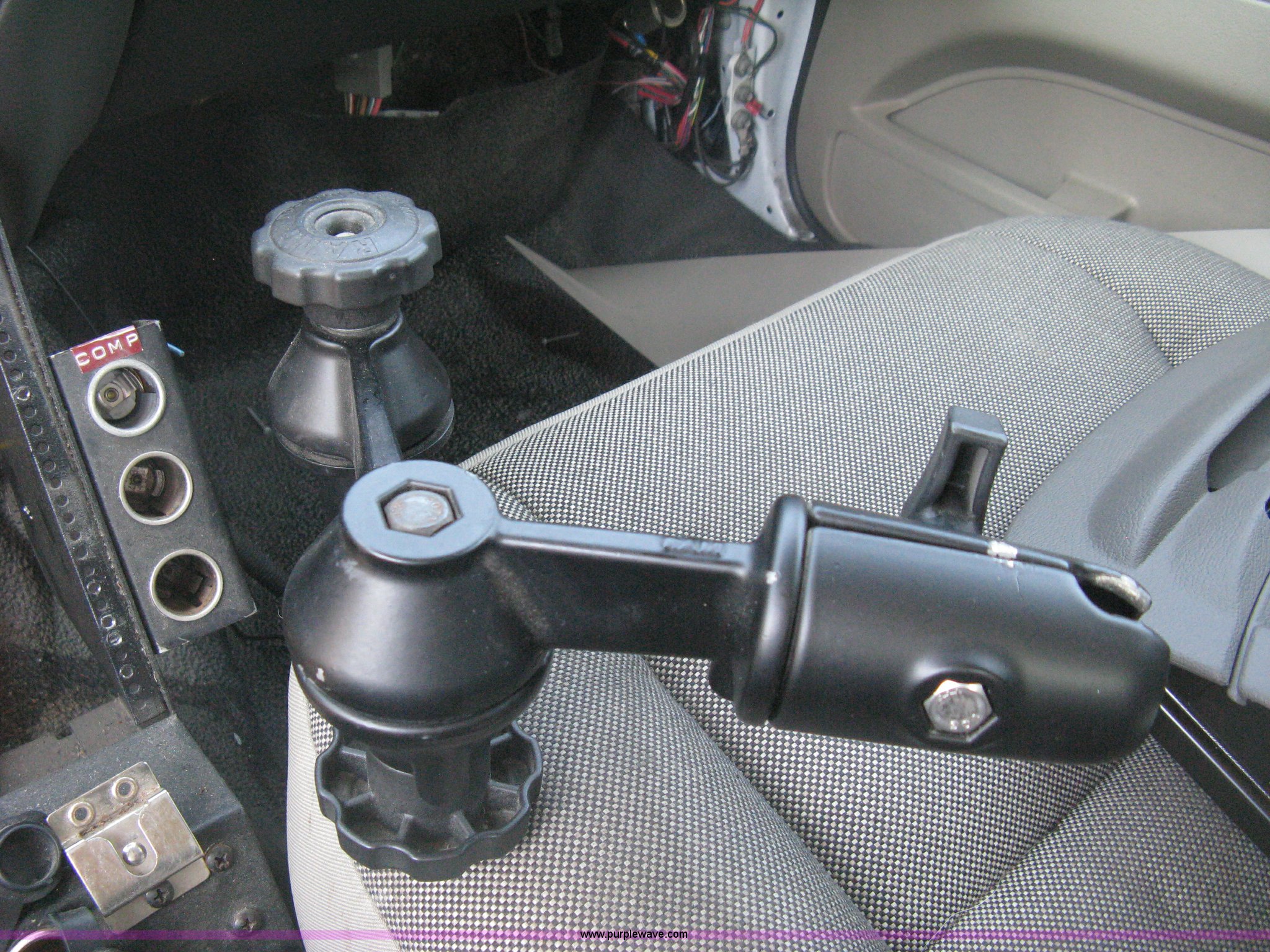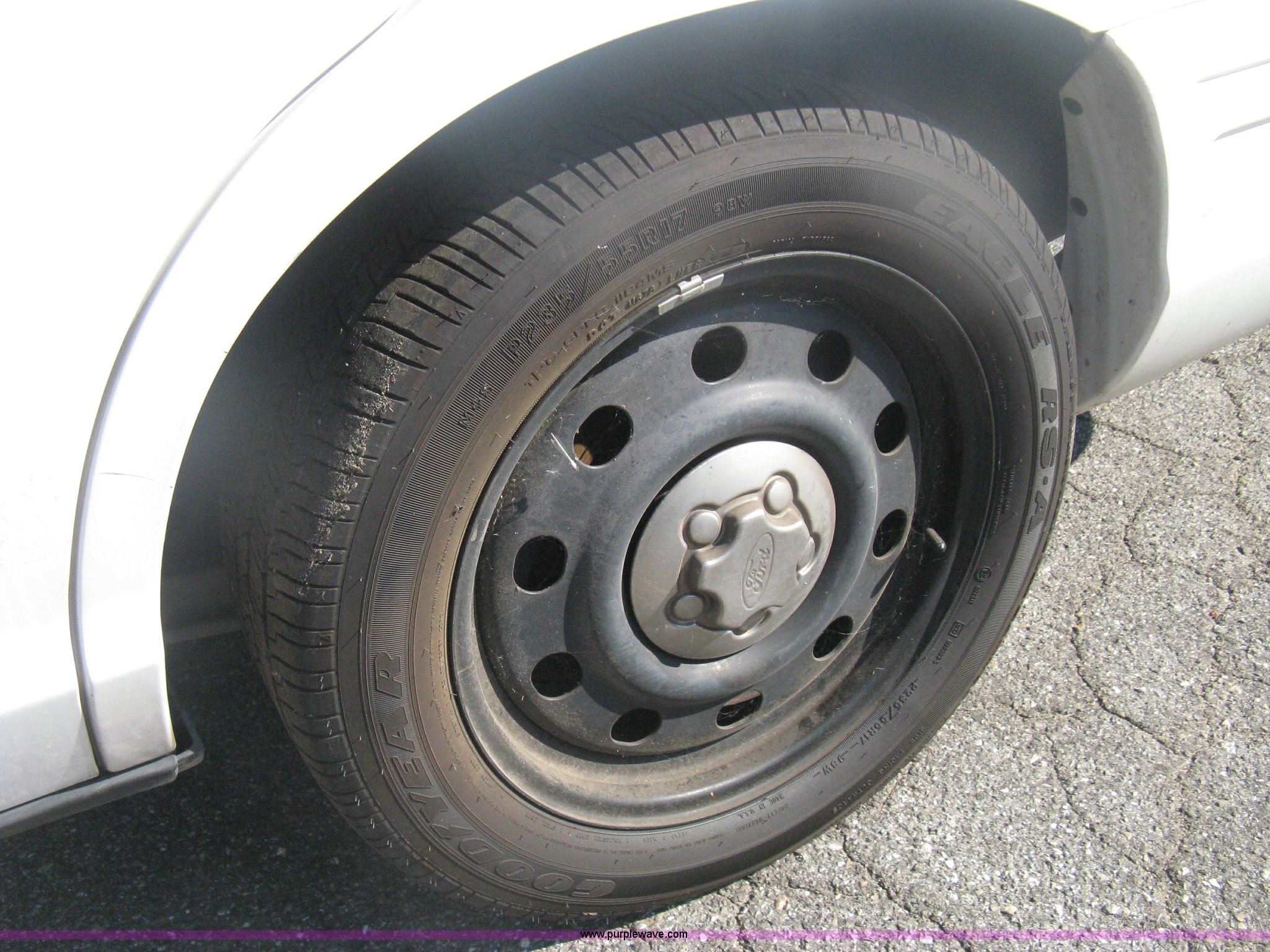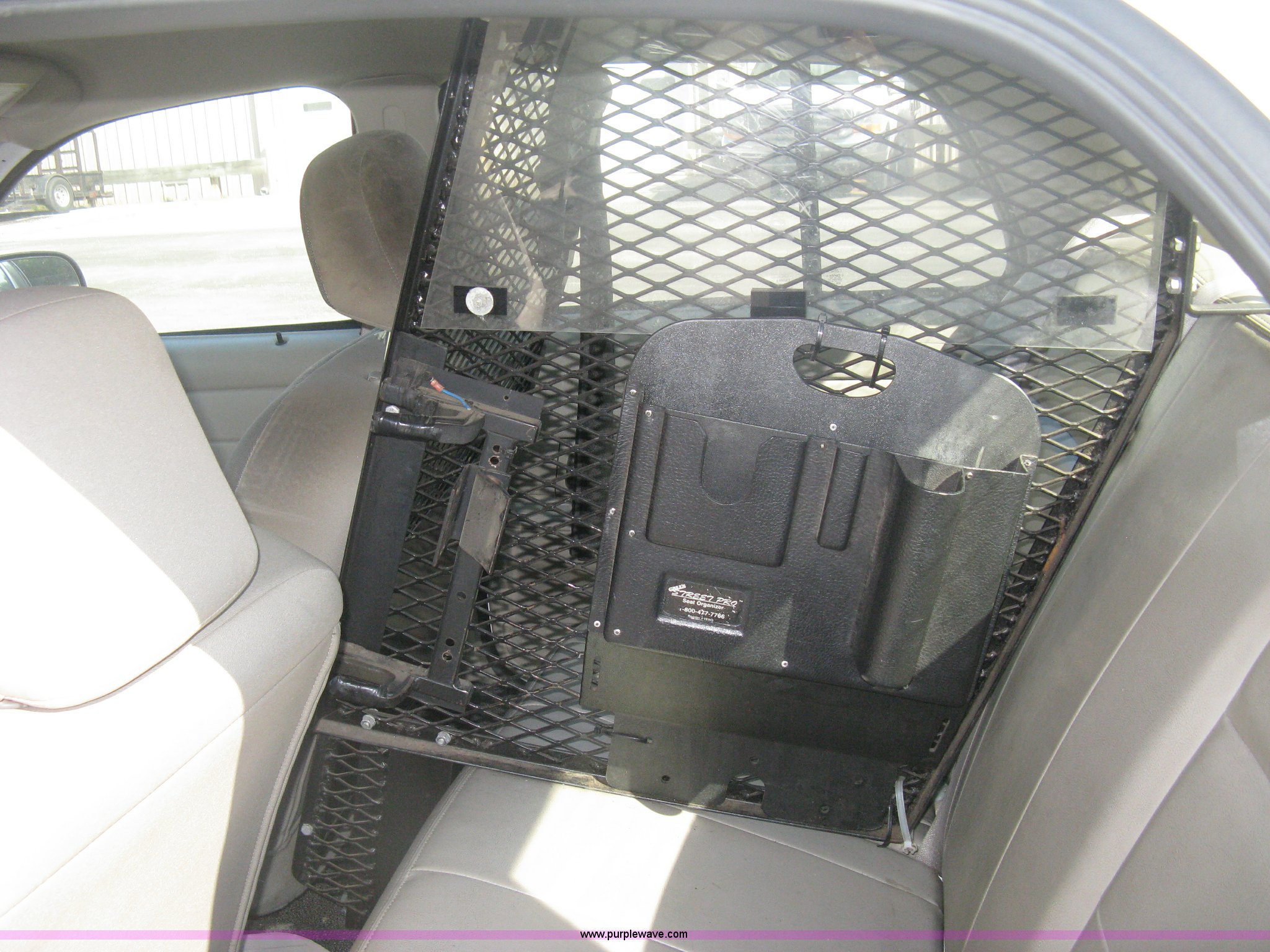 Purple Wave is selling a used Passenger Vehicle in Kansas. This item is a 2009 Ford Crown Victoria Police Interceptor with the following: 106,743 miles on odometer, 4.6L V8 SOHC 16V FFV gas engine, Automatic transmission, AC and heat, Tilt, AM/FM, Power windows, locks, mirrors, and seats, Cloth front interior, Vinyl rear interior, Laptop floor stand, Tray missing, Roof top port holes, Exterior spotlight, P235/55R17 tires, Interior cosmetic damage, Left rear axle bearing needs replaced, Damage to axle, Battery dead, Unit# 230