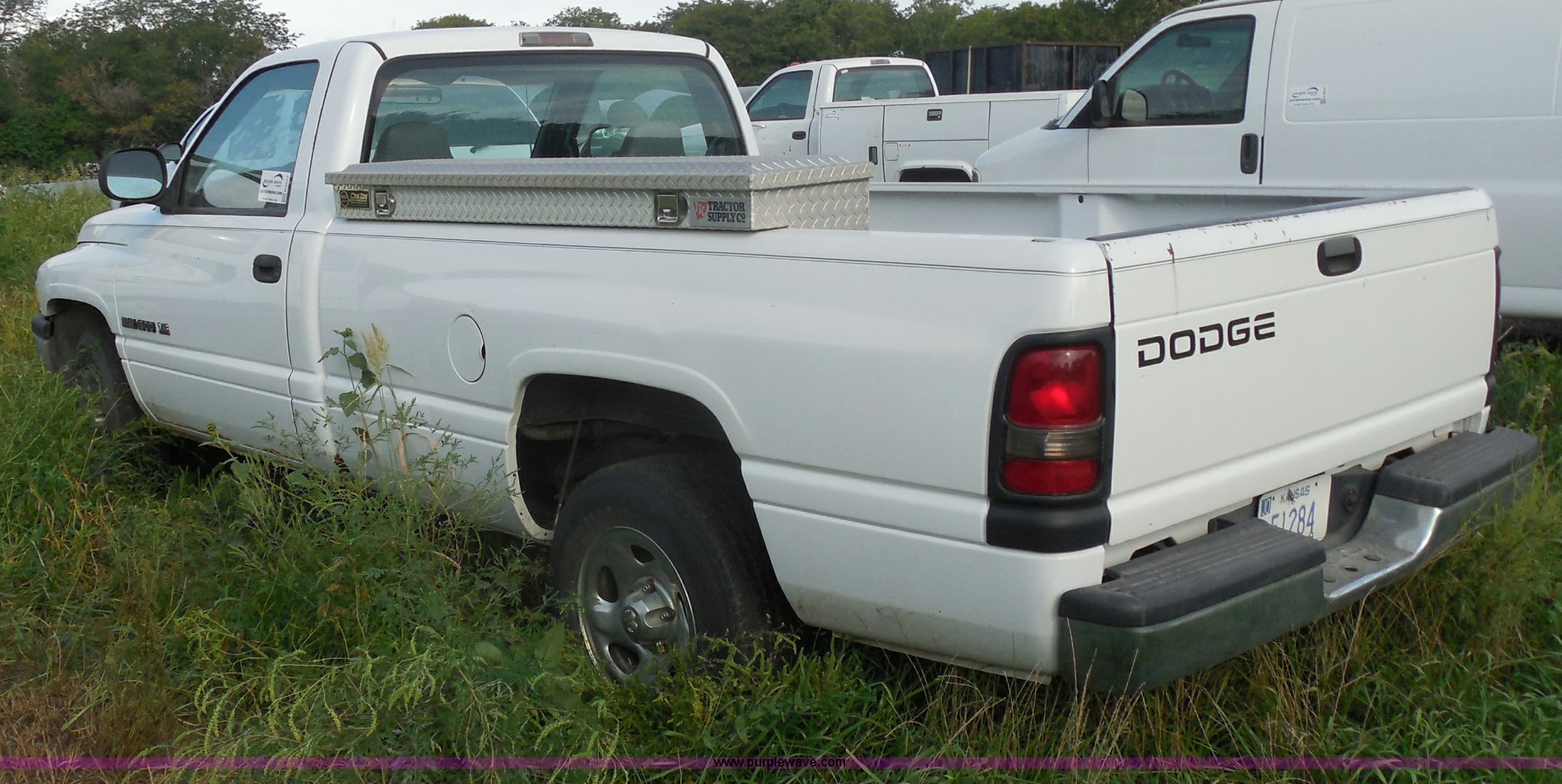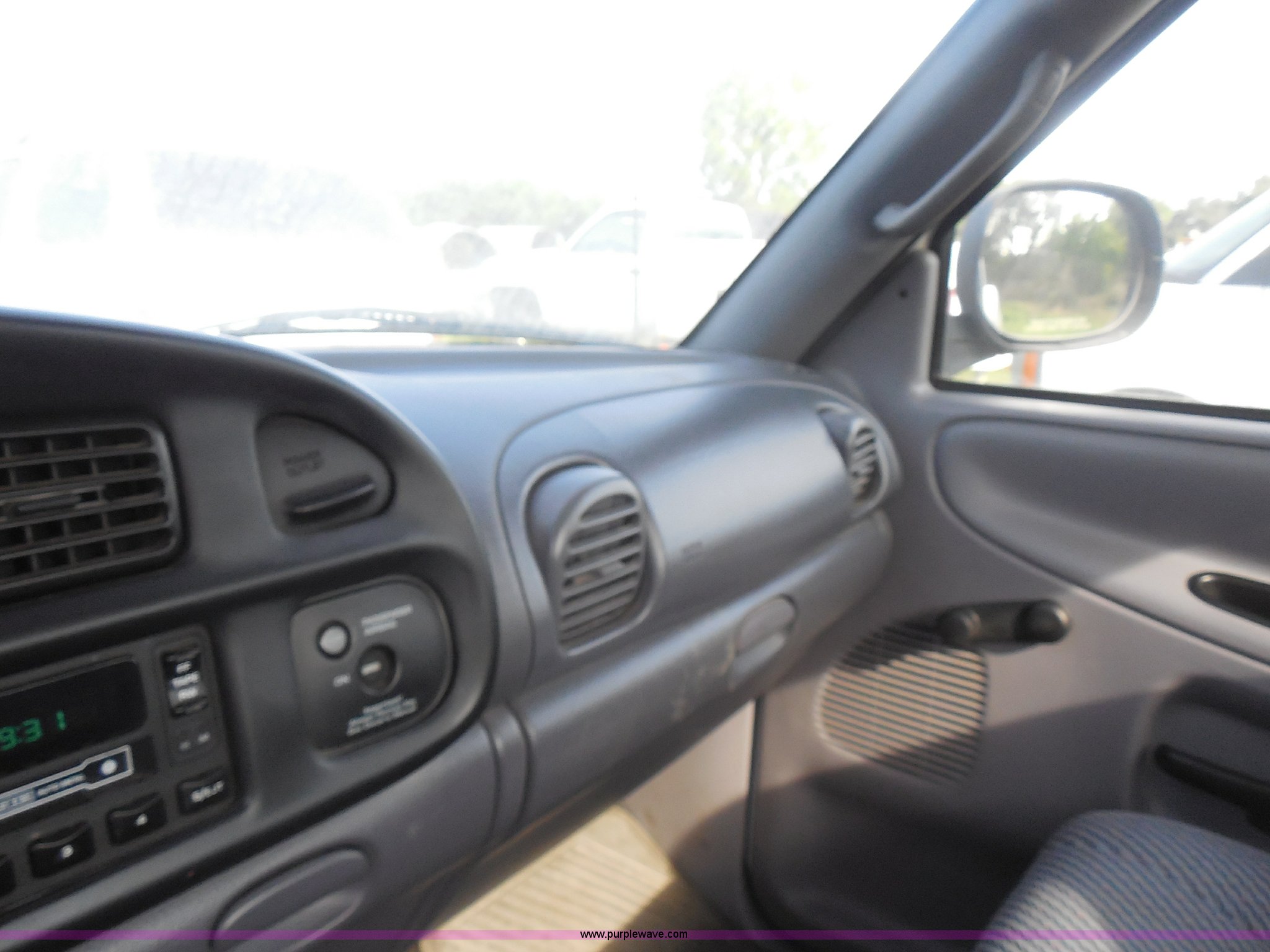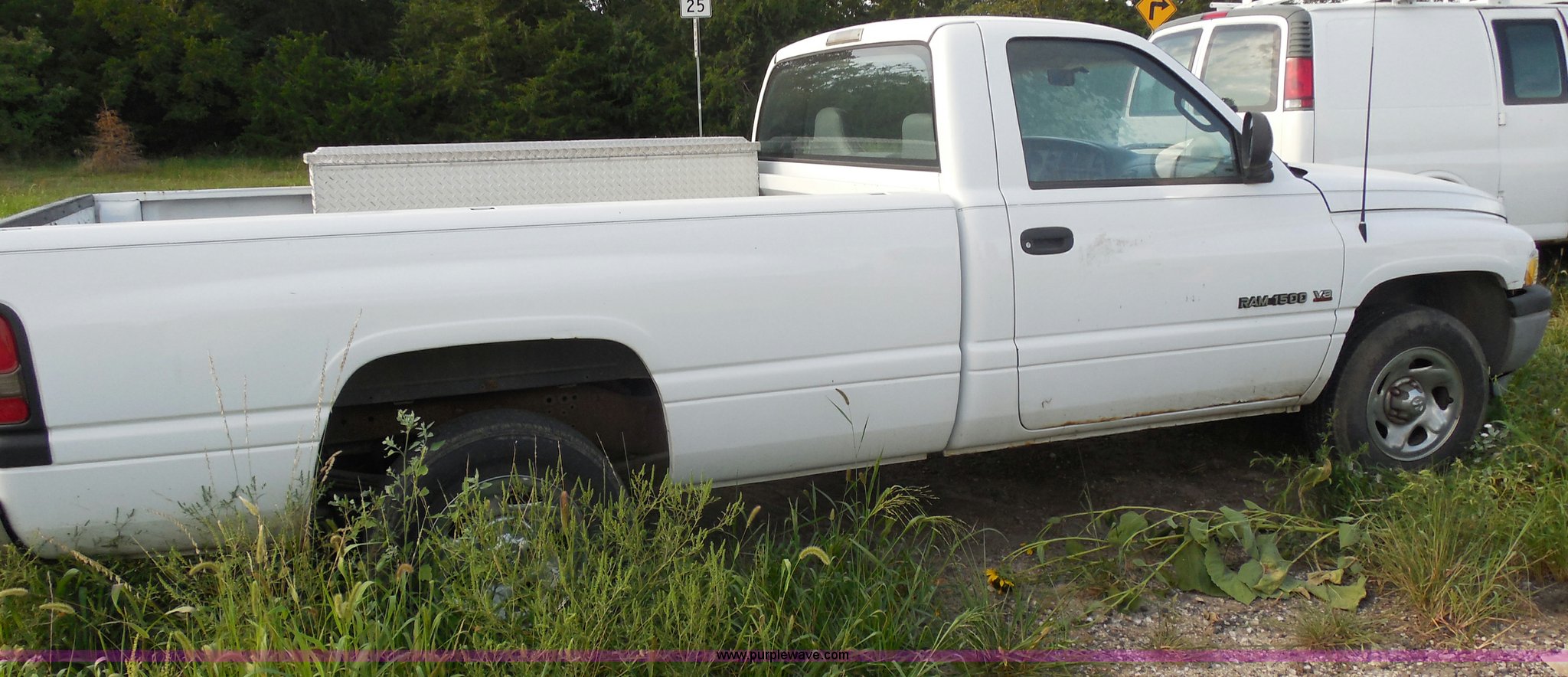 Purple Wave is selling a used Passenger Vehicle in Kansas. This item is a 1998 Dodge Ram 1500 pickup truck with the following: 84,853 miles on odometer, 5.2L V8 OHV 16V gas engine, Automatic transmission, AC and heat, Tilt, Cruise, AM/FM/cassette, Manual windows and locks, Cloth interior, Long bed, DeeZee toolbox, Bed mat, 275/75R16 tires, Maintained every 250 hours, Hole in body corner of cab on driver's side from rust, Bed dented, Cracked dashboard, Headliner loose, Unit# JCW2077