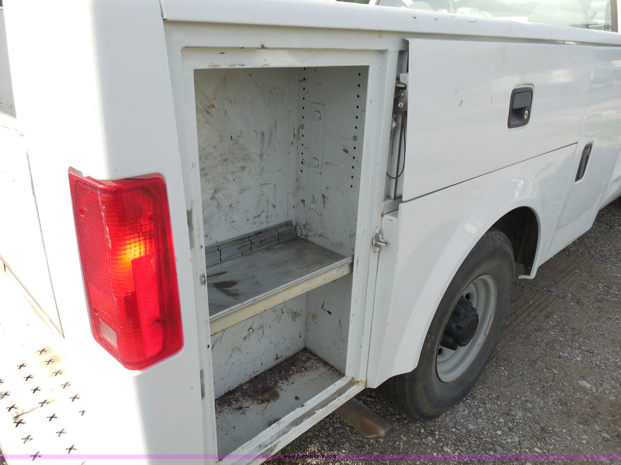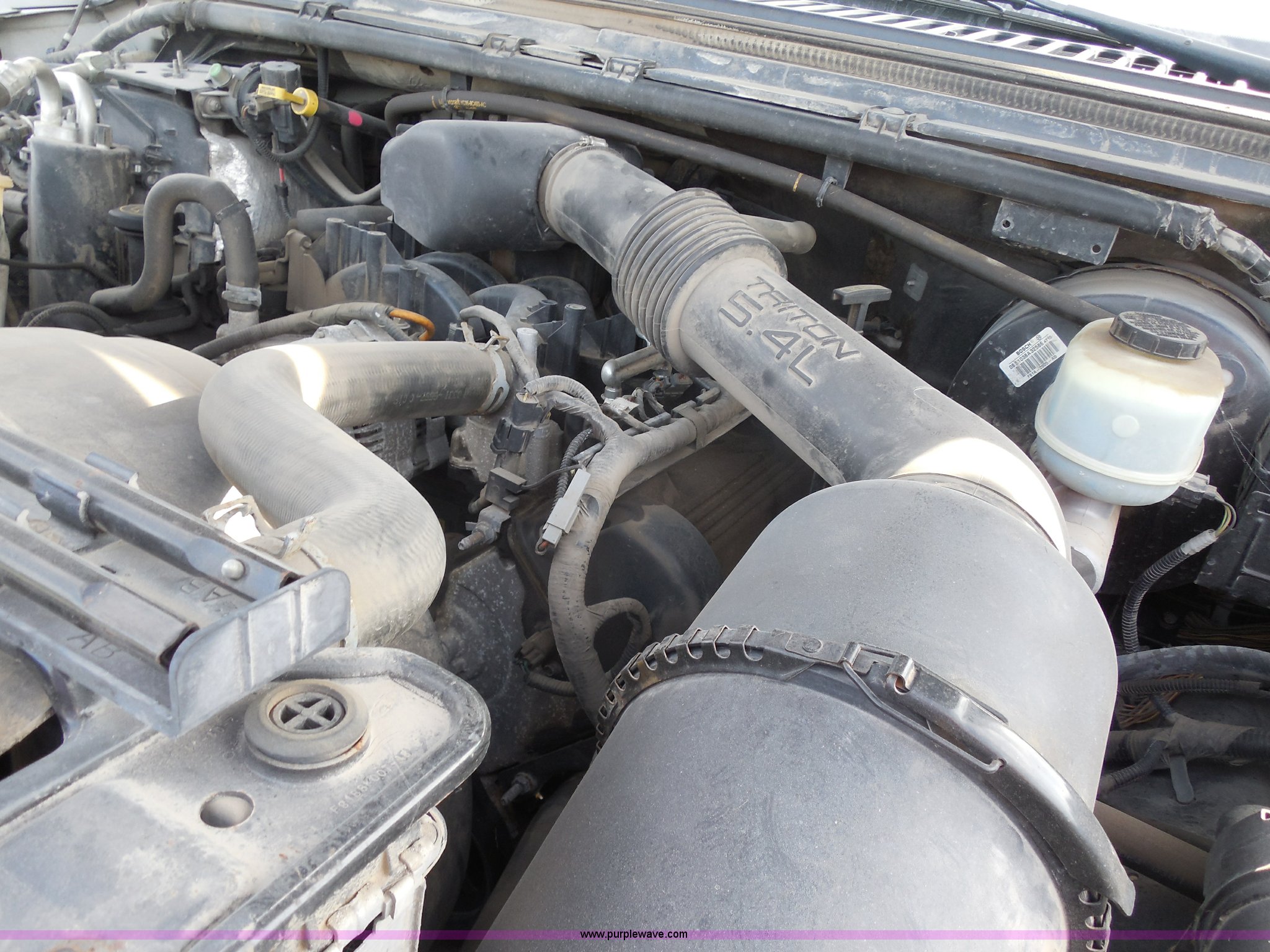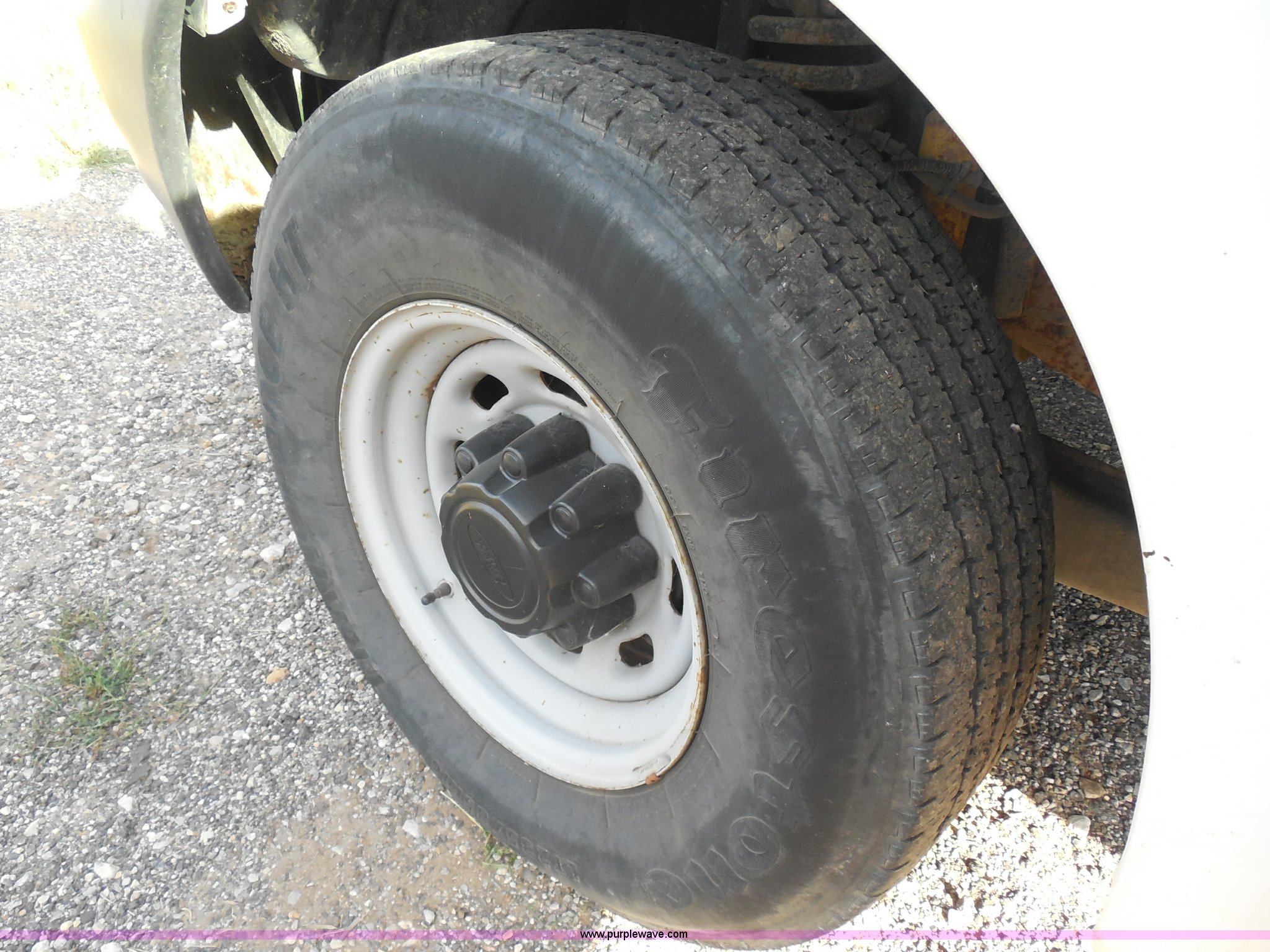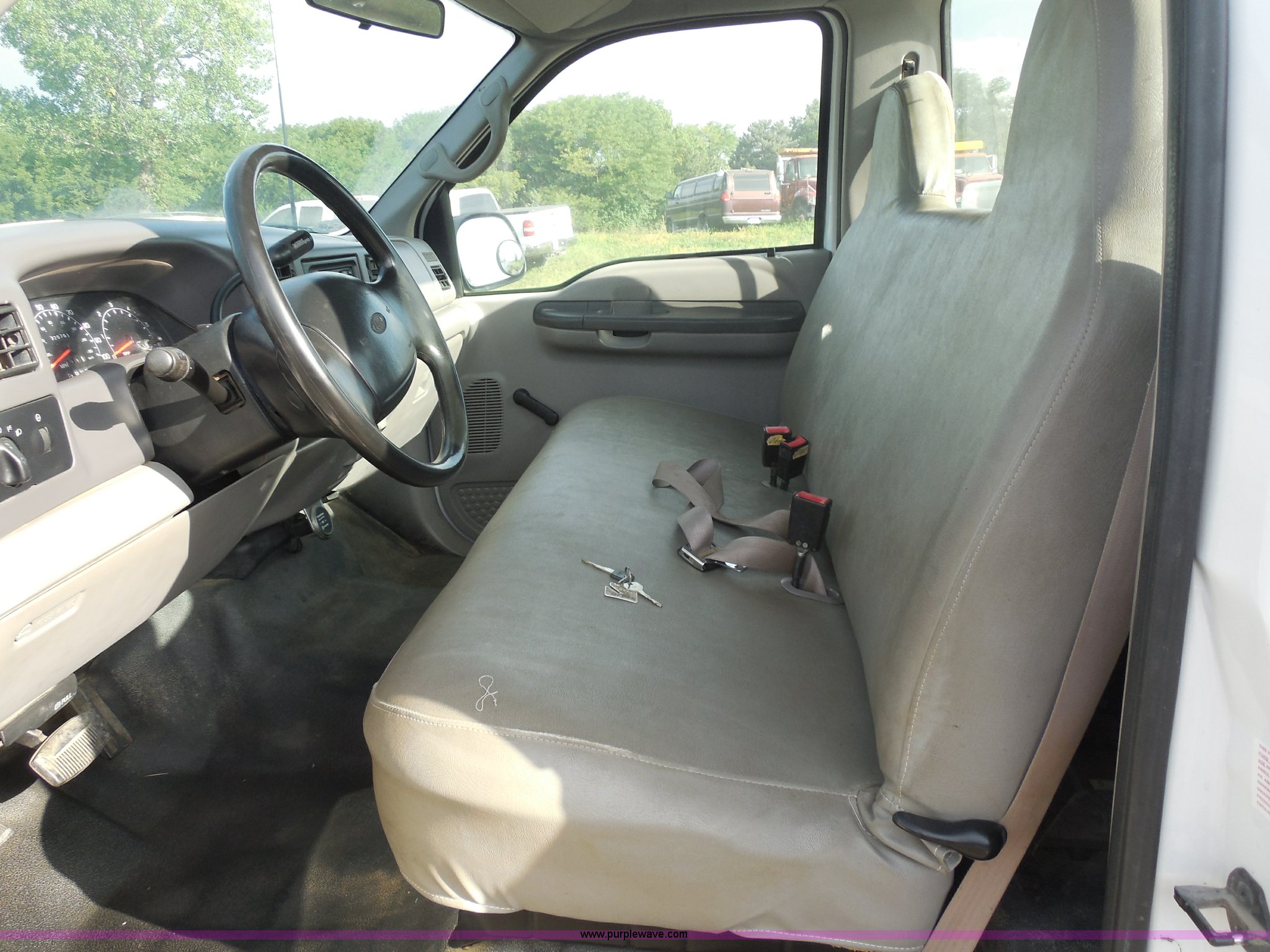 Purple Wave is selling a used Service Truck in Kansas. This item is a 2001 Ford F250 Super Duty XL utility truck with the following: 26,761 miles on odometer, 5.4L V8 SOHC 16V gas engine, Automatic transmission, AC and heat, AM/FM, Manual windows and locks, Vinyl interior, 9' utility bed, Liftmoore electric crane, Receiver hitch, Backup alarm, 235/85R16 tires, Right rear bed door is not attached, Unit# JCW9060