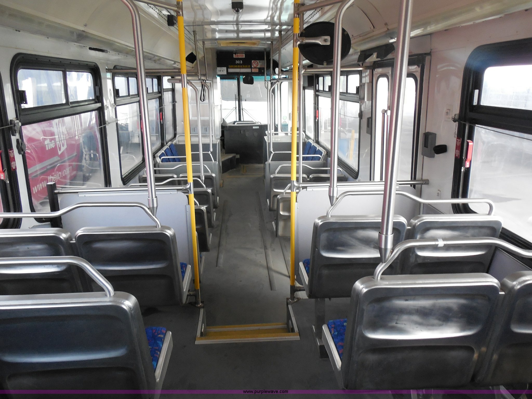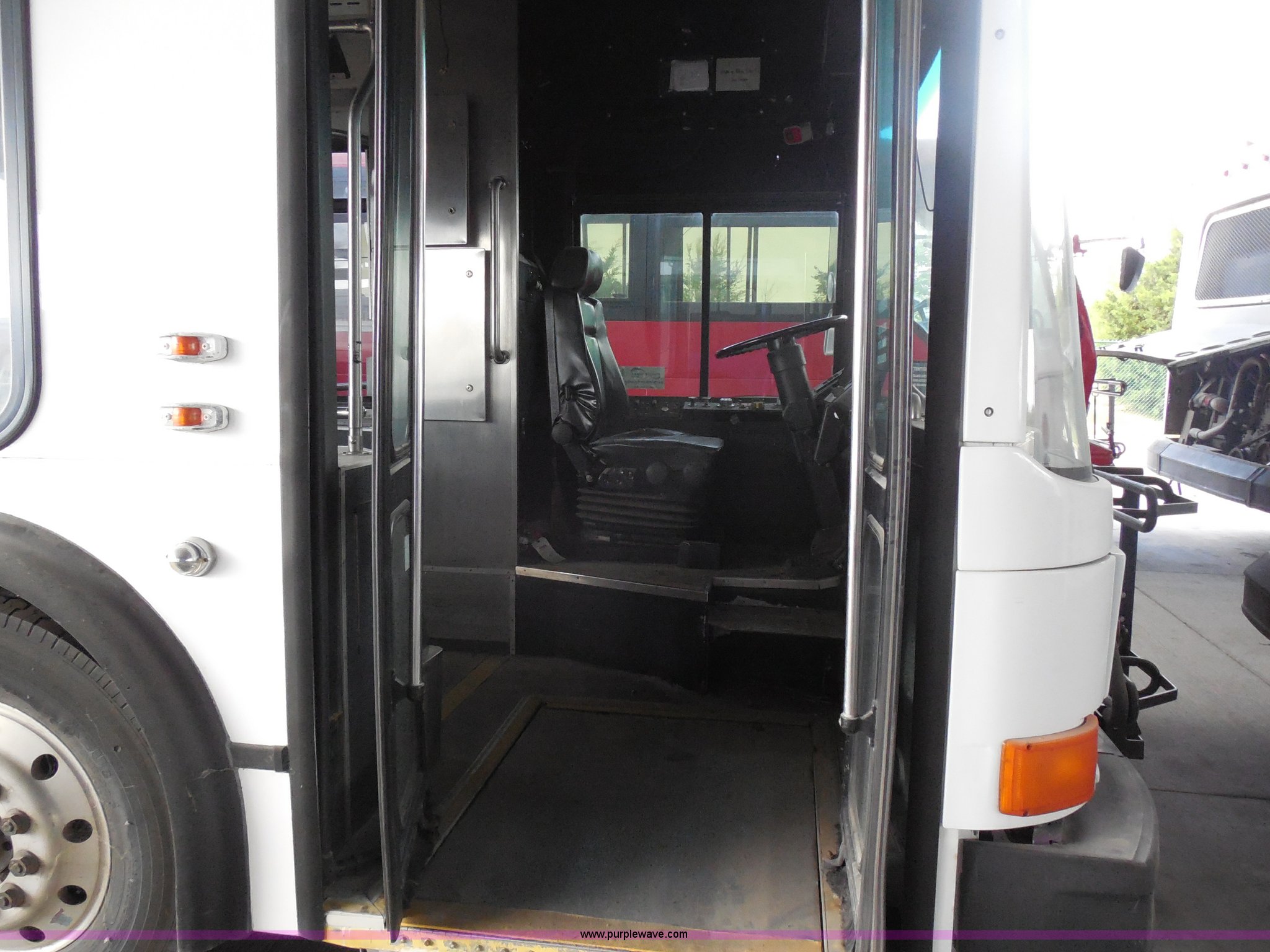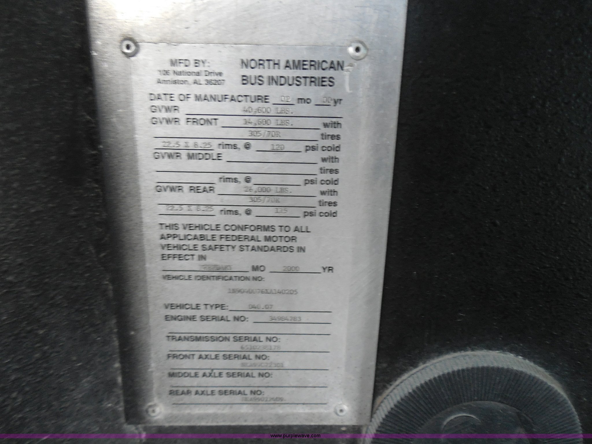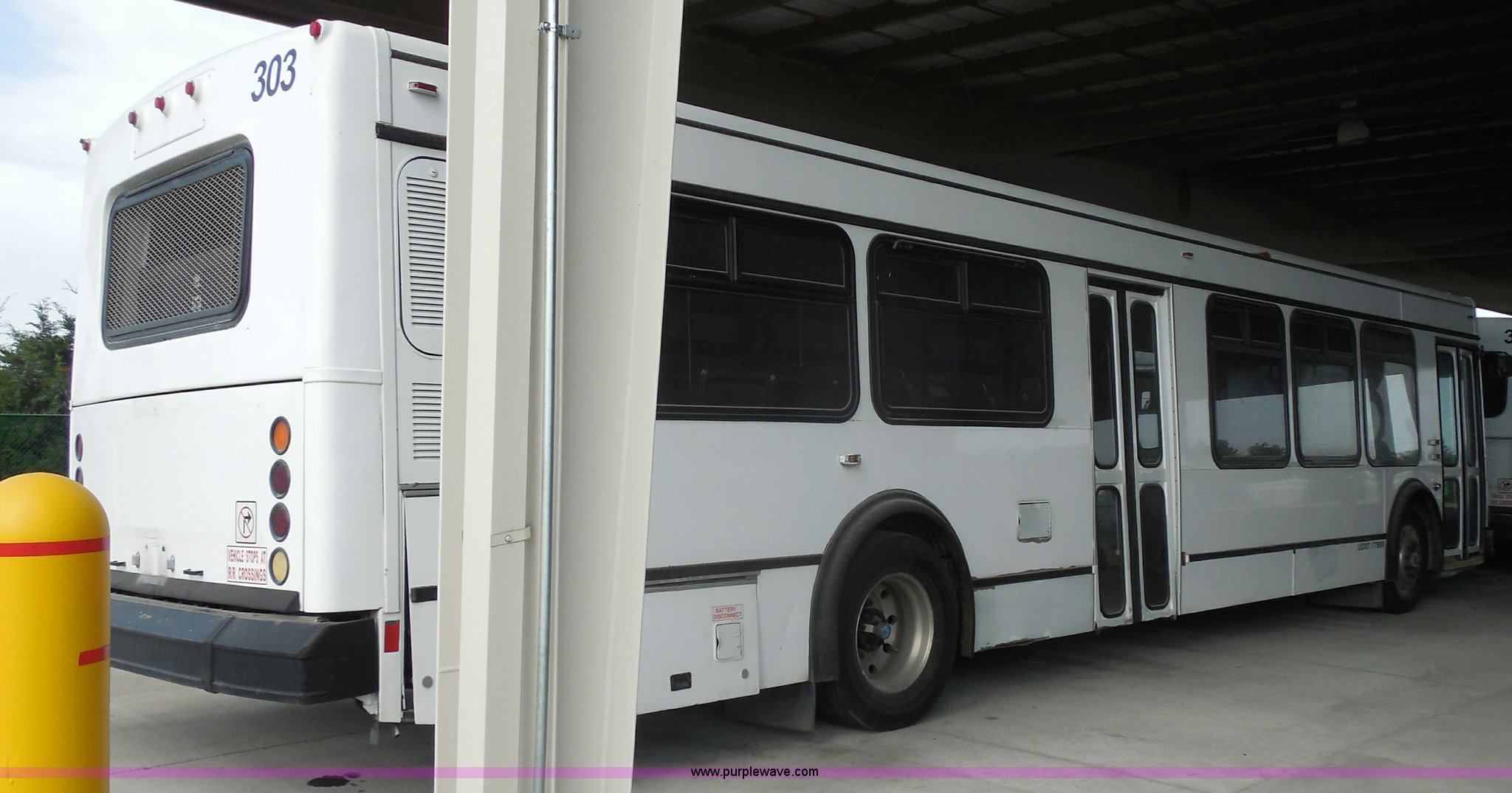 Purple Wave is selling a used Bus in Kansas. This item is a 2000 NABI 40' passenger bus with the following: 65,272 miles on odometer, Not Actual Mileage, Cummins ISM diesel engine, Allison automatic transmission, AC and heat, Cloth interior, (2) side entry doors, Aluminum wheels, 305/70R22.5 tires, GVWR 40,600 lbs, FAWR 14,600 lbs, RAWR 26,000 lbs, Dead batteries, Unit has not been used for approx. one year, Unit# TRANSIT303