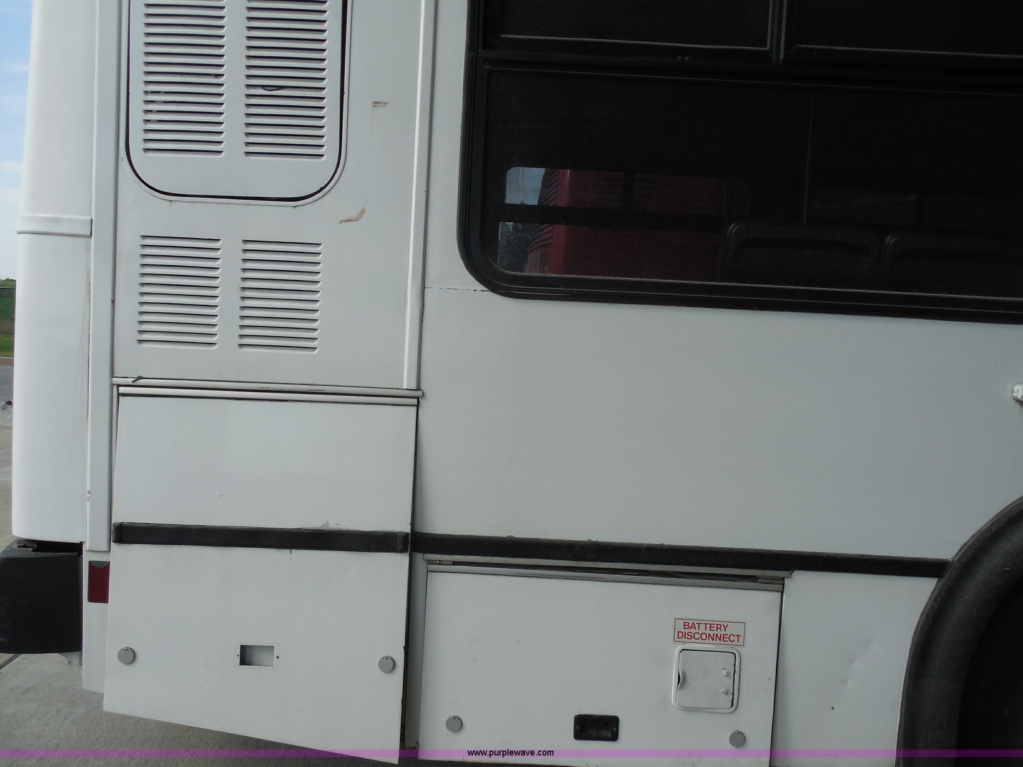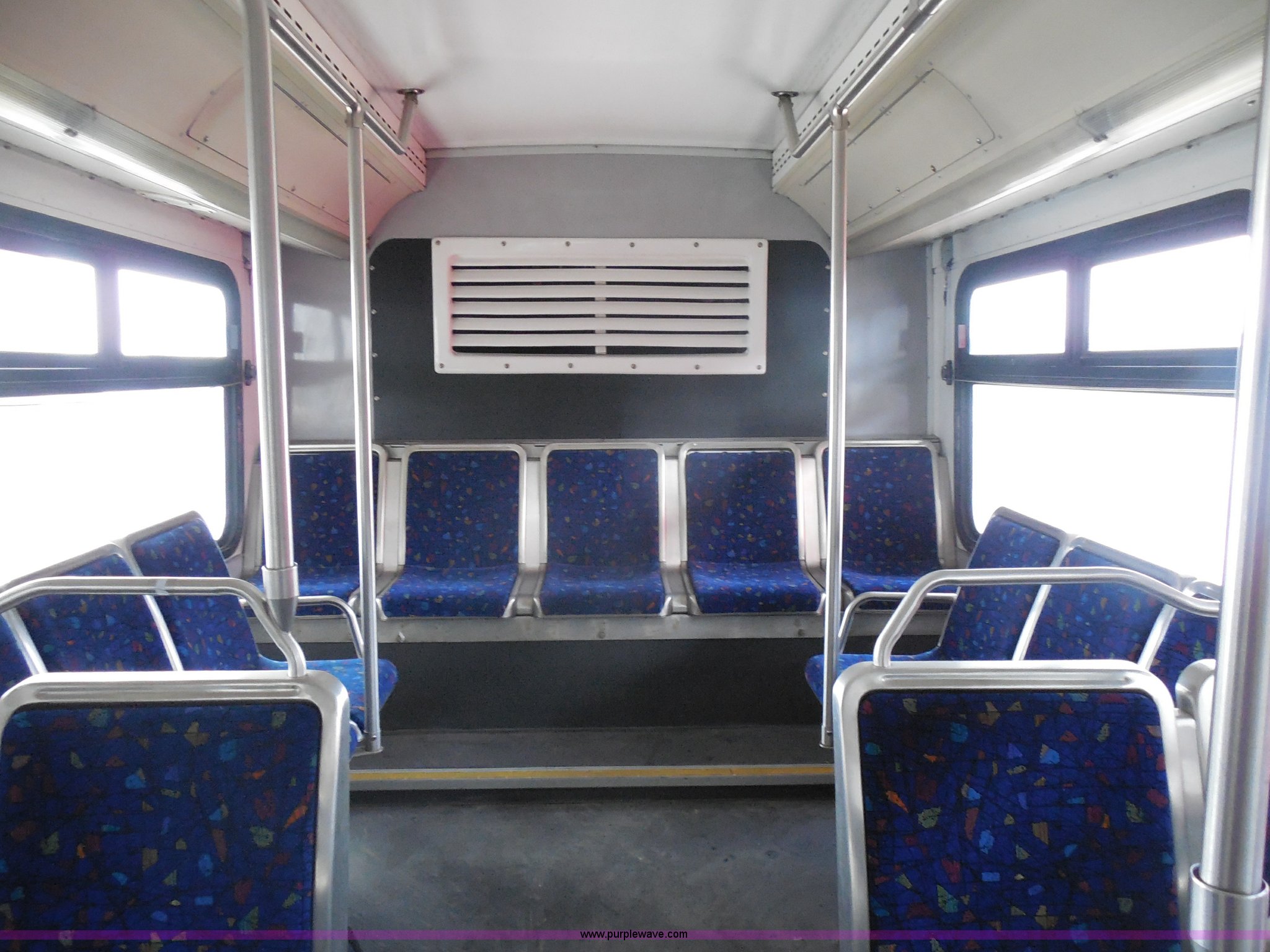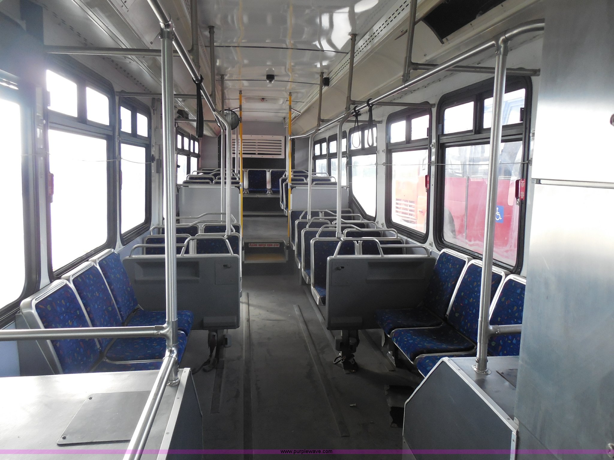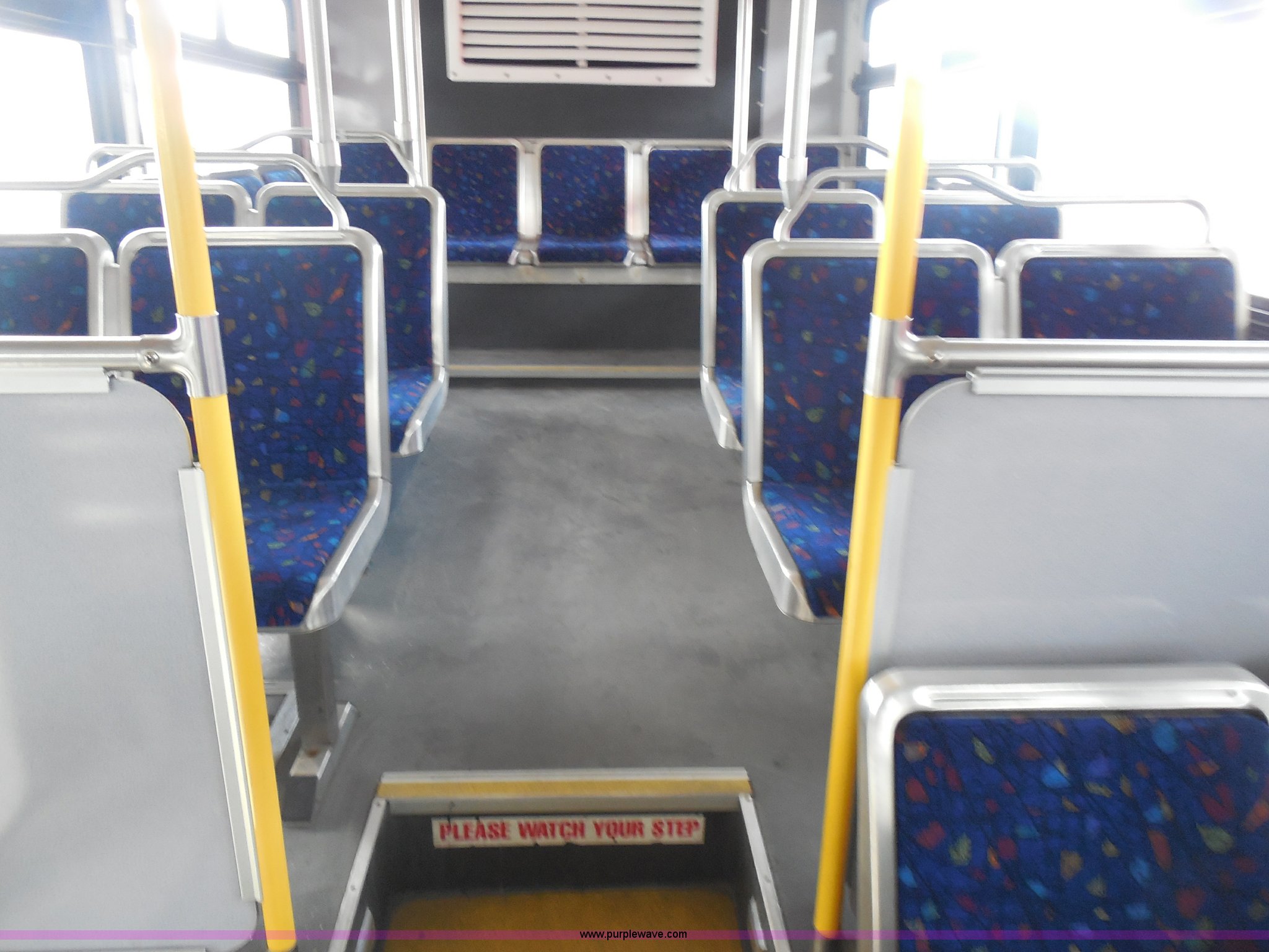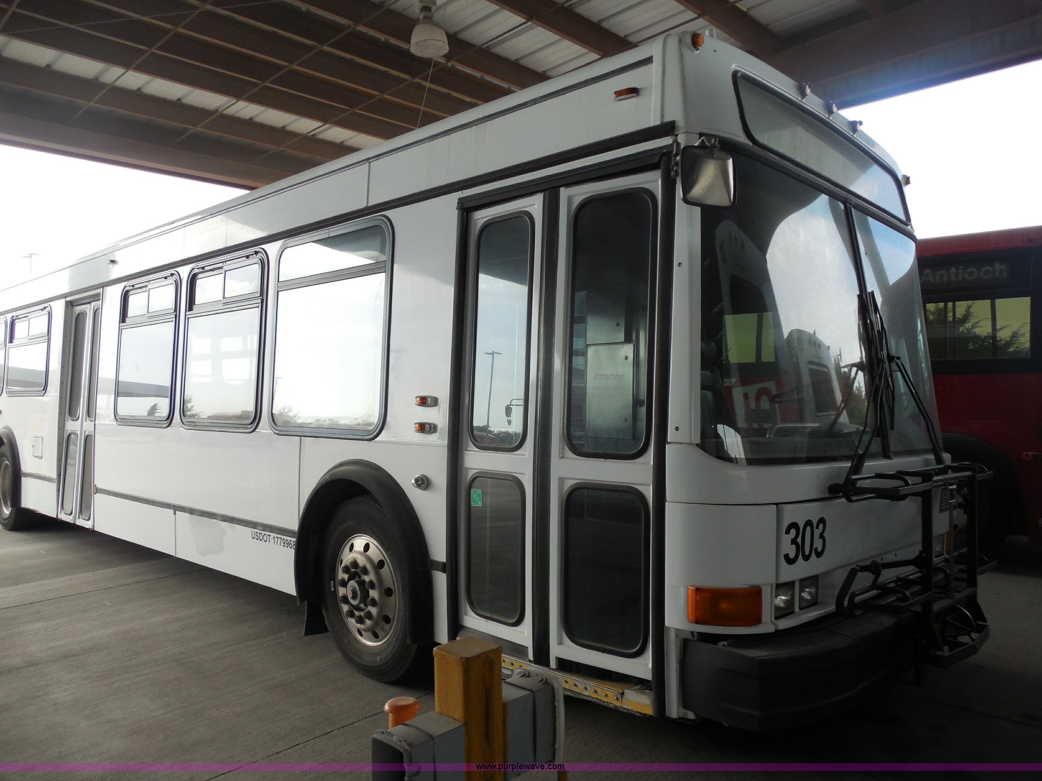 Purple Wave is selling a used Bus in Kansas. This item is a 2000 NABI 40' passenger bus with the following: 65,272 miles on odometer, Not Actual Mileage, Cummins ISM diesel engine, Allison automatic transmission, AC and heat, Cloth interior, (2) side entry doors, Aluminum wheels, 305/70R22.5 tires, GVWR 40,600 lbs, FAWR 14,600 lbs, RAWR 26,000 lbs, Dead batteries, Unit has not been used for approx. one year, Unit# TRANSIT303